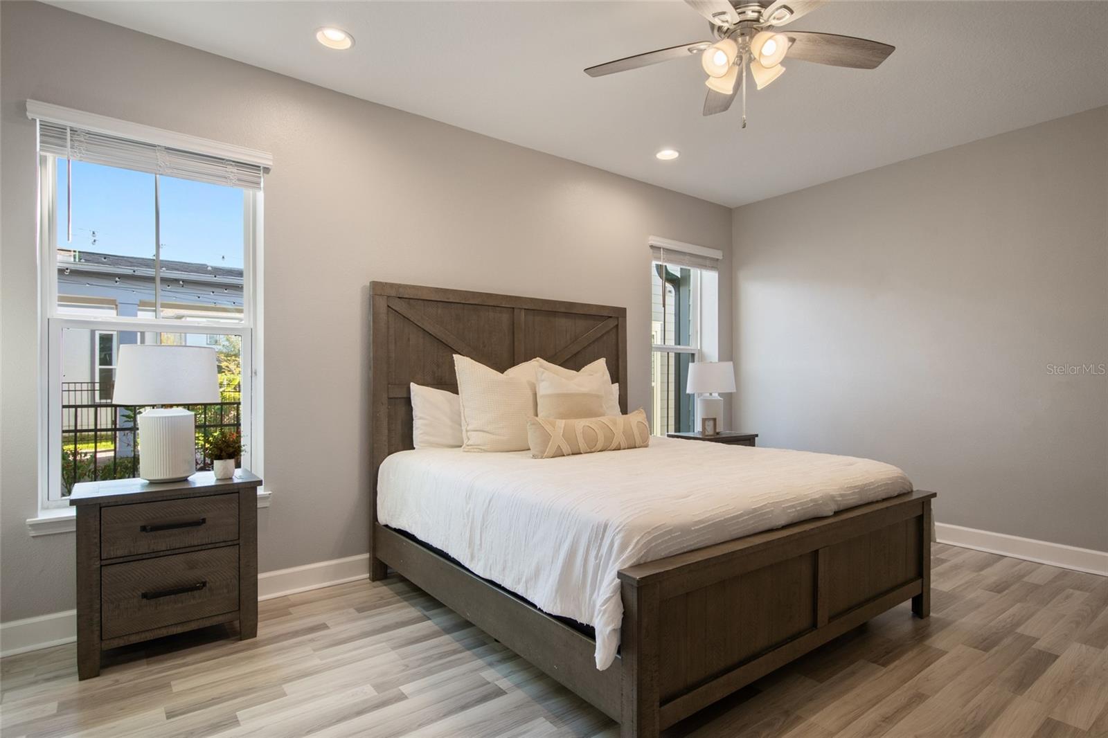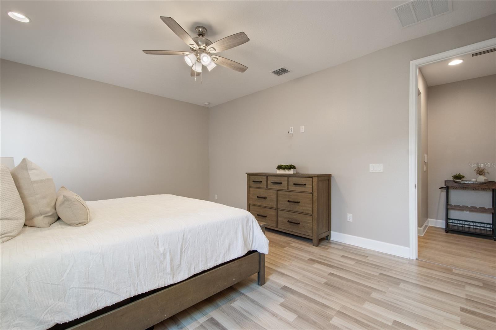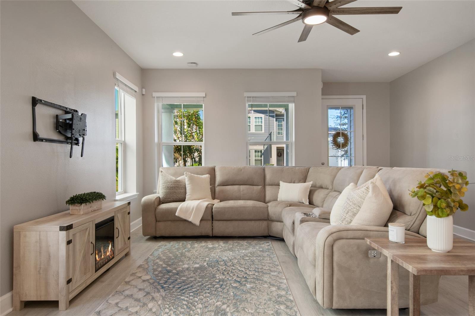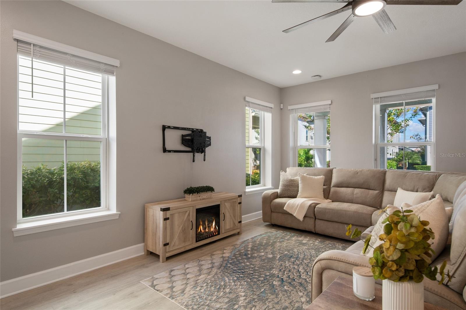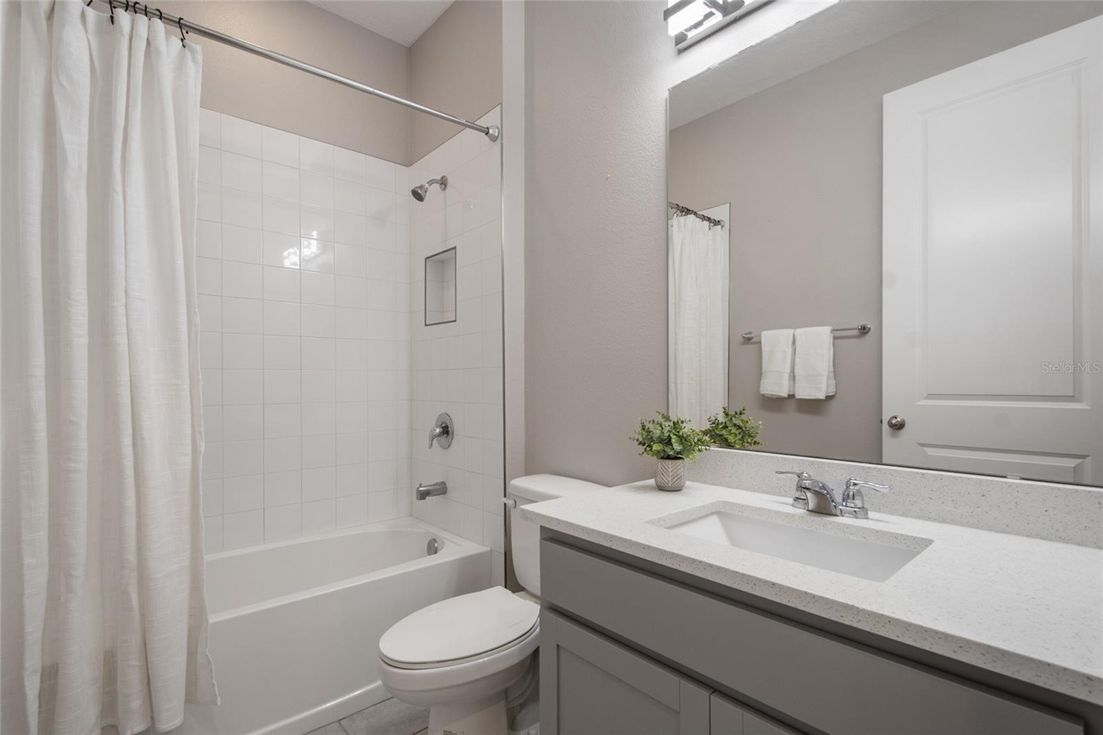 Under contract-accepting backup offers. Welcome Home! This charming, beautiful, and meticulously maintained single-story home offers amazing curb appeal and is perfectly situated on a Mews Lot in the highly desirable community of Laureate Park in Lake Nona, Orlando, FL. Enjoy quiet mornings with a cup of coffee or unwind with a good book on your quaint front porch overlooking the lush, manicured greenspace. Step inside to a welcoming foyer featuring luxury vinyl plank flooring that flows seamlessly throughout the main living areas. Experience the comfort of an open-concept floor plan that includes a family room, dining area, and kitchen combination. Your spacious family and dining rooms are bathed in natural light from surrounding windows—creating the perfect atmosphere to relax and reconnect after a long day. Adjacent to the family room, you’ll find a full bathroom and two inviting bedrooms. Down the hall lies the heart of the home—your bright, spacious, and stunning kitchen. Cook with ease in your gourmet kitchen, offering ample counter space, a single basin sink, quartz countertops, stainless steel appliances, shaker-style cabinetry, and premium upgrades such as cabinet drawer systems, pull-out trash bins, under-cabinet lighting, and a walk-in pantry. Tucked away off the kitchen is your oversized master bedroom featuring an ensuite bathroom with a large walk-in shower showcasing floor-to-ceiling tile and a rain shower head. The elegant double-sink vanity with quartz countertops provides abundant storage, and the expansive walk-in closet completes this serene retreat. Conveniently located off the kitchen, your walk-in laundry room has been upgraded with upper cabinetry for extra organization. At the back of the home, you’ll appreciate the built-in insert area—perfect for creating a custom drop zone to simplify daily comings and goings. Step outside to your rear covered and screened-in porch, ideal for enjoying Florida’s beautiful weather all year long. Additional upgrades include speaker pre-wiring in the great room and lanai, pre-plumbing for an outdoor kitchen, HVAC UV System, and a whole-home filtration and alkaline system, along with a Water Softener. The HOA includes high-speed internet (up to 1 GIG) and access to the Laureate Park Fitness Center, resort-style aquatic center, beach volleyball court, and half basketball court. Laureate Park also features community gardens, dog parks, playgrounds, and miles of scenic trails for walking, running, and biking. Enjoy a vibrant community lifestyle with events like Live & Local, Movies in the Park, Yoga, and more. Located in the heart of Lake Nona’s Medical City, with convenient access to the BEEP autonomous shuttle service, this home is near top-rated schools, Orlando International Airport, major highways, shopping, dining, the USTA National Campus, and KPMG.