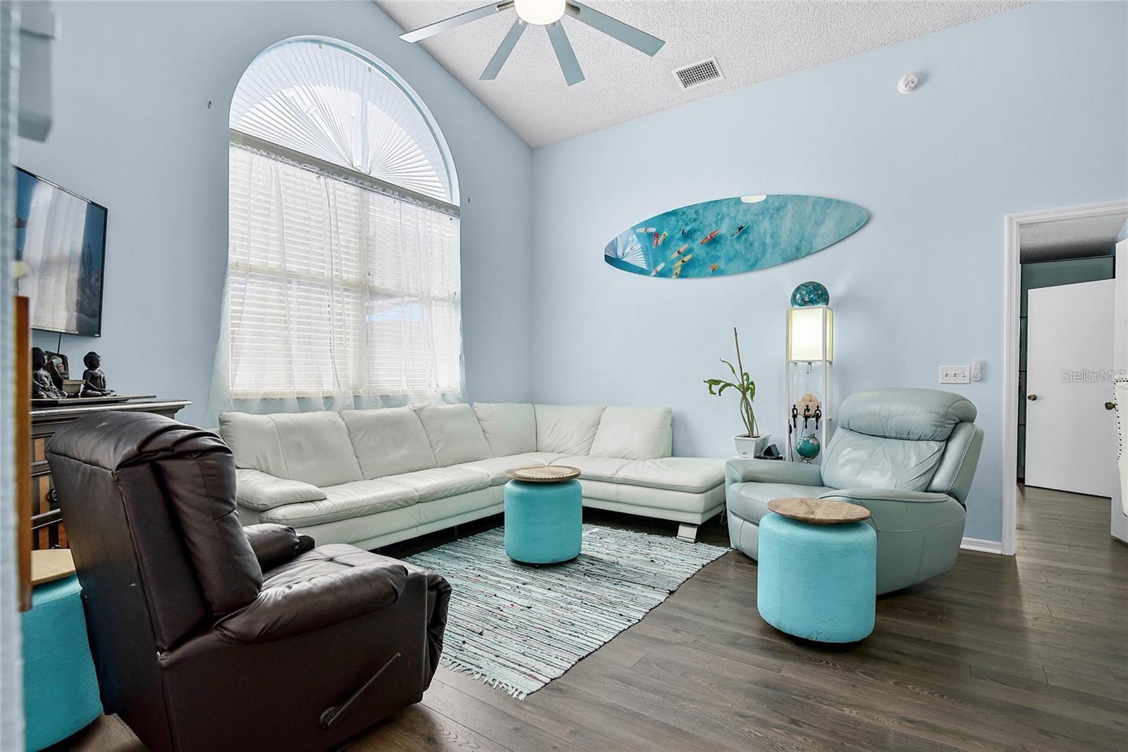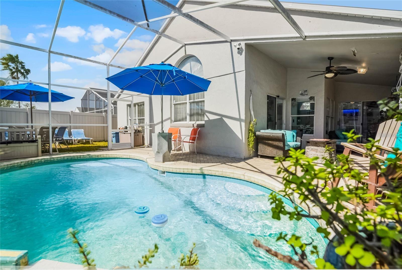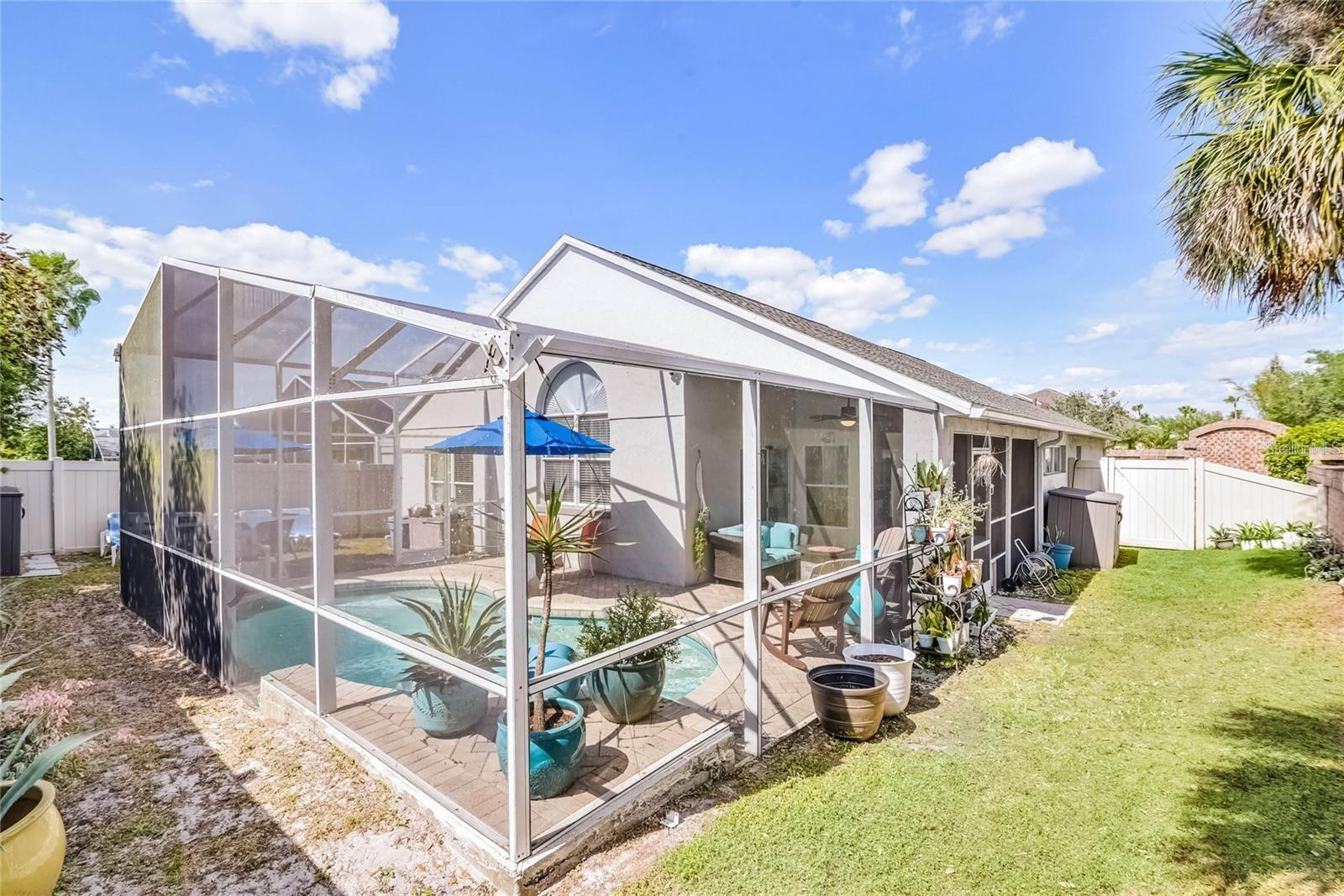 Pool Home on Prime Corner Lot in Hunters Creek! Welcome to this 3-bedroom, 2-bathroom pool home perfectly positioned on a spacious corner lot in the highly desirable Hunters Creek community. This home offers a smart split-bedroom floor plan with formal living and dining spaces that open through sliding glass doors to a screened lanai and paver patio. The open kitchen flows seamlessly into the family room, featuring vaulted ceilings, a pantry, newer appliances, and a breakfast nook overlooking the pool. The primary suite boasts vaulted ceilings, a walk-in closet, and a private en-suite bath. Two additional bedrooms share a full hall bathroom—ideal for family, guests, or a home office. Wood laminate flooring runs through the main living areas, and the roof was replaced in 2023 for peace of mind. Step outside to enjoy the screened-in pool, mature landscaping, and the extra yard space that only a corner lot provides. Additional features include an inside laundry room and a two-car garage. Living in Hunters Creek means access to neighborhood parks, playgrounds, walking and biking trails, tennis and basketball courts, a fishing pier, and regular community events. The location is unbeatable—close to The Loop for shopping and dining, major highways, excellent schools, theme parks, and Orlando International Airport.