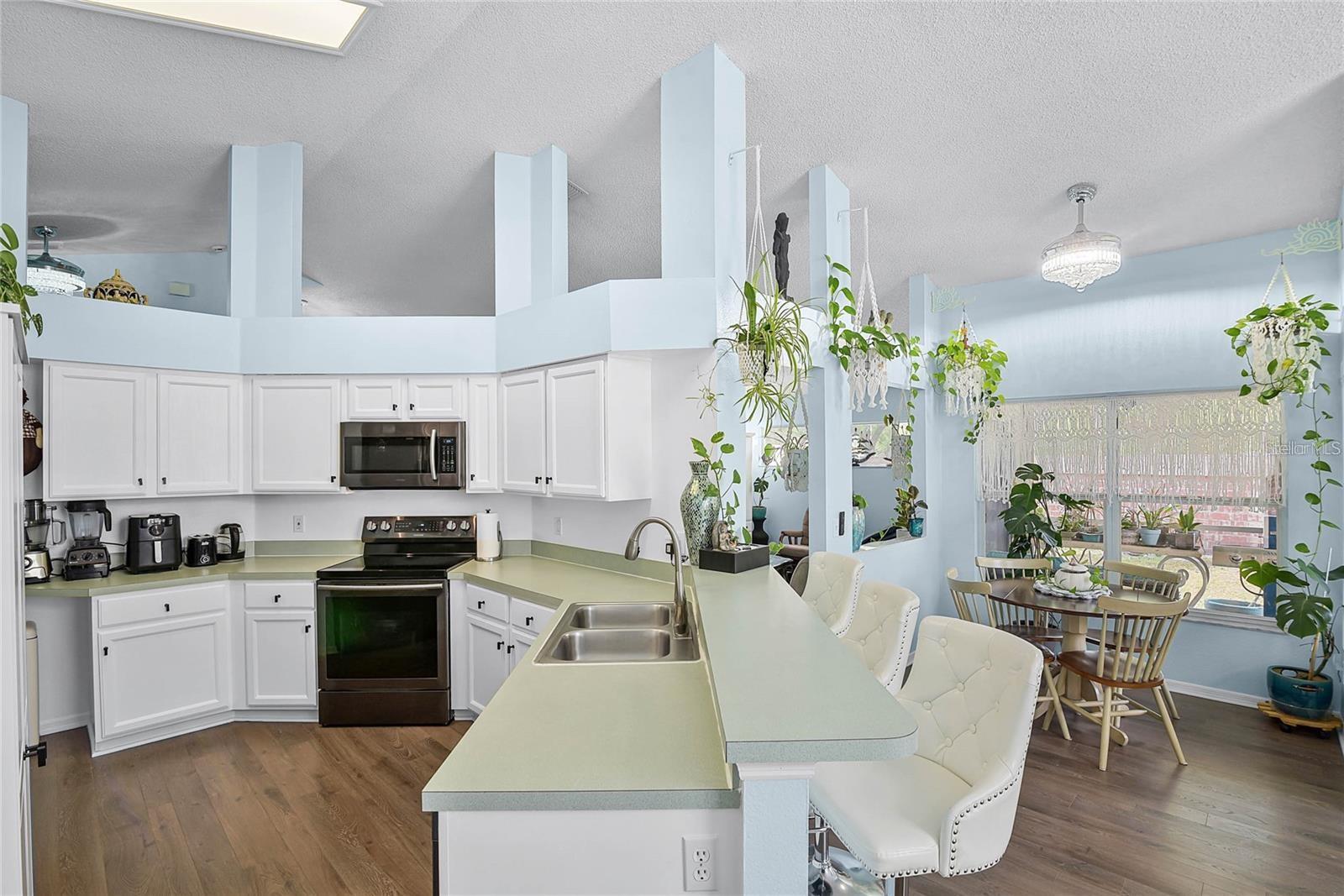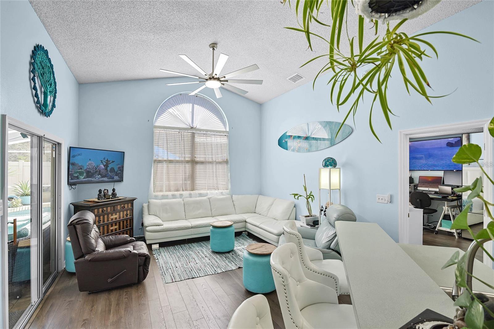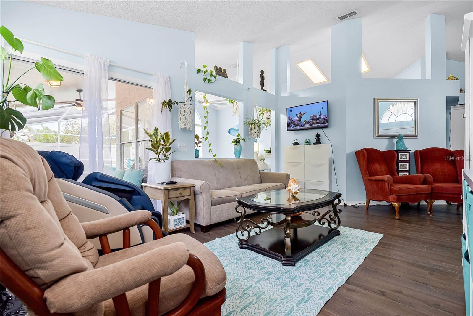 Pool Home on Prime Corner Lot in Hunters Creek! Welcome to this 3-bedroom, 2-bathroom pool home perfectly positioned on a spacious corner lot in the highly desirable Hunters Creek community. This home offers a smart split-bedroom floor plan with formal living and dining spaces that open through sliding glass doors to a screened lanai and paver patio. The open kitchen flows seamlessly into the family room, featuring vaulted ceilings, a pantry, newer appliances, and a breakfast nook overlooking the pool. The primary suite boasts vaulted ceilings, a walk-in closet, and a private en-suite bath. Two additional bedrooms share a full hall bathroom—ideal for family, guests, or a home office. Wood laminate flooring runs through the main living areas, and the roof was replaced in 2023 for peace of mind. Step outside to enjoy the screened-in pool, mature landscaping, and the extra yard space that only a corner lot provides. Additional features include an inside laundry room and a two-car garage. Living in Hunters Creek means access to neighborhood parks, playgrounds, walking and biking trails, tennis and basketball courts, a fishing pier, and regular community events. The location is unbeatable—close to The Loop for shopping and dining, major highways, excellent schools, theme parks, and Orlando International Airport.