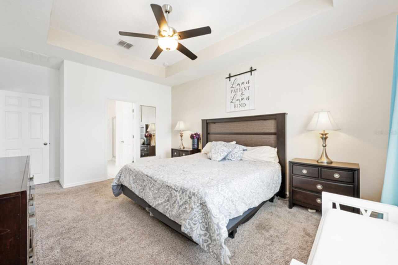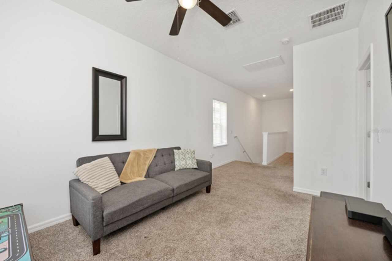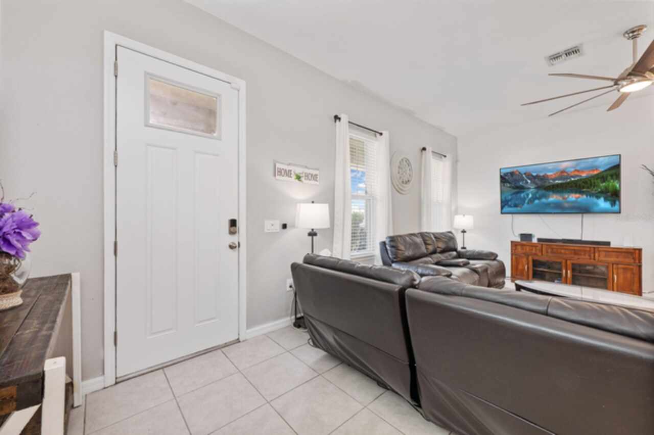 Discover your perfect retreat in the desirable Arbors at Meadow Woods community, just a short 12-minute drive to Orlando International Airport and 20 minutes to the enchantment of Disney World. Surrounded by an array of dining, shopping, and everyday conveniences, this 2018-built home seamlessly combines style and practicality. The airy, light-filled interior features an elegant kitchen with quartz countertops, ideal for culinary enthusiasts. A well-placed half bath enhances the main floor’s functionality. Upstairs, a generous loft area, dedicated laundry space, and two cozy bedrooms share a full bath, while the expansive primary suite offers a walk-in closet and a luxurious bathroom with dual sinks, a soaking tub, and a standalone shower. Outside, a spacious driveway and inviting covered porch add to the appeal. With easy access to SR-417 and the Florida Turnpike, plus proximity to premier shopping, dining, and attractions like SeaWorld, this move-in-ready home is your gateway to the Orlando lifestyle. Schedule a tour today!
