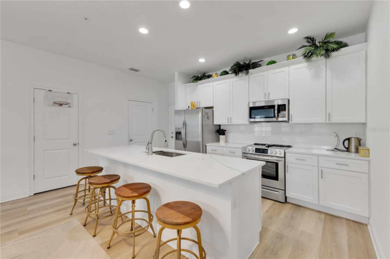 Prime location, low-maintenance, and designed for real life. Completed in 2021 and set minutes from downtown Orlando, this modern, like-new townhome keeps everything right at your fingertips — groceries, coffee spots, local dining, and major hubs like Orlando Health, Lake Davis, and the SoDo District. From weekday commutes to last-minute dinner plans at Tin & Taco or Fresh Kitchen, life here runs a little smoother — and a lot closer to everything you need. Step inside to over 1, 700 square feet of crisp, modern living. The open-concept main floor is wrapped in wide plank engineered wood flooring—durable, water- and scratch-resistant—and filled with natural light. The kitchen anchors the first floor with quartz countertops, a large island, stainless steel appliances, modern fixtures, and a walk-in pantry, all overlooking your dining and living areas. A half bath and additional storage make everyday living feel effortless. Upstairs, the oversized primary suite spans nearly 20 feet wide and features a walk-in closet and en suite bath with a dual sink vanity and a custom glass shower. Two additional bedrooms, a second full bathroom, and a dedicated laundry room round out the second floor. Out back, a paver driveway leads to the private two-car garage, upgraded with granite flooring and wall-mounted storage systems. The HOA takes care of lawn maintenance and the roof, so you can worry less and spend more time enjoying the unbeatable location. Zoned for highly sought-after Blankner K-8 and Boone High School (Go Braves!), this townhome delivers access to top-tier public schools in one of Orlando’s most connected locations. With walkability, workability, and weekend fun all at your doorstep—this is the kind of city living that’s hard to find and makes everyday living feel like a win.