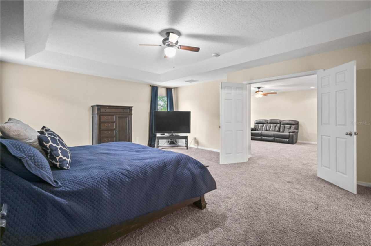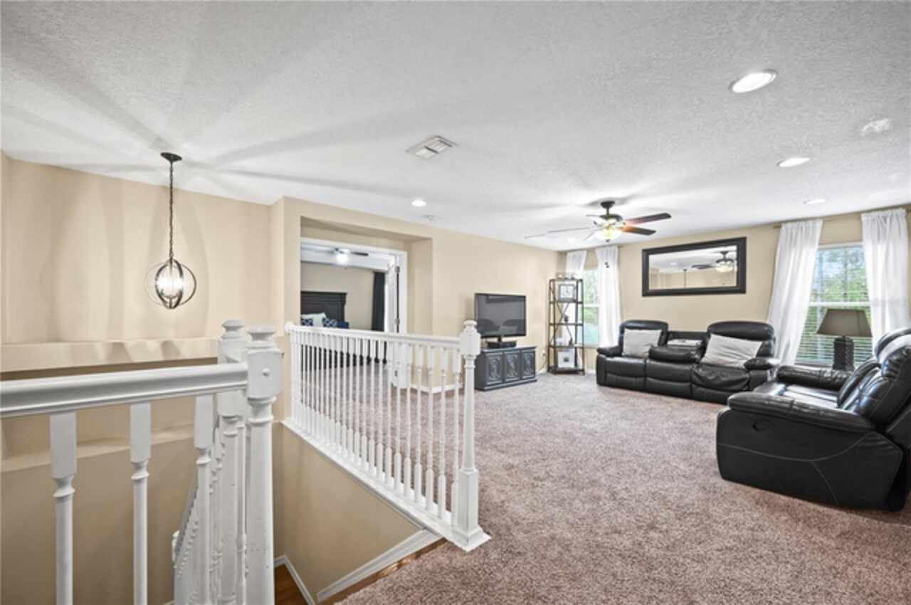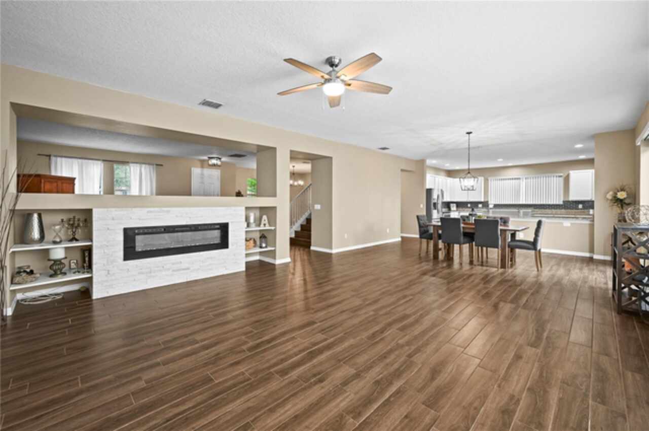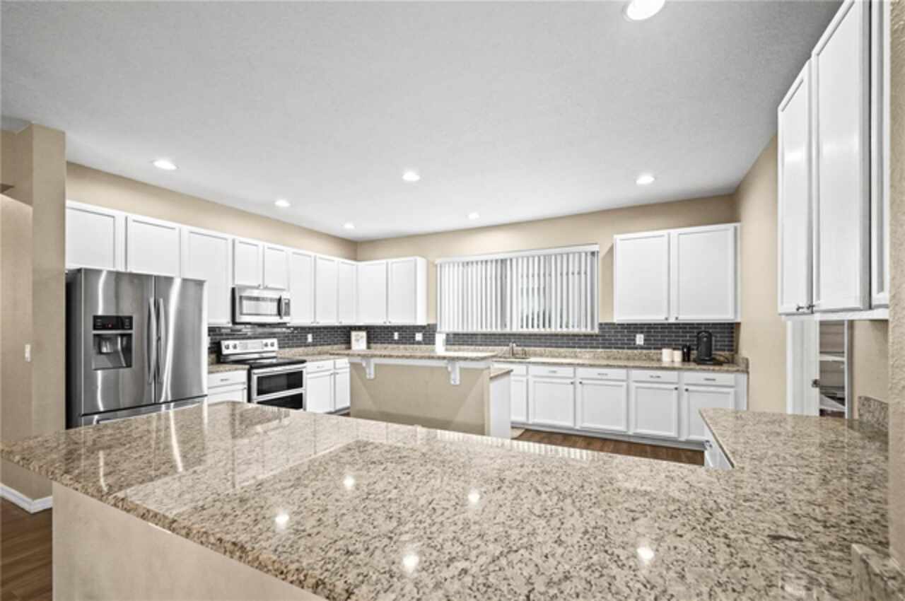 This stunning home is nestled in the highly sought-after Avalon Park community. Offering convenient access to a variety of amenities such as multiple swimming pools, playgrounds, scenic trails, and a dog park. As you step inside the spacious five-bedroom two-and-a-half-bathroom home, you are greeted with high ceilings and an open floor plan that seamlessly connects the living, dining, and kitchen areas, creating a perfect flow for everyday living. The heart of the home is the oversized kitchen, complete with a large island overlooking the living room. With abundant cabinetry and natural light, this kitchen is both functional and inviting. The spacious laundry room, conveniently located just off the kitchen, offers plenty of storage and convenient access to the two-car garage. Additionally, the first floor includes a well-placed half bathroom and a guest bedroom, perfect for visitors or flexible use. Upstairs, you'll find an additional large family room, the primary bedroom and three generously sized bedrooms. The large primary bedroom includes French doors, a tray ceiling, and a large master suite with an en-suite bath and walk in closet, offering a private retreat to relax and unwind. Don't miss the opportunity to make this beauty your own!