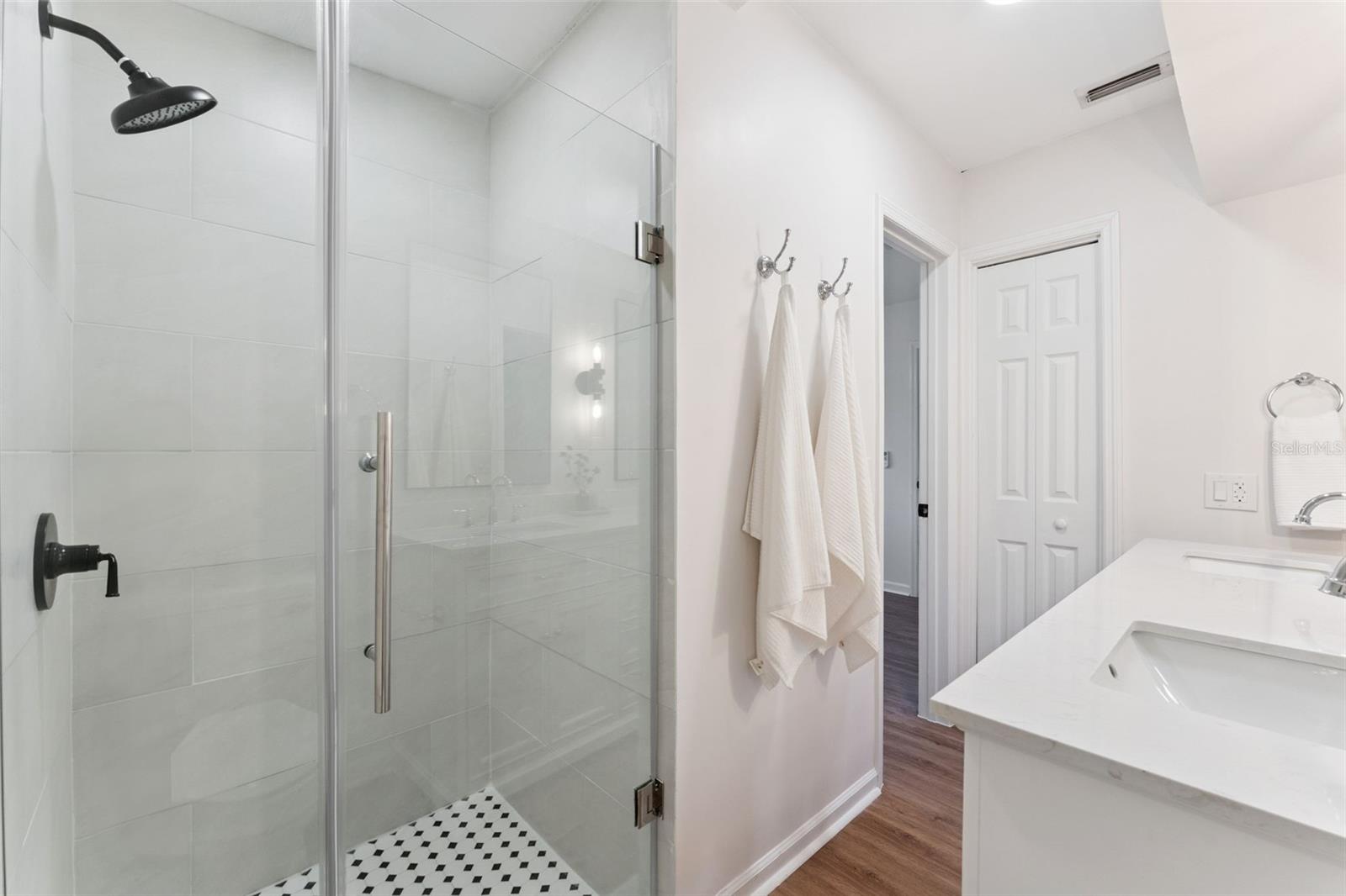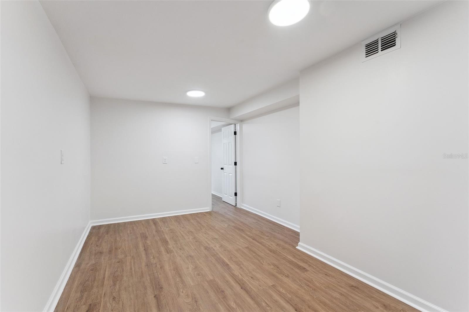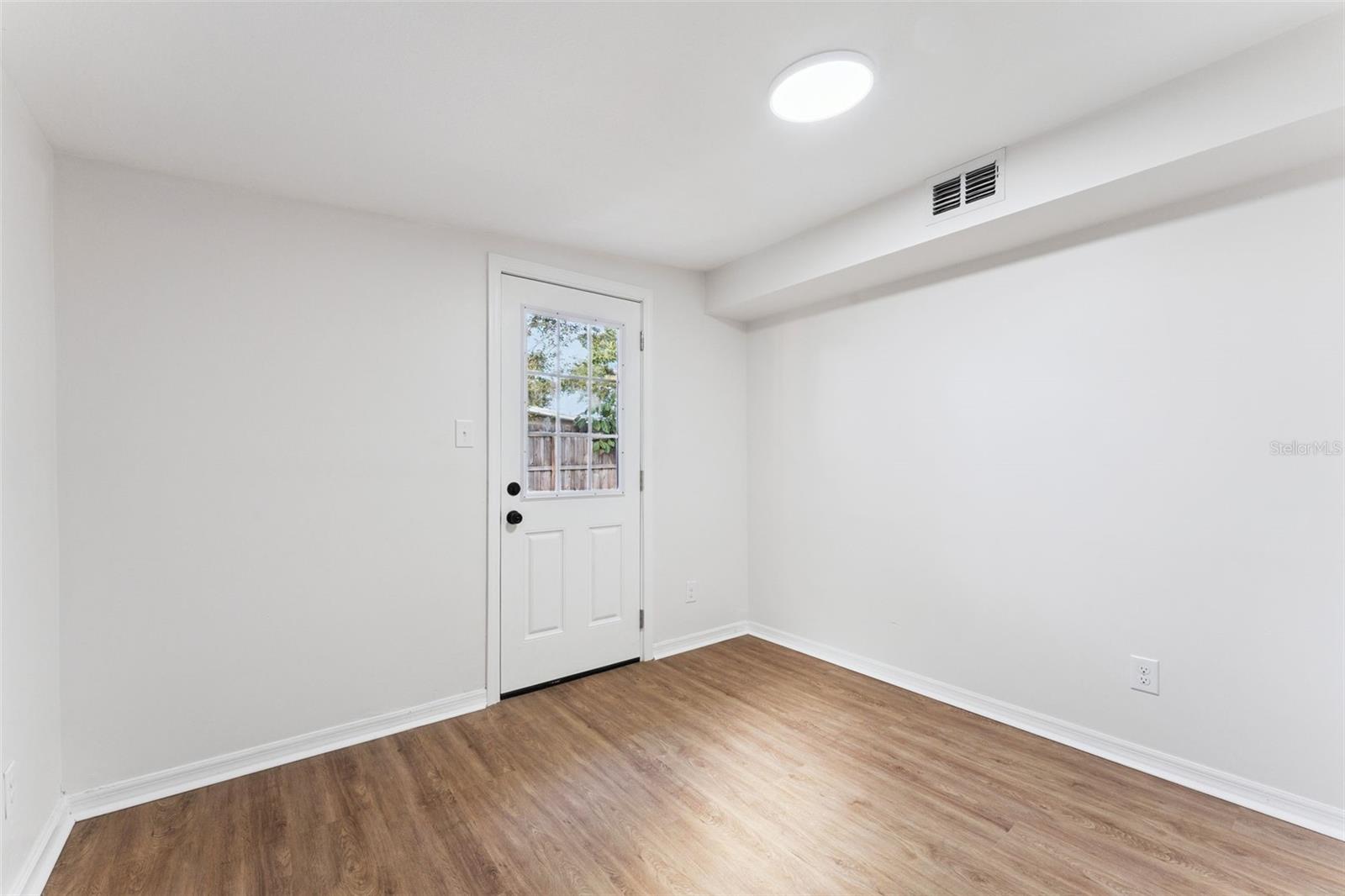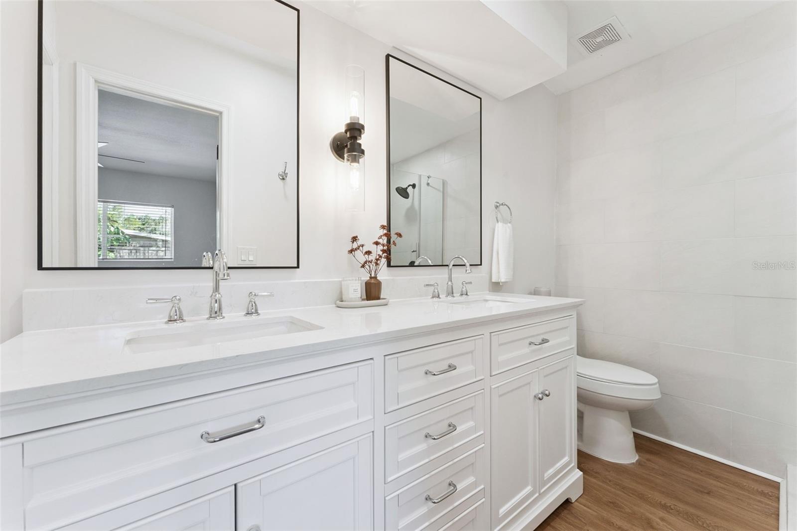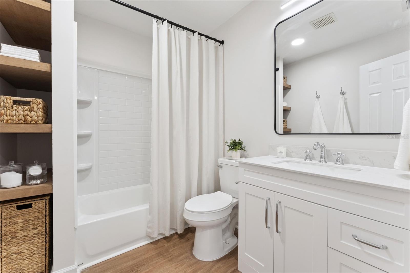One or more photo(s) has been virtually staged. Completely remodeled 4-bedroom home in the heart of College Park! This Mid-Century Modern gem has been fully updated from top to bottom, featuring a new permitted roof, new HVAC, updated plumbing and electrical, new energy-efficient water heater, stainless steel appliances, soft-close cabinets, a large kitchen island, fresh landscaping, and more. Every detail has been thoughtfully designed for comfort, efficiency, and style. Step inside to discover a Modern Contemporary interior with an open-concept layout, luxury vinyl plank flooring, fresh interior and exterior paint, and designer lighting throughout. The chef’s kitchen boasts quartz countertops, custom soft-close cabinetry, floating wood shelves, stainless steel appliances, and a large island perfect for entertaining. The private owner’s suite offers a spa-inspired bathroom with an extended tiled frameless glass shower and walk-in closet. Two additional bedrooms share a beautifully updated full bath featuring custom built-in wood shelves, while the fourth room serves perfectly as an office, studio, playroom, or guest suite. Enjoy outdoor living on the rear patio, complete with a cozy firepit and a fully fenced backyard ideal for relaxing or hosting gatherings. Situated just minutes from Edgewater Drive’s shops and dining, Dubsdread Golf Course, Lake Ivanhoe, and Downtown Orlando, this home perfectly blends modern luxury with classic College Park charm. Located only a few houses down from the light-use rail corridor along N Orange Blossom Trail, the nearby transfer station experiences minimal activity, maintaining the peaceful neighborhood atmosphere that makes College Park so desirable.