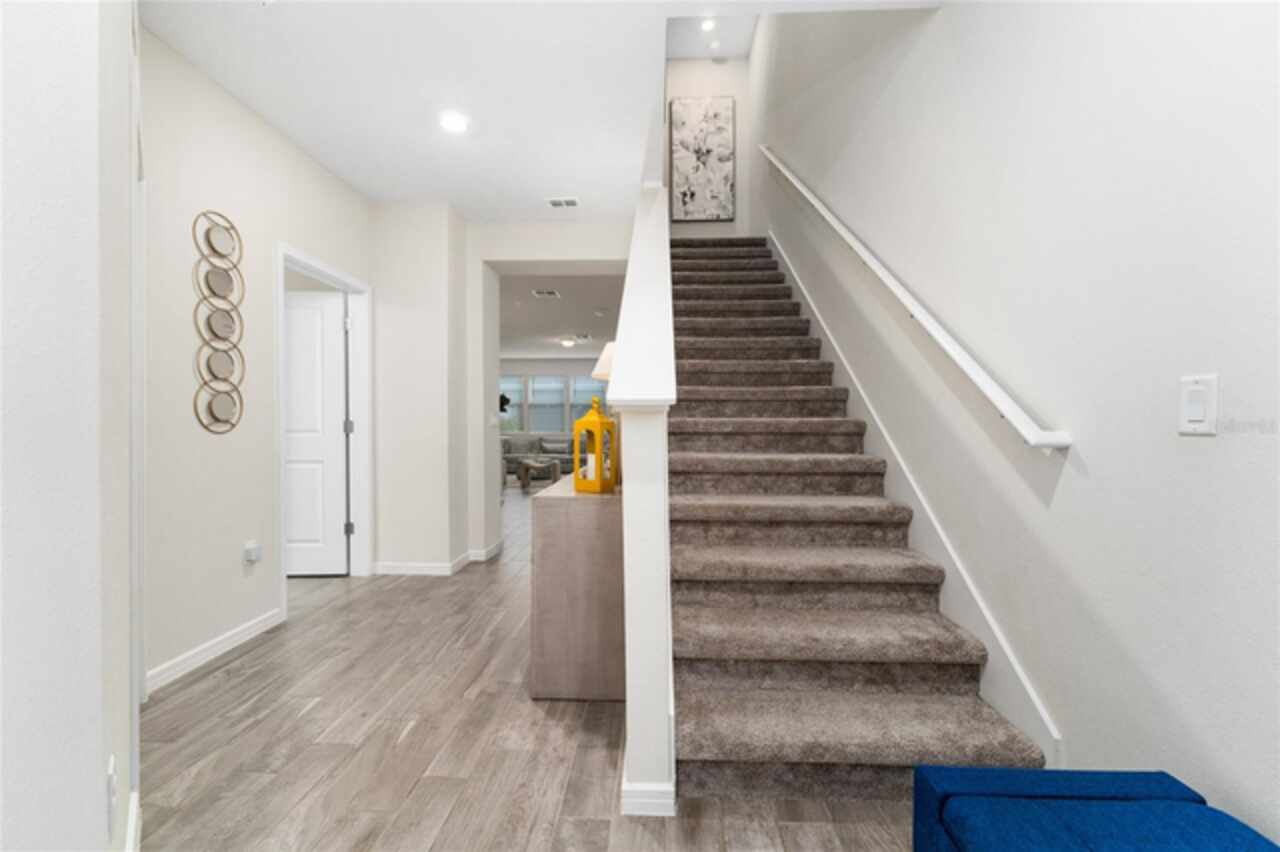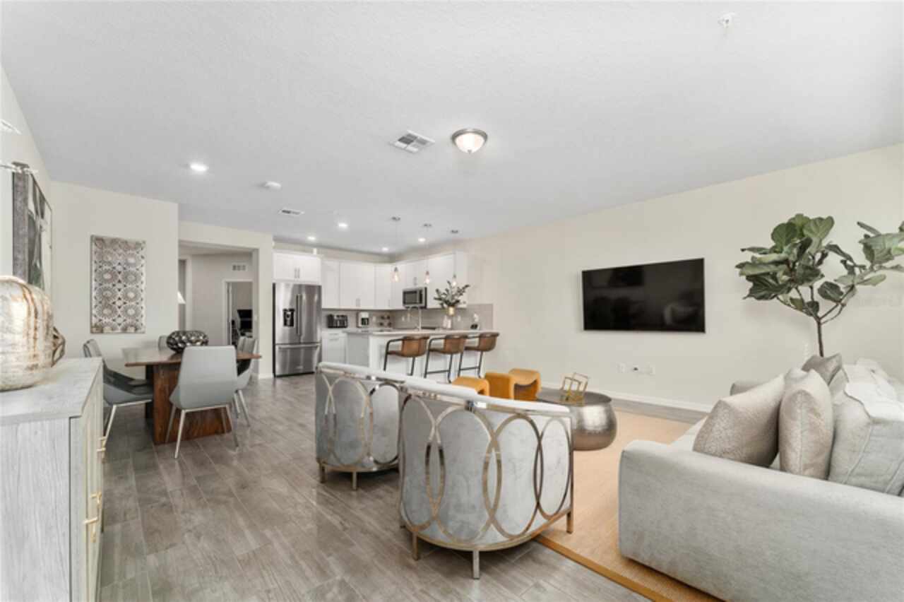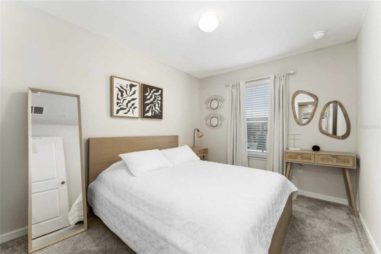 Under contract-accepting backup offers. Welcome to this beautifully maintained townhome that feels like new, offering modern finishes and thoughtful upgrades throughout. Featuring 4 bedrooms and 3 bathrooms, this spacious residence boasts an open floor plan with soaring ceilings and abundant natural light. The gourmet kitchen is a true highlight, complete with quartz countertops, stainless steel appliances, upgraded 42” soft-close cabinetry, and a large island perfect for entertaining. The first floor includes a versatile bedroom with a full bath—ideal for guests, in-laws, or a private home office. Upstairs, the primary suite is a retreat of its own, featuring a frameless glass shower, dual vanities, and a generous walk-in closet. Two additional bedrooms, a full bathroom, and a convenient laundry room complete the second level. With over $45, 000 in upgrades, this home showcases premium details such as porcelain tile flooring, a purified water system, and a private patio. A spacious 2-car garage adds extra convenience. Located in the gated Isles of Lake Nona, residents enjoy resort-style amenities including a sparkling pool, splash pad, tennis and pickleball courts, basketball, scenic walking trails, playgrounds, and a clubhouse. HOA fees also include high-speed internet and private security. Perfectly situated just minutes from top-rated schools, Medical City, shopping, dining, and major highways—this home offers both luxury and convenience. If the buyer elects to use our preferred lender, they will receive a credit up to $4, 500 to be applied toward allowable closing costs or prepaid, subject to lender approval.