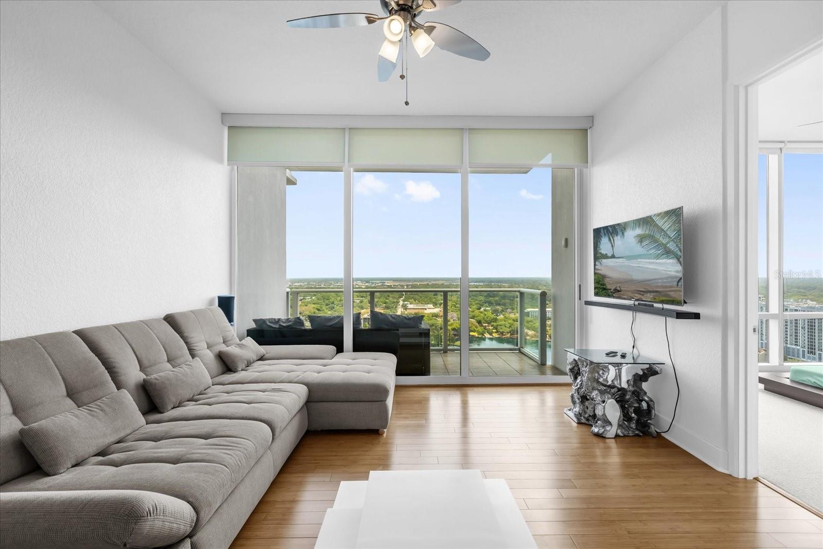 Stunning LAKE EOLA VIEWS from a stylish and modern updated 2 bedroom, 2 bathroom luxury condo at The VUE. Experience the best of downtown Orlando from the 26th floor, where breathtaking views of Lake Eola provide a magical backdrop to your everyday life. Enjoy front-row seats to dazzling fireworks displays on the Fourth of July and New Year's Eve, and immerse yourself in the vibrant energy of downtown festivals right outside your front door. The gorgeous kitchen has European style cabinets, a gas stove, and a spacious kitchen island which comfortably seats four is perfect for casual meals or entertaining guests. The living room and primary bedroom have floor-to-ceiling windows to capitalize on the lake views. The oversized primary en suite bathroom offers dual sinks, a large bathtub, and walk-in shower. Convenience is key with one dedicated parking spot, while your visitors can enjoy hassle-free valet parking. Go for a lovely stroll around the lake and dine in Thornton Park, experience the Farmer’s Market on Sundays, watch a performance at the Dr. Phillips Center for the Performing Arts, or attend a concert or sporting event at the Kia Center. If walking is not for you, a quick ride on the complimentary Lymmo shuttle that operates daily provides you convenient access throughout downtown. This exceptional residence with 24-hour concierge also offers an array of amenities designed for relaxation and recreation, including a sparkling pool, basketball and tennis courts, a fully equipped gym, a yoga room, a media center, wine cellar, conference room, and a panoramic rooftop lounge and patio. Elevate your lifestyle in the heart of Orlando, where convenience, luxury, and excitement converge!