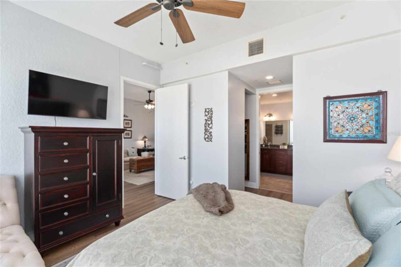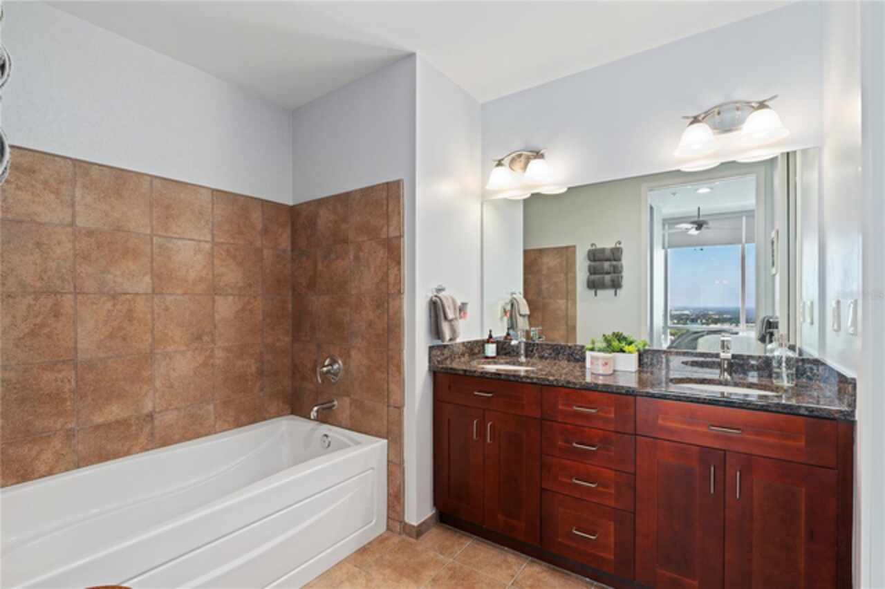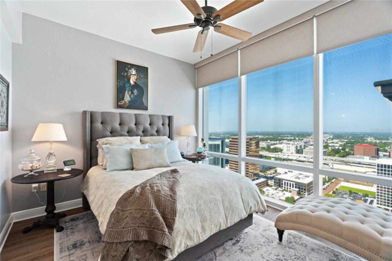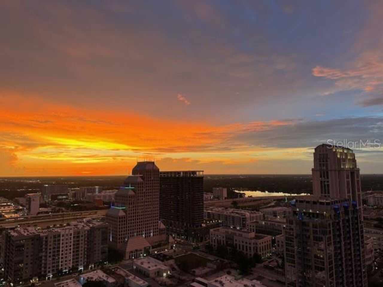 Elevate your lifestyle in this stunning 2-bedroom, 2-bath residence perched on the 30th floor of The Vue, one of Downtown Orlando’s premier high-rise communities. Enjoy breathtaking west-facing views of spectacular sunsets, the city skyline, and nightly theme park fireworks from your private balcony. The floor-to-ceiling windows, now enhanced with motorized blackout shades in both the primary suite and main living area offer effortless comfort and privacy at your convenience. This sleek, modern condo features an open-concept layout, high ceilings, engineered flooring, a modern kitchen with granite countertops outfitted with new GE stainless steel appliances including a double door refrigerator, dishwasher, and microwave. The space flows seamlessly into the open living and dining area—perfect for entertaining. The freshly updated guest bathroom features a 5 drawer; double door vanity topped with elegant Carrara marble. The primary suite offers a spacious bathroom with separate tub and shower, with two custom designed closets, one closet is set up as a home office nook. Located just off the foyer, find a utility closet with a LG Wi-Fi enabled washer/dryer combo. The Vue offers unmatched amenities including 24-hour concierge, valet, 2 conference rooms, cyber café, media room/theatre, an Olympic-size heated pool, tennis courts, a state-of-the-art fitness center, yoga studio, and a dog park. The on-site parking garage features 3 electric charging stations and a car wash area. Located steps from Lake Eola, dining, shopping, and entertainment, this is urban living at its finest. Whether you’re looking for a vibrant city lifestyle or a luxurious retreat in the sky, you’ll find it here. Smart home upgrades include Wi-Fi-enabled New Water Heater, Washer/Dryer, and Motorized blackout shades. The Whole unit water pressure valve has been replaced recently as well. See attachments for a list of amenities and upgrades