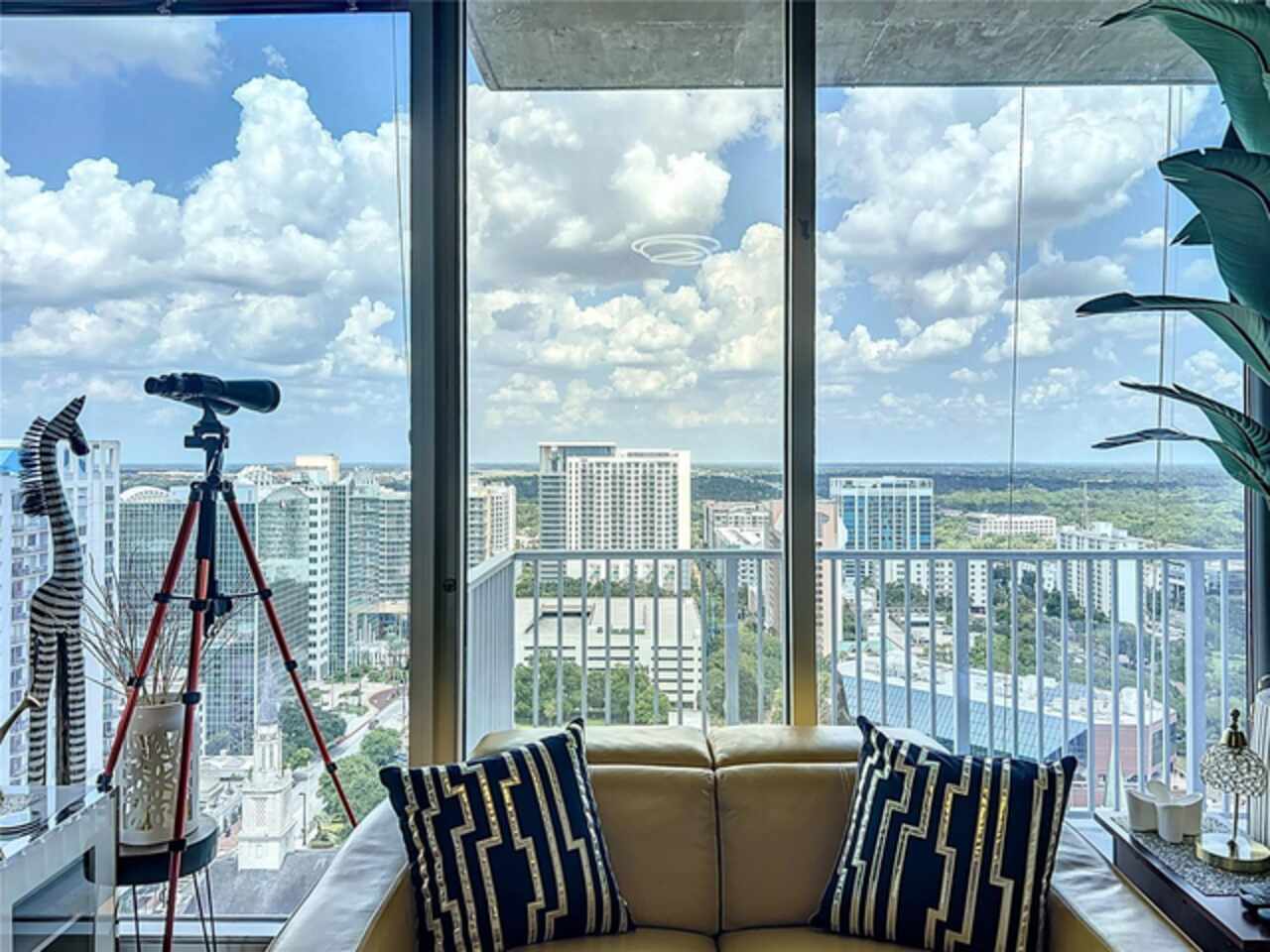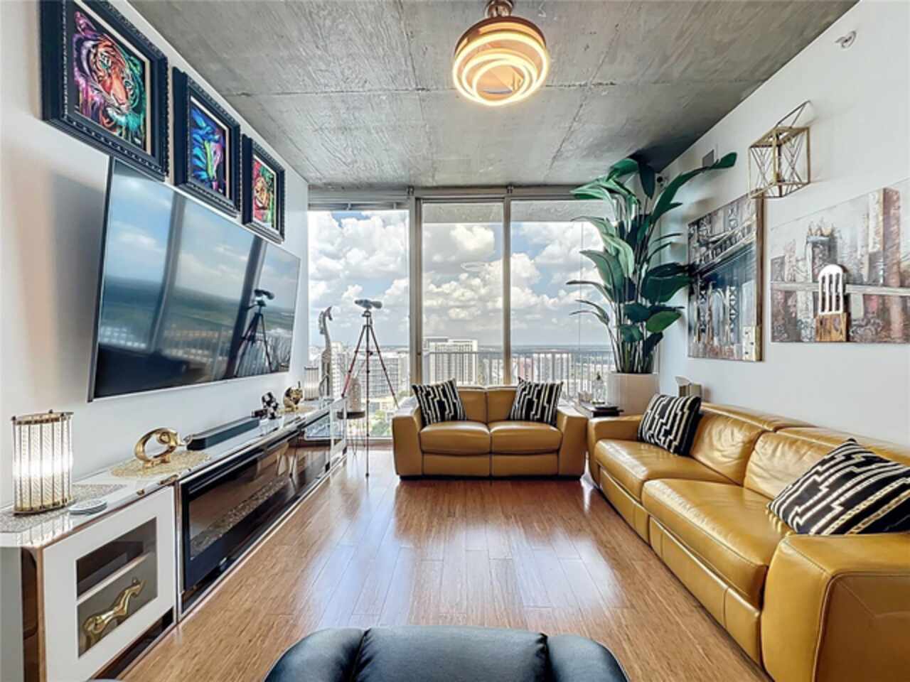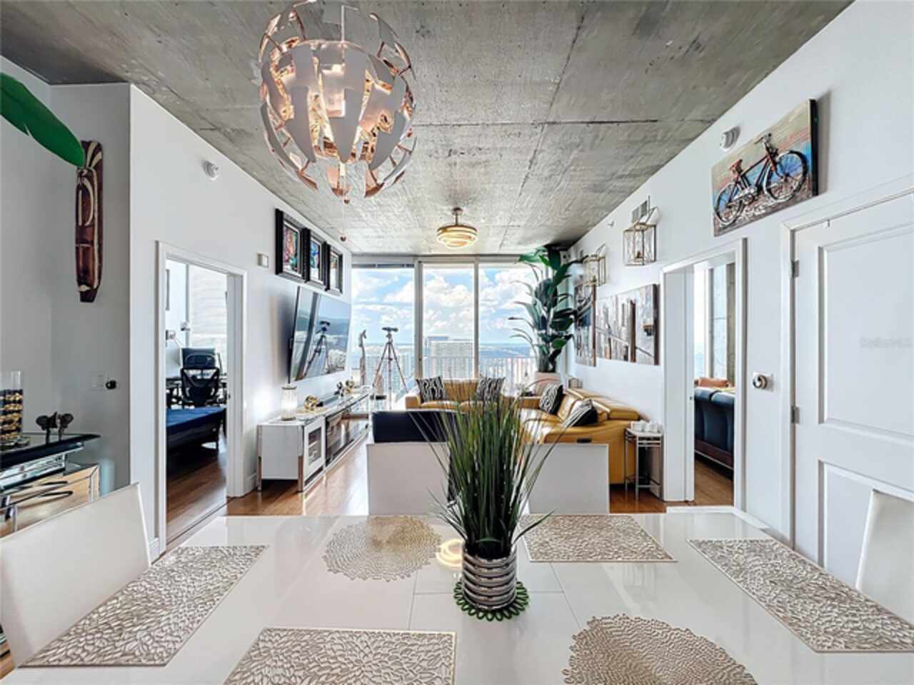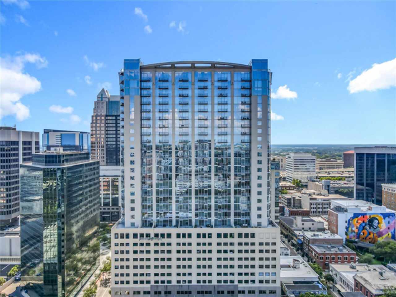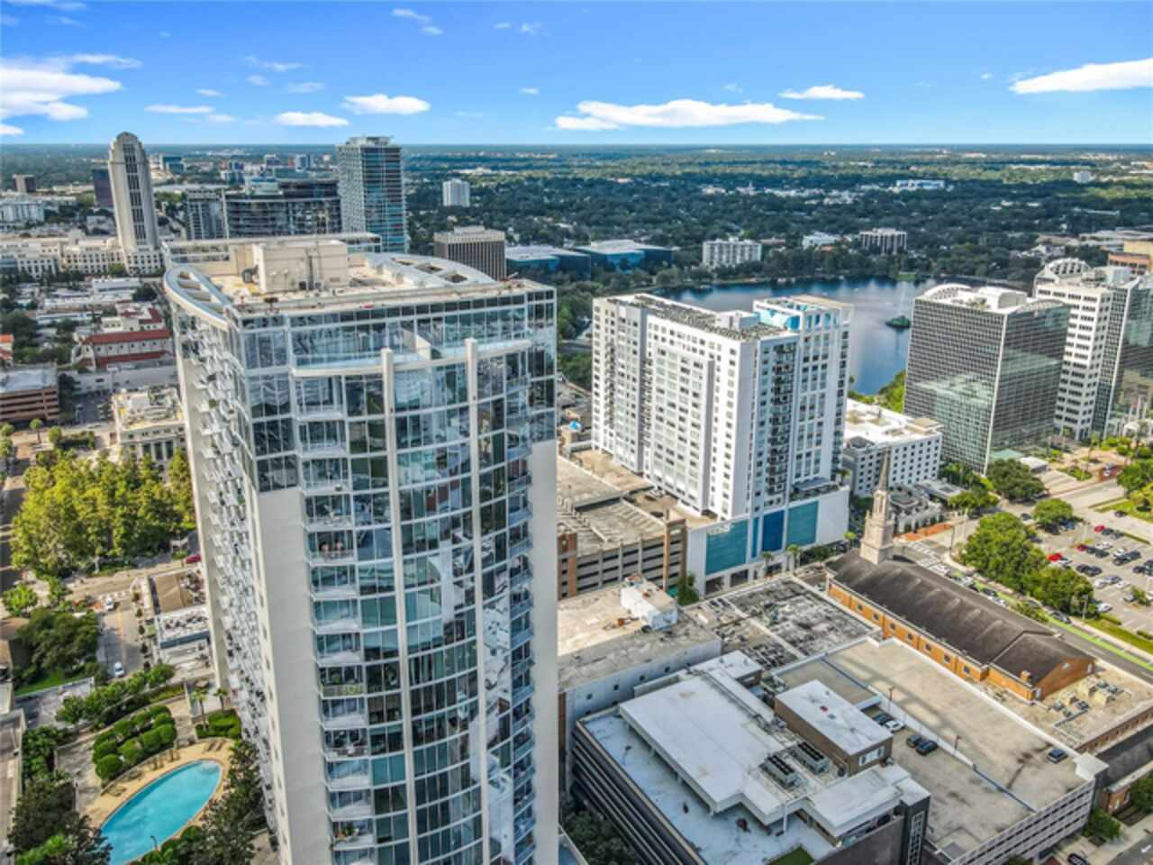 Welcome to luxury high-rise living at Solaire at the Plaza, located in the vibrant heart of downtown Orlando. This stunning 20th-floor, 2-bedroom, 2-bathroom condo offers sleek modern design with breathtaking, unobstructed views of Lake Eola and the downtown skyline through floor-to-ceiling, hurricane-impact windows and industrial-style concrete ceilings and accent walls that create a upscale urban vibe. The Interior features many upgrades including fresh paint throughout, Stylish lighting upgrades including pendant lighting, custom living room chandelier, modern ceiling fans, and elegant uplighting in the kitchen and bathrooms. Hardwood floors in the main living areas & ceramic tile in the bathrooms. The spacious bedrooms feature custom built in's in the closets. The Gourmet kitchen includes granite countertops, hardwood cabinetry, and stainless appliances. There is separate laundry room with new Samsung washer and dryer. Nest thermostat and Rabbit Air humidifier included. The Solaire has secured access to the building and also has a newly renovated lobby that includes 24 hr. Security and Concierge. Solaire's amenity level is conveniently located on the 10th floor featuring a Rooftop pool & expansive sundeck, State-of-the-art fitness center, Resident lounge (available for private rental and events). As an Additional bonus the units includes two assigned & covered parking spaces conveniently located on the 9th floor. The HOA includes: high-speed internet, cable, pest control, and more. This is a Prime Location, just steps from The Plaza, you’ll have immediate access to a movie theater, dining, and shopping. Walk to Lake Eola, Publix, Dr. Phillips Center, Kia Center, The Orlando City Soccer Stadium, and much more. Enjoy the weekend Farmer’s Market, eclectic cafés, and the vibrant nightlife downtown Orlando is known for. Whether you're looking for a luxurious full-time residence or a stylish city retreat, this condo at Solaire offers unmatched convenience, comfort, and sophistication in the heart of Orlando.
