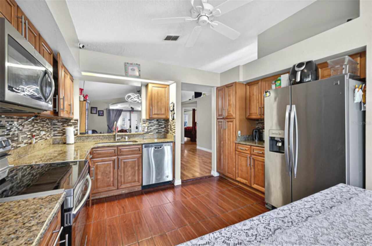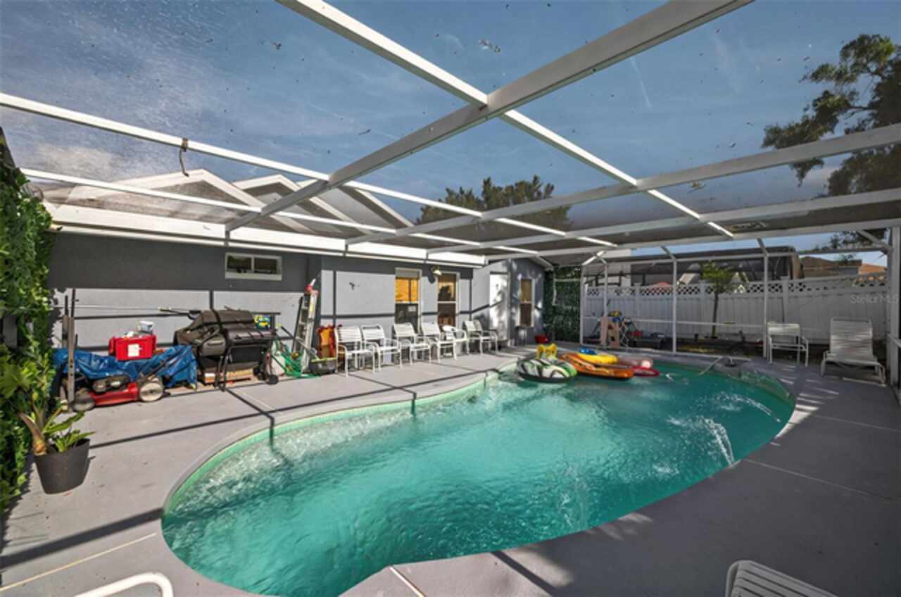 Welcome to 1573 Avleigh Circle, a beautifully maintained home in the heart of Orlando’s sought-after Meadow Woods community. This property offers a spacious and functional layout with a fully updated kitchen featuring granite countertops, a master suite complete with dual sinks, walk-in closets, and a walk-in shower, and a guest bathroom with a full tub. Enjoy the privacy of no rear neighbors, and added peace of mind with a full “Night Owl” security camera system. A standout feature of this home is the enclosed lanai, which serves as a second living space and includes a second kitchen and living area with recessed lighting (please note: the stove in this area does not convey). Additional features include gutters, a powered storage shed, and an extended driveway that fits up to three cars. Recent upgrades include a new roof and water heater in 2018, all new hurricane-rated windows, updated interior and front doors, and new light fixtures and ceiling fans throughout. The garage has been transformed into a “man cave” with added electrical work, offering a flexible space for hobbies or relaxation. The original AC unit has been lightly used and regularly serviced, and the pool is well-maintained with all patio furniture included. All major appliances, blinds, ceiling fans, and TV mounts will convey with the sale, and sellers are open to including furniture. This home is move-in ready, perfectly located near major highways, shopping, and Orlando International Airport—offering comfort, convenience, and thoughtful updates throughout.