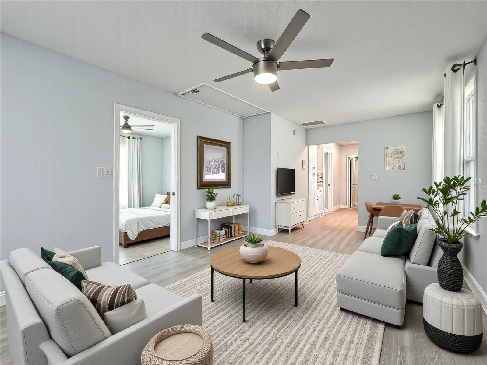 Ceiling Fans(s), Living Room/Dining Room Combo, Open Floorplan, Thermostat, Window Treatments