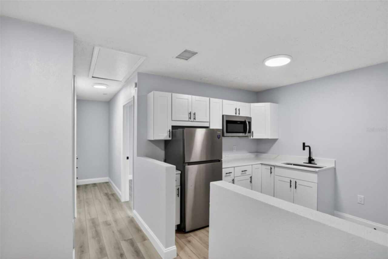 Under contract-accepting backup offers. Located in the sought-after neighborhood of Queenswood Manor in Orlando, this fully renovated 4-bedroom, 3-bathroom home offers 1, 960 square feet of living space on a spacious .25-acre fenced-in lot. A standout feature is the private in-law suite with its own entrance, kitchen, bedroom, and bathroom that is perfect for multigenerational living or rental income. From the moment you arrive, you’ll appreciate the gorgeous curb appeal and manicured landscaping. Inside, brand-new luxury vinyl plank flooring flows throughout. The modern kitchen features stainless steel appliances, quartz countertops, and updated finishes. The bedrooms are bright and comfortable with large windows and ceiling fans, while the bathrooms are refreshed with contemporary vanities and tile-lined showers. A sliding glass door opens to the back porch overlooking the expansive backyard, ideal for gatherings or relaxing at sunset. Living in Orlando means enjoying world-class entertainment, theme parks, a diverse dining scene, shopping destinations, beautiful lakes, and convenient access to major highways, downtown, and the Orlando International Airport.