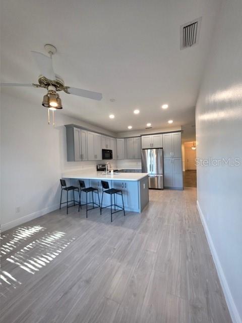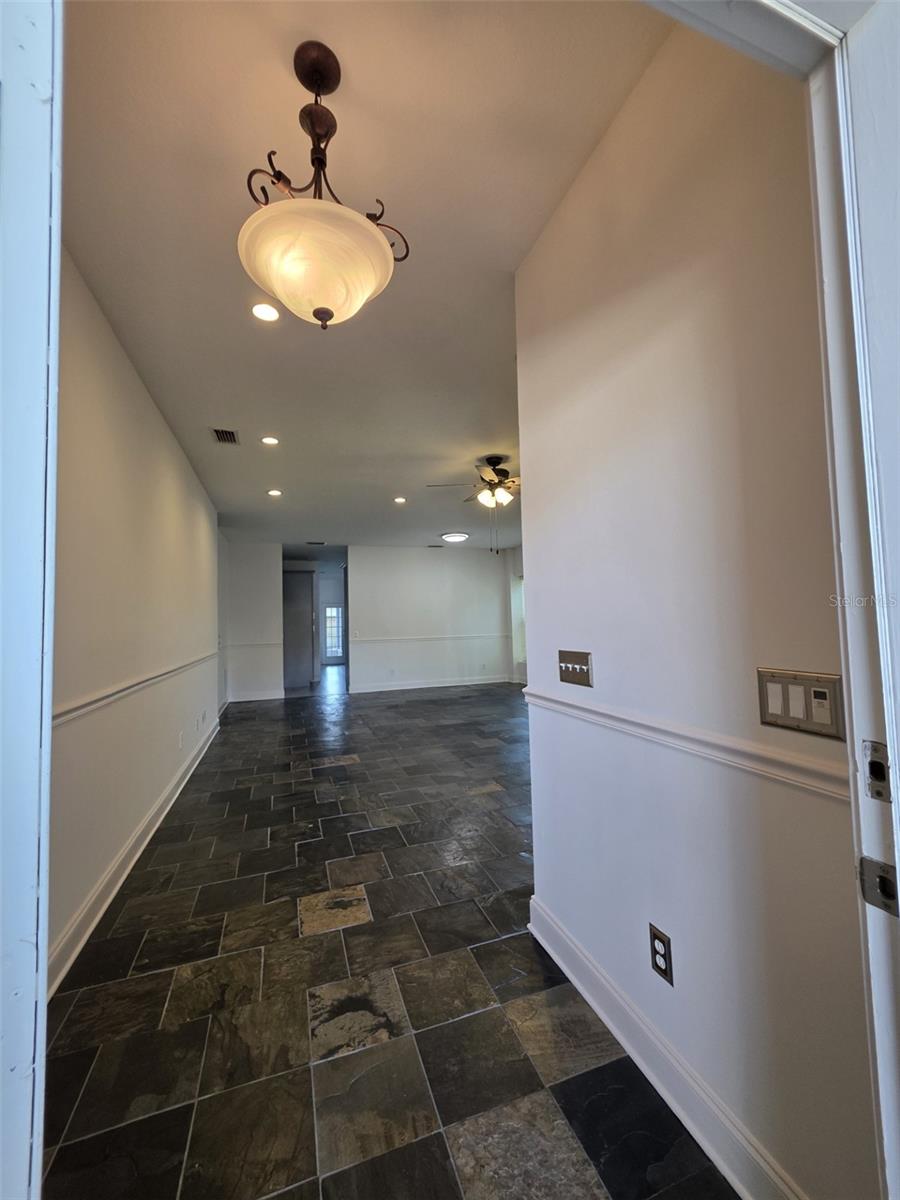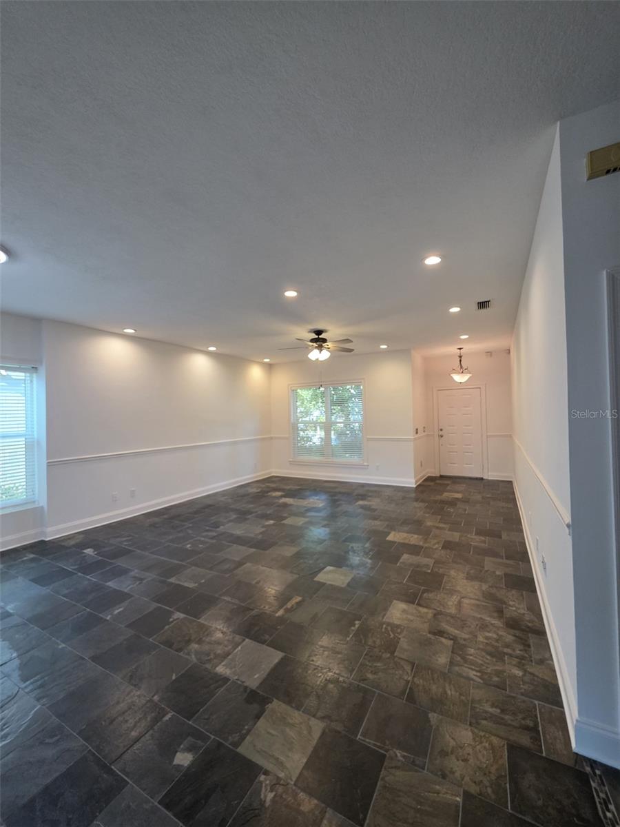 Ceiling Fans(s), Chair Rail, High Ceilings, Kitchen/Family Room Combo, Living Room/Dining Room Combo, Primary Bedroom Main Floor, Solid Surface Counters