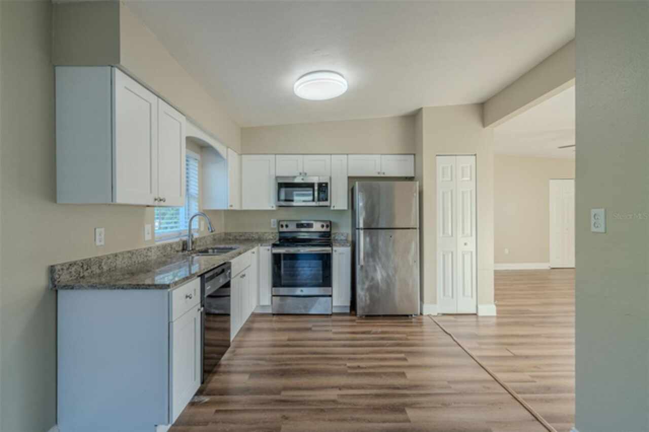This beautiful 1-story home offers the perfect blend of comfort and functionality. With 4 bedrooms and 2 well-appointed bathrooms, there's plenty of room for your everyone to grow and relax. The heart of the home features a kitchen that opens seamlessly into the living room, making it ideal for entertaining or enjoying time together. The kitchen boasts sleek granite countertops and crisp white cabinets, creating a bright, inviting space for cooking and dining. Relax on the small front porch, perfect for enjoying a cup of coffee or greeting neighbors. The 2-car carport offers convenient parking and easy access to the home. Additionally, the crawl space has outdoor access with a door, providing great storage options to keep your home organized and clutter-free. This home offers a fantastic layout, modern finishes, and plenty of storage—perfect for everyday living. Schedule a tour today and make this gem yours!