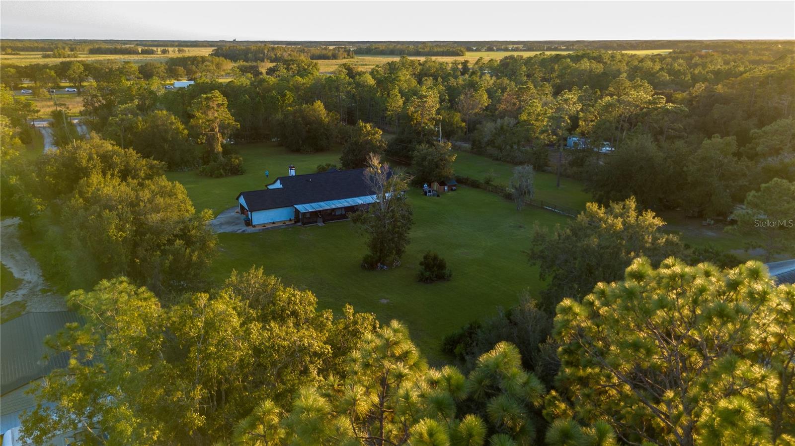 Welcome to your dream home, where privacy, luxury, and nature coexist in perfect harmony. This exceptional property, situated on 4.31 acres of pristine land, presents a rare opportunity to own a peaceful retreat just 15 minutes from Orlando International Airport and 10 minutes from Lake Nona. Conveniently located near major highways, shopping, dining, and entertainment, this residence offers the perfect balance between serene country living and easy access to urban conveniences. As you enter through the long private driveway, the peaceful surroundings immediately set the tone. The single-family residence combines modern comfort with rustic elegance, featuring open-concept living spaces designed for both relaxation and entertaining. Large windows invite natural light and showcase stunning views of the private pond, where golden sunsets reflect over the water, creating an atmosphere of pure tranquility. The fully remodeled kitchen is a chef’s dream, complete with modern cabinetry, quartz countertops, stainless steel appliances, and a large island perfect for family gatherings. The primary suite offers a true retreat experience, with French doors and 2 spacious walk-in closet. Throughout the home, you’ll find tasteful updates, sleek finishes, and a new roof, ensuring lasting quality and peace of mind. Step outside and experience a lifestyle of freedom and connection to nature. The property’s barn adds a distinctive touch, ideal for family gatherings, private celebrations, or creative pursuits , offering endless possibilities to personalize this space. With zoning that allows horses, the land is perfectly suited for equestrian enthusiasts, hobby farmers, or anyone desiring room to explore and breathe. A charming treehouse surrounded by mature trees adds a playful yet nostalgic element , a space to relax, read, or watch the stars that inspired this home’s name. Whether you enjoy gardening, fishing on your own pond, or simply unwinding in nature, this property offers the freedom to live life on your terms. And the best part? No HOA. No CDD. No Wetland. That means no big restrictions, no additional fees, and complete control over how you enjoy your land. This is more than a home, it’s a lifestyle. Ideal for those seeking space, privacy, and refined living without compromising proximity to Orlando’s amenities. This exceptional property offers an unparalleled setting where tranquility meets convenience, providing the perfect backdrop for a distinguished lifestyle. Although all information is intended to be correct, it is the responsibility of the buyer and their agent to verify all listing information.