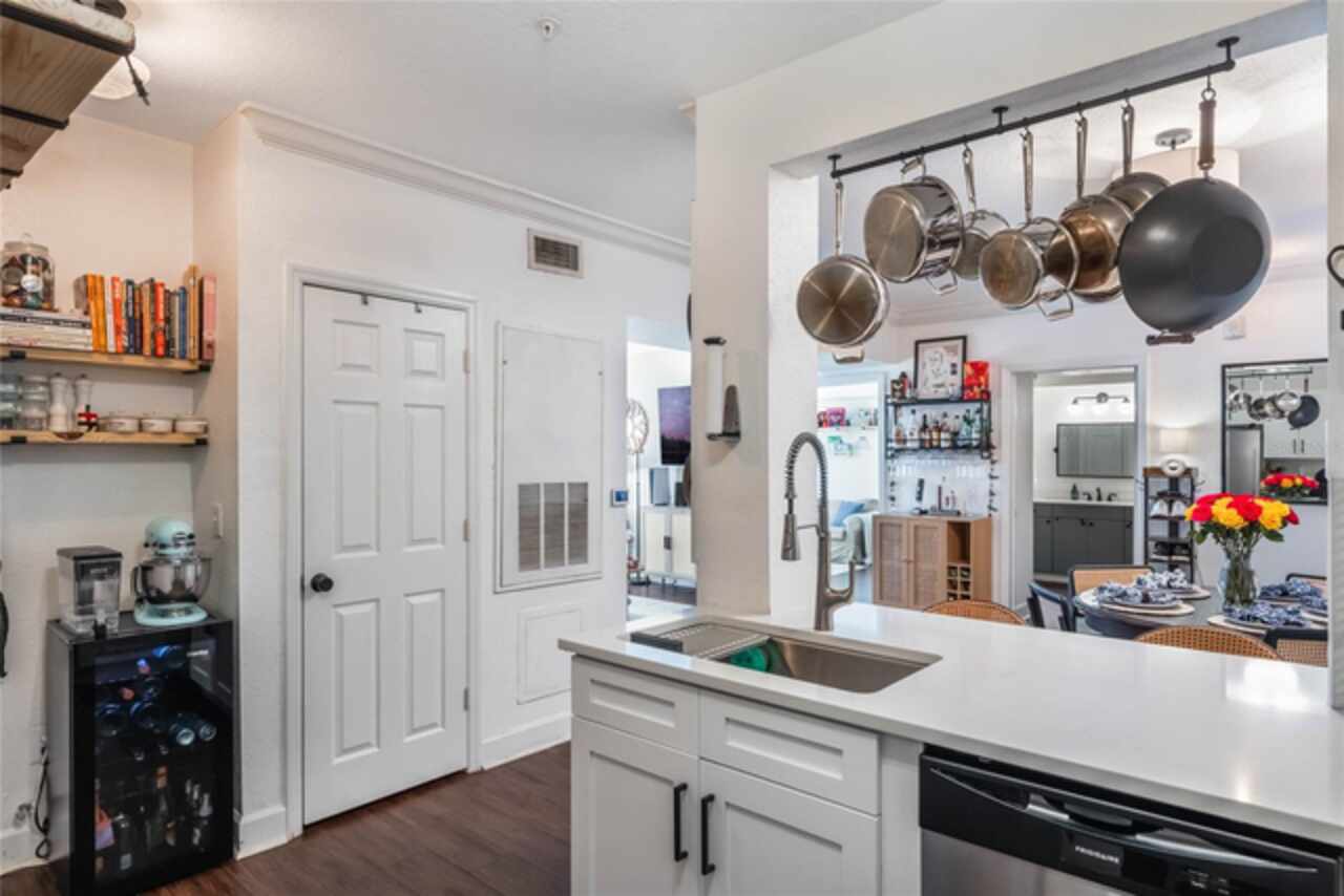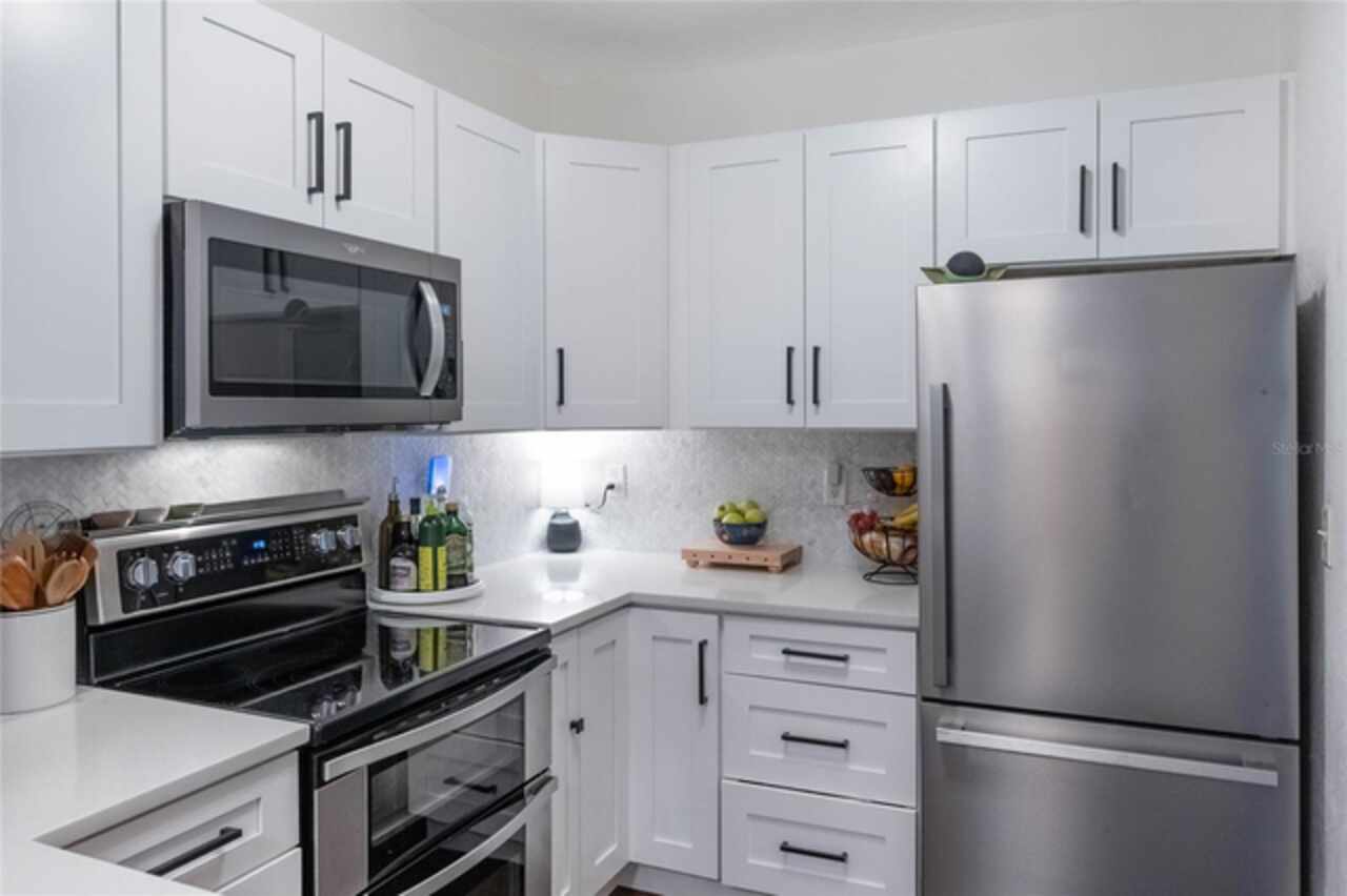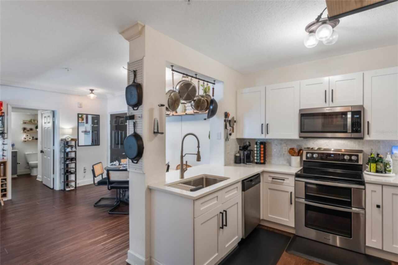 Step into luxury living in this fully remodeled corner unit condo at The Grande, an exclusive condominium community in the heart of Downtown Orlando. This beautifully updated 2-bedroom, 2-bathroom is a true gem, offering a perfect blend of style, comfort, and convenience. Situated on the top floor, this unit boasts tall ceilings and arched windows, allowing for an abundance of natural light and panoramic views of the resort-style pool below. The interior is completely remodeled with luxury vinyl plank flooring throughout, ensuring a sleek, modern feel that's easy to maintain. A gorgeous fully remodeled kitchen features new cabinetry, quartz countertops, and brand new stainless steel appliances, perfect for home cooks and entertainers alike. Both bathrooms have been transformed, featuring spacious quartz vanities, modern fixtures, and a spa-like atmosphere. The master suite offers the ultimate retreat with an oversized walk-in closet, and an enormous soaking tub that provides the perfect way to unwind. The second bedroom is equally spacious, ideal for guests, home office, or as a second private retreat. Step through the french doors that lead to your private balcony overlooking the sparkling pool, perfect for relaxing or entertaining. Enjoy the added benefit of a new HVAC system (2024) and a newer water heater (2022) for optimal efficiency and comfort. The recently resurfaced community pool is ideal for a swim or lounging poolside in style and you can stay fit and healthy with access to the newly renovated community gym! The secure, pet-friendly community is located just minutes from all the best that Downtown Orlando has to offer, including dining, shopping, and entertainment. This condo is the epitome of urban living with luxury and modern upgrades throughout. Whether you're looking for a primary residence, a second home, or an investment property, this stunning unit is a must-see. Schedule your private tour today and experience firsthand the incredible value and lifestyle The Grande offers!