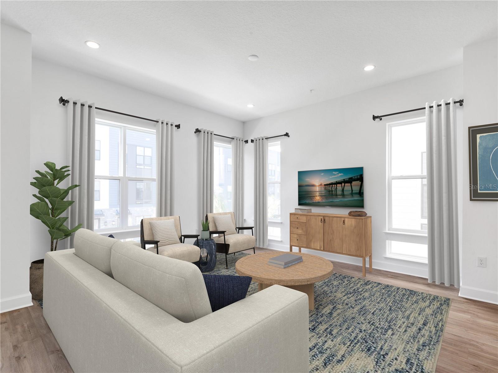 One or more photo(s) has been virtually staged. Ready to Move In, Ready to Impress! Welcome to your new home in the Brix community! A beautifully designed 4-story townhome with style, space, and a rooftop retreat that’s built for living and entertaining. On the first floor, you’ll find a private bedroom with its own ensuite bath, perfect for guests, a home office, or a quiet escape, plus a roomy two-car garage for all your storage and parking needs. Head upstairs to the second floor, where everyday life gets a serious upgrade. The gourmet kitchen features striking grey-blue cabinets, sleek quartz countertops, a crisp white backsplash, and a full suite of included appliances. The open layout connects the kitchen to a cozy dining area and a sunlit great room, the perfect space to unwind, entertain, or do a little of both. The third floor offers privacy and comfort with a spacious primary suite, a secondary bedroom, and a walk-in laundry room that keeps everything within reach but out of sight. But what really sets this home apart? The private rooftop terrace on the fourth floor, already wired and prepped for a future summer kitchen, fireplace, and hot tub. Whether it’s brunch with friends or quiet nights under the stars, this rooftop is your personal escape. Thoughtfully selected interior finishes bring style and function together: Engineered hardwood stairs, Luxury vinyl plank flooring throughout the main living areas, Designer cabinetry and quartz surfaces that make every space feel custom. And don’t forget, there’s a model home on-site with a similar layout and design. Stop by for a tour and see what life at the top really looks like. Living in The Packing District means so much more than just having a beautiful home — it’s about embracing a dynamic, connected lifestyle. Start your day with a peaceful walk or bike ride along the scenic 1.5-mile trail, then grab a slice at the food hall or break a sweat at the brand-new YMCA. Meet up with friends for a competitive game of pickleball or tennis at the Orlando Tennis Center — all just steps from your door. And the amenities don’t stop there. The Packing District is growing into one of Orlando’s most exciting new communities, featuring a new Publix, rock climbing facility, Hotworx Studio, and the innovative 4Roots Farm Campus. With future office and retail spaces also in the works, everything you need — from wellness to convenience to recreation — is right at your fingertips.