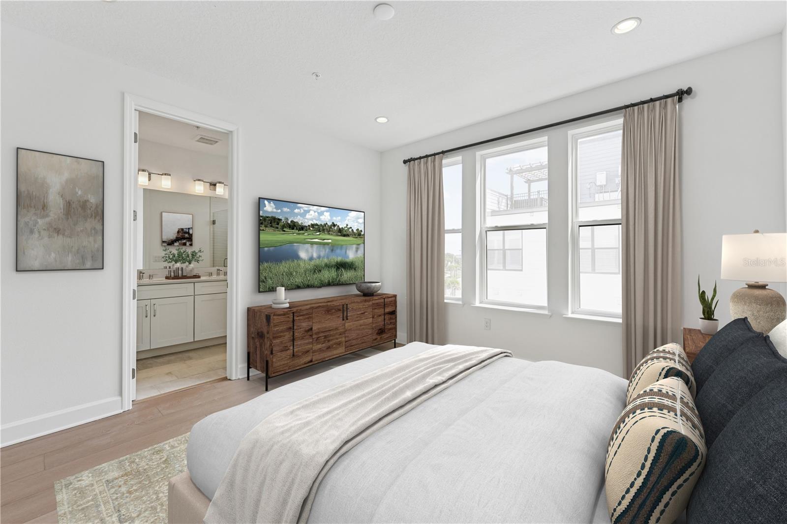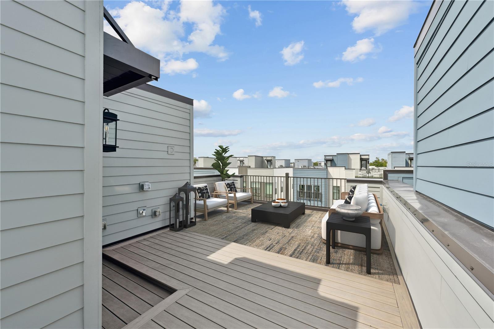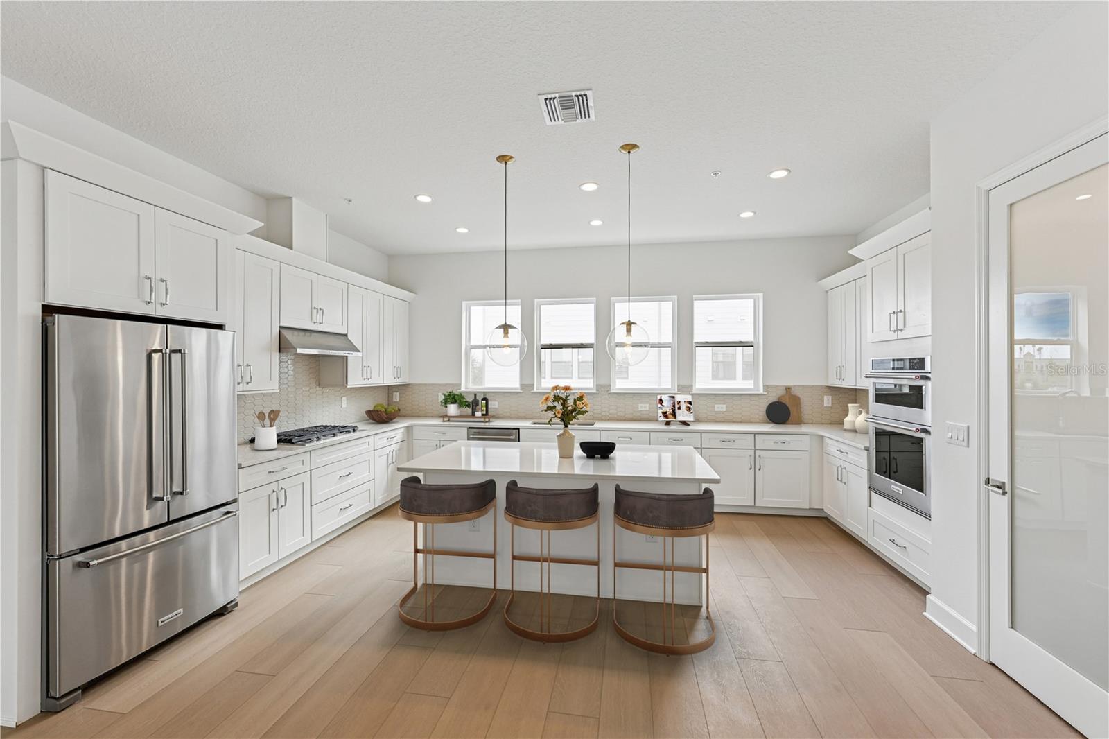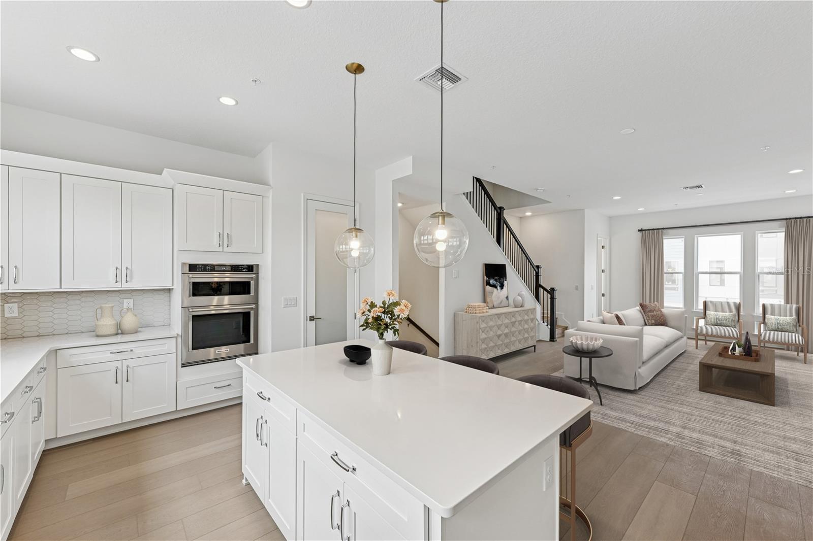 Welcome to The Brix, an exquisite 4-story townhome that lives more like a single-family home, featuring 3 bedrooms and 3.5 bathrooms — plus a stunning rooftop terrace! Enjoy courtyard views from the front with gorgeous landscaping and twinkling lights. The rooftop terrace offers a glimpse of the Downtown Orlando skyline, adding a magical touch to evenings spent outdoors. The first floor offers a convenient bedroom and full bathroom, perfect for guests or a home office. On the second floor, the bright and elegant gourmet kitchen impresses with crisp white cabinetry, a soft off-white tile backsplash, and luxurious white quartz countertops that reflect natural light beautifully. High-end KitchenAid gas appliances, a spacious center island with breakfast bar, and a large walk-in pantry complete this stunning space, perfect for both everyday living and entertaining. Upstairs, the third floor hosts a luxurious primary suite with a generous walk-in closet, along with a second bedroom, full bathroom, and a well-placed laundry room. Capping it all off is the expansive rooftop terrace, prepped for an outdoor kitchen, fireplace, and hot tub, ideal for relaxing or entertaining with stunning views in every direction. The Brix is perfectly situated within close distance to popular amenities including scenic walking/biking trails, the Orlando Tennis Centre, and the YMCA. Schedule your private tour today and experience the elevated lifestyle at The Brix!