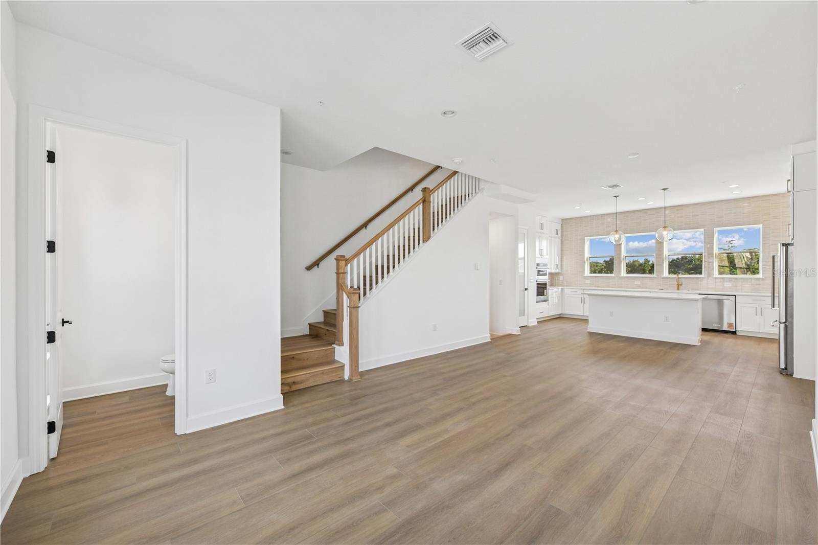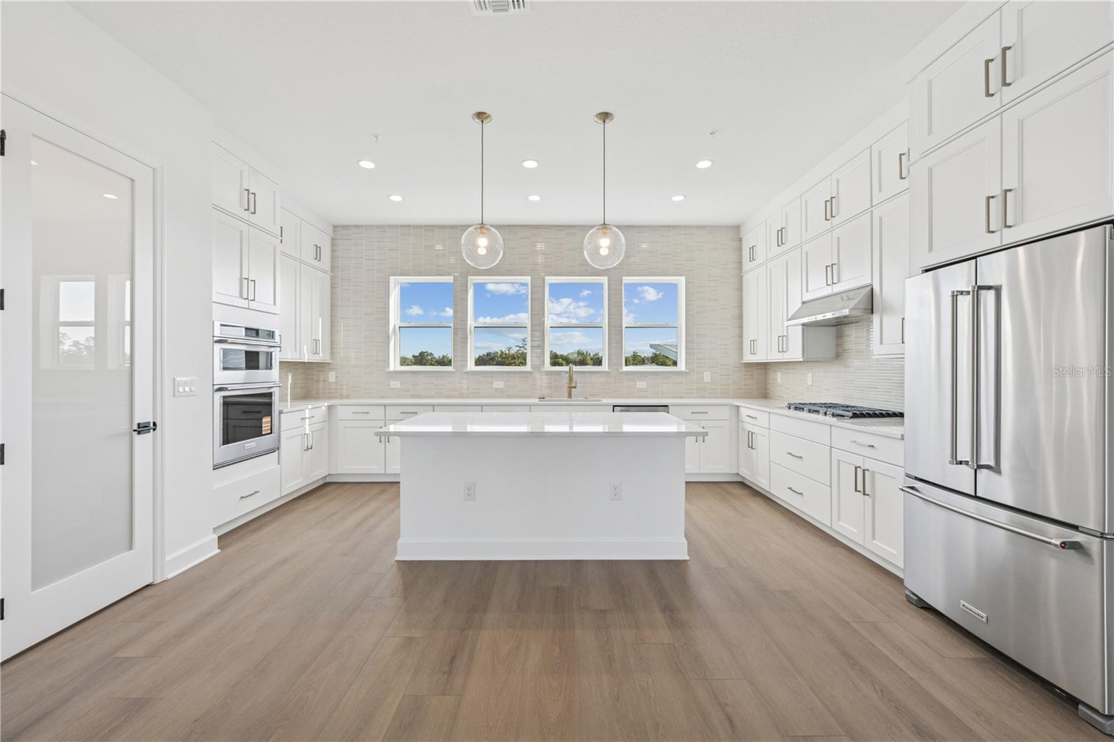 Welcome to The Brix, an exquisite 4-story townhome that lives more like a single-family home, featuring 3 bedrooms and 3.5 bathrooms, plus a stunning rooftop terrace! Enjoy open space park views from the back, offering a rare blend of privacy and natural beauty. The first floor offers a convenient bedroom and full bathroom, perfect for guests or a home office. On the second floor, the gourmet kitchen is a true showstopper, featuring white cabinetry that extends all the way to the ceiling, an eye-catching full-height backsplash, upgraded quartz countertops with elegant gold specks, high-end KitchenAid gas appliances, a spacious center island with breakfast bar, and a large walk-in pantry. Natural light pours in from every angle, highlighting the home's thoughtful design and picturesque views of the park just beyond your windows. Upstairs, the third floor hosts a luxurious primary suite with a generous walk-in closet, along with a second bedroom, full bathroom, and a well-placed laundry room. Capping it all off is the expansive rooftop terrace, prepped for an outdoor kitchen, fireplace, and hot tub, ideal for relaxing or entertaining with stunning views in every direction. The Brix is perfectly situated within close distance to popular amenities including scenic walking/biking trails, the Orlando Tennis Centre, and the YMCA. Schedule your private tour today and experience the elevated lifestyle at The Brix!