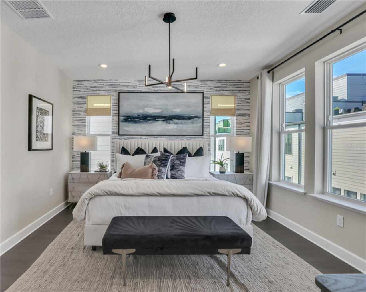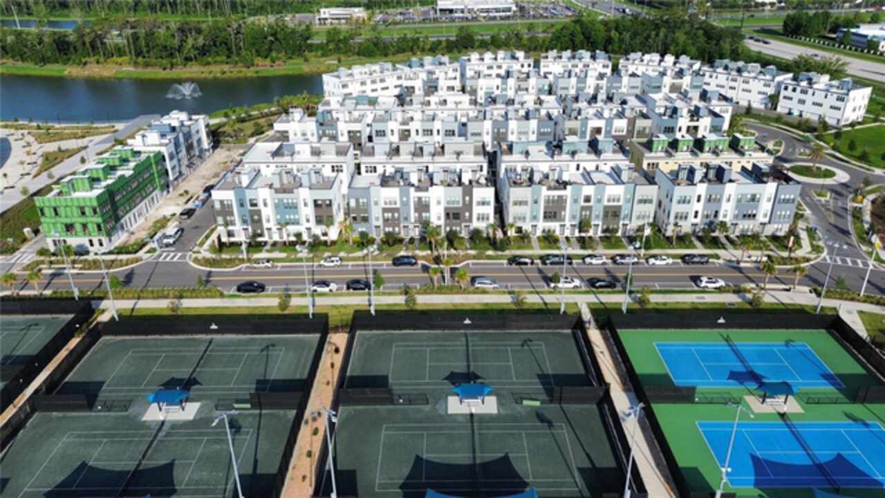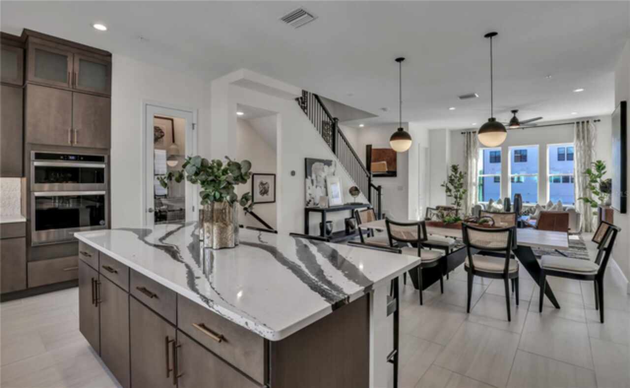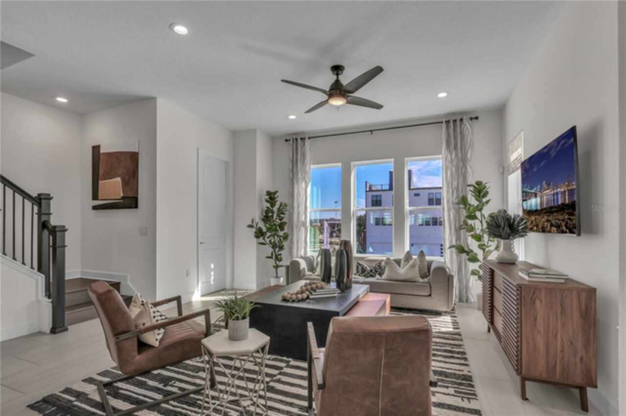 MODEL HOME AVAILABLE FOR SALE! All furniture is included! This stunning 4-story townhome is ready for you to move right in and start living the vibrant lifestyle you’ve been dreaming of. Step inside to a welcoming first floor that features a private bedroom with an ensuite bath- perfect for guests, a home office, or multi-generational living — along with a spacious two-car garage for added convenience. The second floor is where life happens. This bright, open-concept space includes a gourmet kitchen with upgraded brown cabinetry that reach to the ceiling, sleek quartz countertops- the island countertop will wow you, a designer backsplash, and premium appliances — refrigerator, range, microwave, dishwasher, washer, and dryer, all included. Enjoy casual meals in the dining area and unwind in the naturally lit great room that’s ideal for relaxing or entertaining. Upstairs on the third floor, you’ll find the serene primary bedroom retreat, a second spacious bedroom, and a walk-in laundry room that adds everyday ease. But the real showstopper? The fourth-floor rooftop terrace — your private outdoor haven, including a summer kitchen, prepped for a future fireplace, and even a hot tub. Whether you’re hosting friends, enjoying a peaceful morning coffee, or catching golden-hour views, this space is designed to impress. Inside, you’ll love the thoughtfully curated finishes: Engineered hardwood stairs and tile flooring throughout main living areas. Want a closer look? Tour our onsite model home, which mirrors the layout and design — and see firsthand why this home stands out. Living in The Packing District means so much more than just having a beautiful home — it’s about embracing a dynamic, connected lifestyle. Start your day with a peaceful walk or bike ride along the scenic 1.5-mile trail, then grab a slice at the food hall or break a sweat at the brand-new YMCA. Meet up with friends for a competitive game of pickleball or tennis at the Orlando Tennis Center — all just steps from your door. And the amenities don’t stop there. The Packing District is growing into one of Orlando’s most exciting new communities, featuring a new Publix, rock climbing facility, Hotworx Studio, and the innovative 4Roots Farm Campus. With future office and retail spaces also in the works, everything you need — from wellness to convenience to recreation — is right at your fingertips.