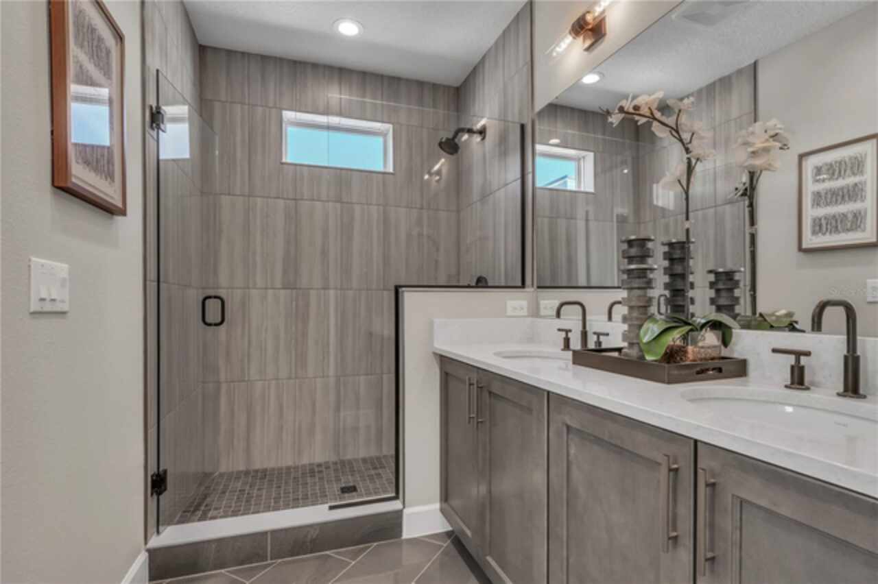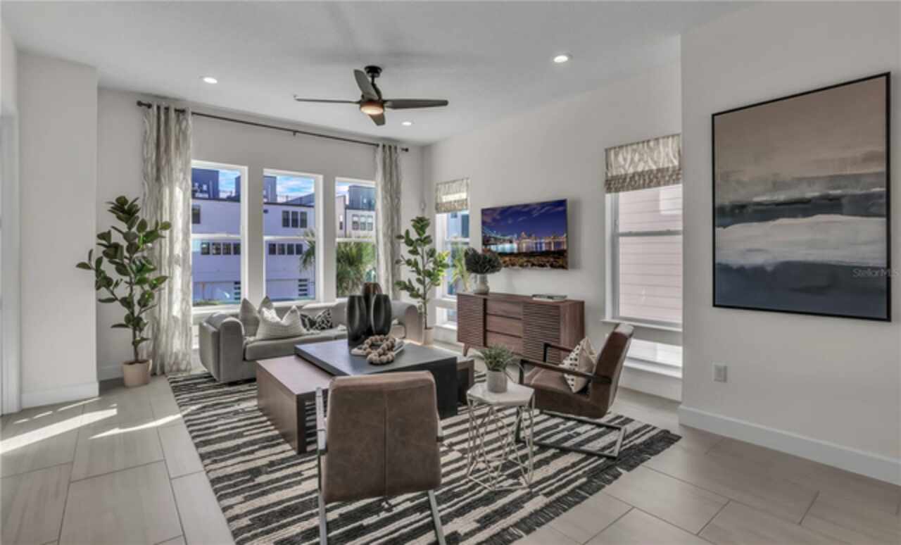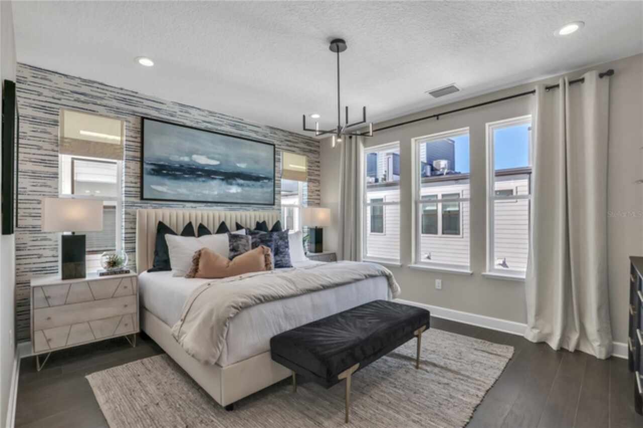 MODEL HOME AVAILABLE FOR SALE! All furniture is included! This stunning 4-story townhome is ready for you to move right in and start living the vibrant lifestyle you’ve been dreaming of. Step inside to a welcoming first floor that features a private bedroom with an ensuite bath- perfect for guests, a home office, or multi-generational living — along with a spacious two-car garage for added convenience. The second floor is where life happens. This bright, open-concept space includes a gourmet kitchen with upgraded brown cabinetry that reach to the ceiling, sleek quartz countertops- the island countertop will wow you, a designer backsplash, and premium appliances — refrigerator, range, microwave, dishwasher, washer, and dryer, all included. Enjoy casual meals in the dining area and unwind in the naturally lit great room that’s ideal for relaxing or entertaining. Upstairs on the third floor, you’ll find the serene primary bedroom retreat, a second spacious bedroom, and a walk-in laundry room that adds everyday ease. But the real showstopper? The fourth-floor rooftop terrace — your private outdoor haven, including a summer kitchen, prepped for a future fireplace, and even a hot tub. Whether you’re hosting friends, enjoying a peaceful morning coffee, or catching golden-hour views, this space is designed to impress. Inside, you’ll love the thoughtfully curated finishes: Engineered hardwood stairs and tile flooring throughout main living areas. Want a closer look? Tour our onsite model home, which mirrors the layout and design — and see firsthand why this home stands out. Living in The Packing District means so much more than just having a beautiful home — it’s about embracing a dynamic, connected lifestyle. Start your day with a peaceful walk or bike ride along the scenic 1.5-mile trail, then grab a slice at the food hall or break a sweat at the brand-new YMCA. Meet up with friends for a competitive game of pickleball or tennis at the Orlando Tennis Center — all just steps from your door. And the amenities don’t stop there. The Packing District is growing into one of Orlando’s most exciting new communities, featuring a new Publix, rock climbing facility, Hotworx Studio, and the innovative 4Roots Farm Campus. With future office and retail spaces also in the works, everything you need — from wellness to convenience to recreation — is right at your fingertips.