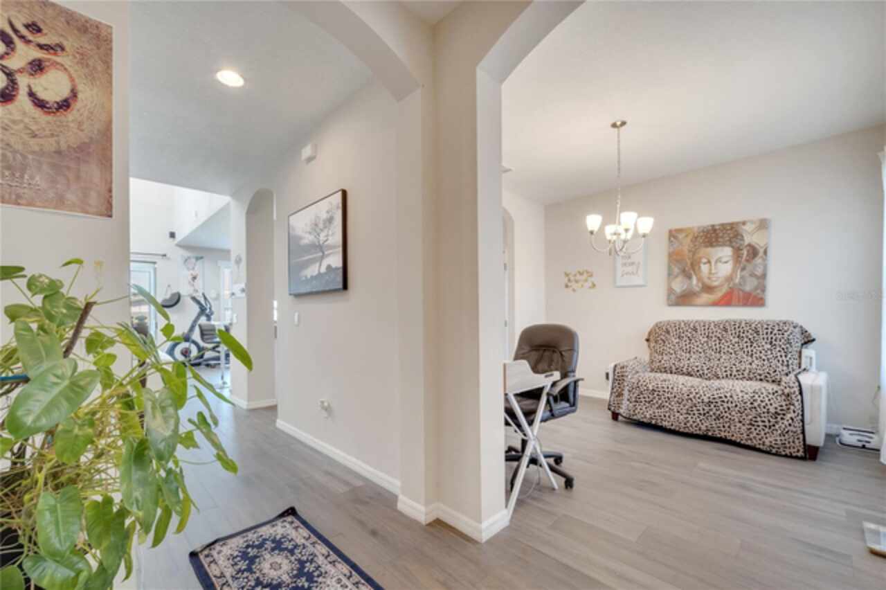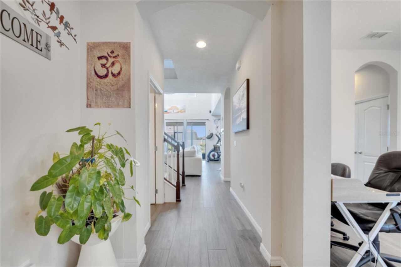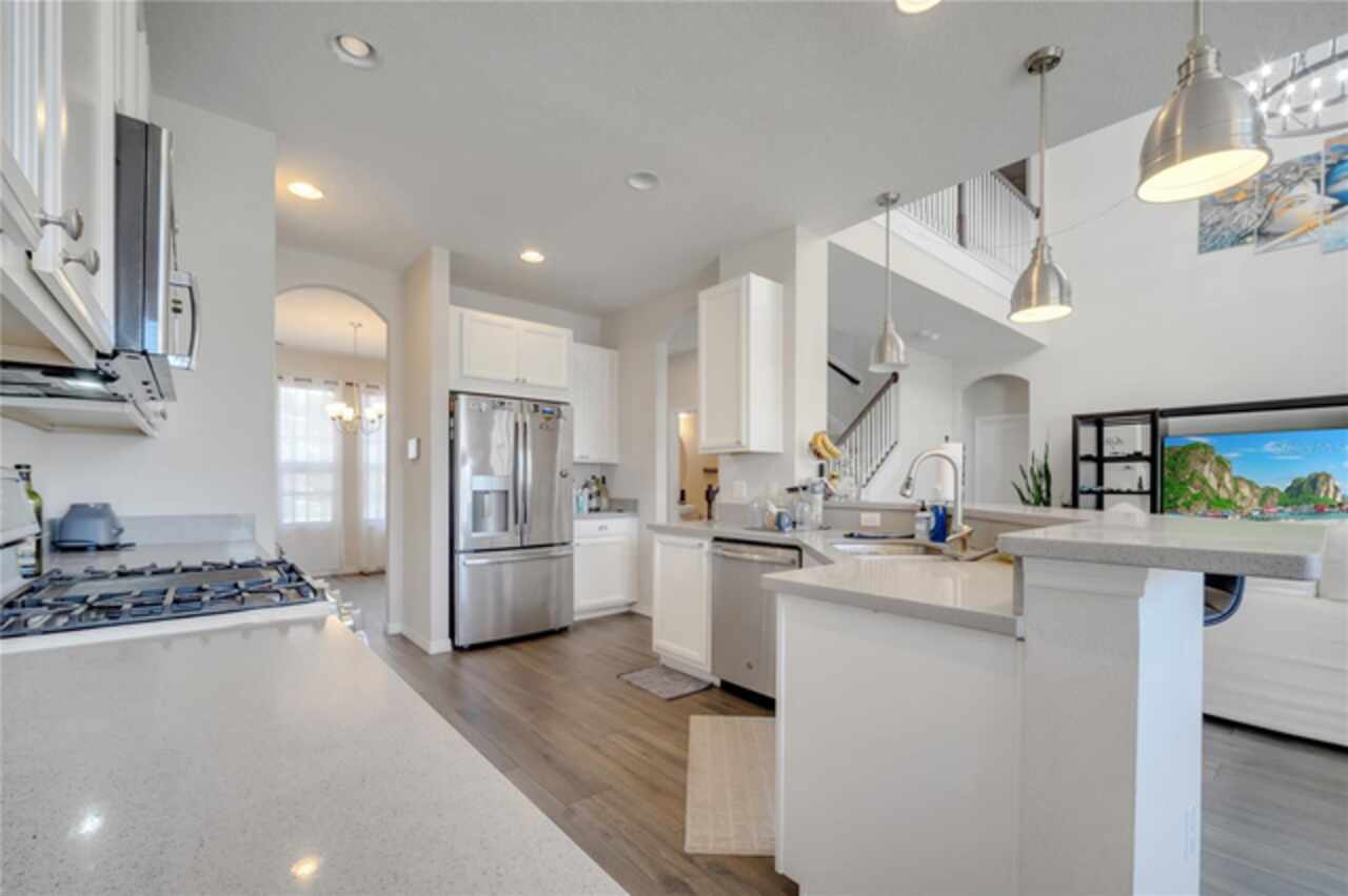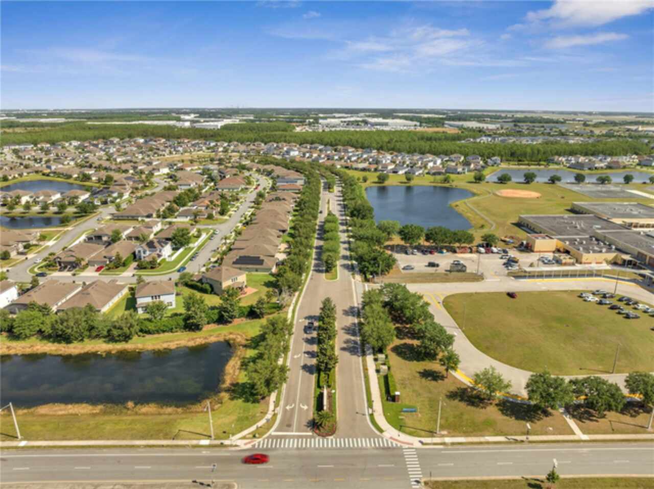 Why wait for new construction when this beautifully upgraded home, built in 2018, is ready for you now? Ideally located just 10 minutes from Lake Nona, less than 5 minutes from major highways, and within 30 minutes of Disney World, Universal Studios, and Downtown Orlando, this home offers a perfect blend of modern comfort, convenience, and resort-style community living. With 4 bedrooms, 3.5 bathrooms, and a thoughtfully designed layout, this home is perfect for families or anyone who loves to entertain. From the moment you arrive, the elevated exterior design stands out, setting the tone for what’s inside. At the entry, a flex space functions beautifully as a home office or formal dining area, leading into a stunning double-height living area filled with natural light from the expansive 9’ sliding glass doors. The gourmet kitchen features 42” white cabinets, stainless steel appliances, a gas stove, and generous counter space—an ideal space for cooking and hosting. The home is also pre-wired for surround sound for a truly immersive living experience. The first-floor primary suite offers privacy and luxury, with a walk-in closet, soaking tub, walk-in shower, and sleek black tile accents. Upstairs, upgraded railings lead you to a spacious loft, perfect for a second living space, playroom, or home theater. The three additional bedrooms are split, with a thoughtful layout offering comfort and separation, along with two full bathrooms. Outside, enjoy your fully fenced backyard complete with recent upgrades, including a screened-in patio ($1, 500), extended paver patio ($3, 000), gutters ($1, 000), and motorized blinds ($1, 300) on the large window. With 10 mature fruit trees, there’s plenty of space to relax, garden, or even add a pool. Additional features include rich wood flooring throughout, updated ceiling fans, smart garage door, and smart door lock. The community amenities elevate the lifestyle even more, featuring a dog park, playground, soccer field, and a resort-style community pool—all just steps from your front door. Don’t miss this opportunity to own a move-in-ready, feature-packed home in one of Orlando’s most convenient and growing areas. Schedule your private tour of 2348 Pearl Cider St today and experience the perfect mix of comfort, style, and location!
