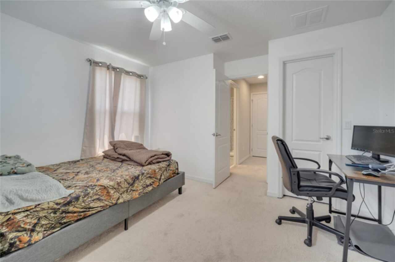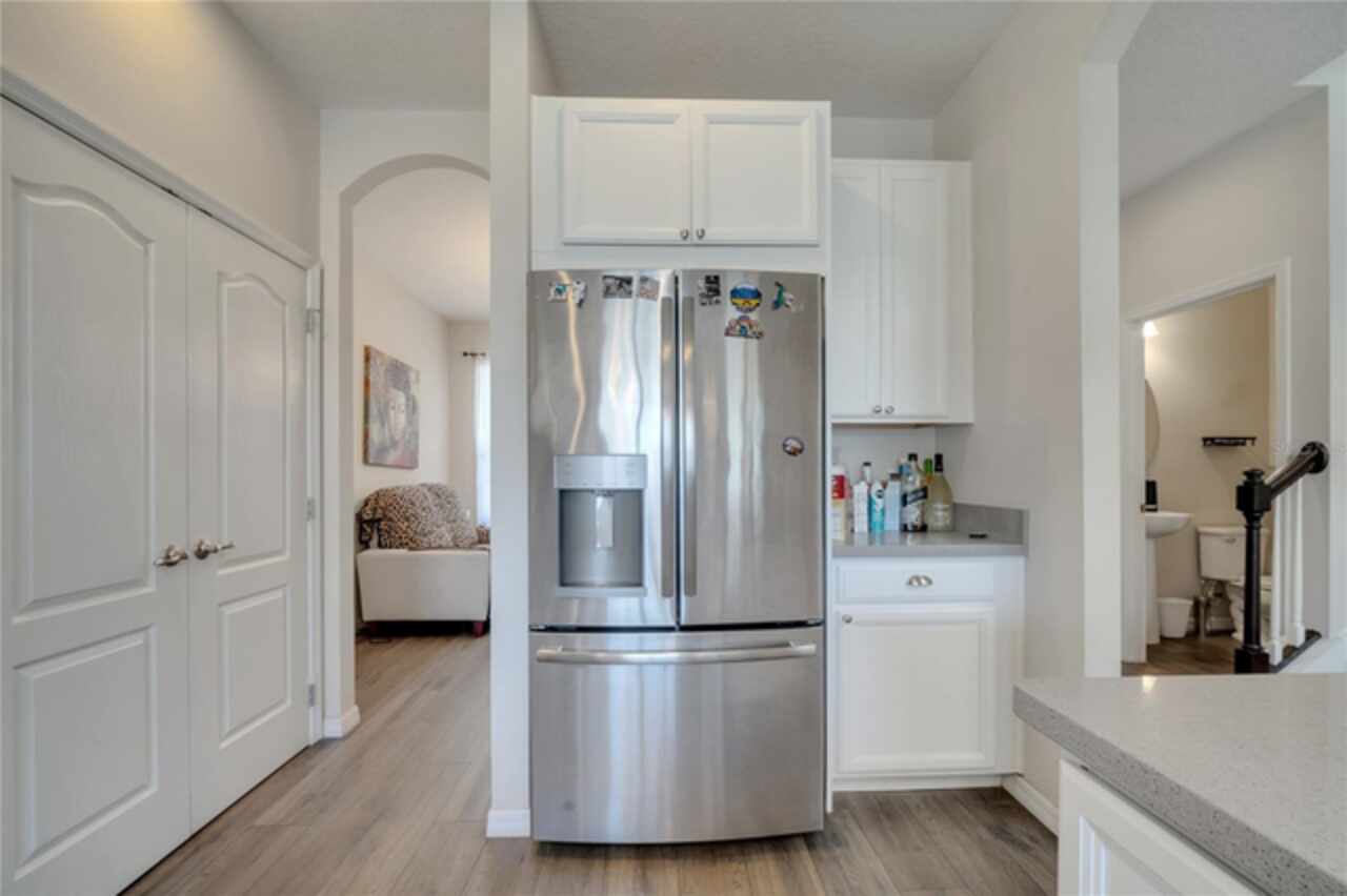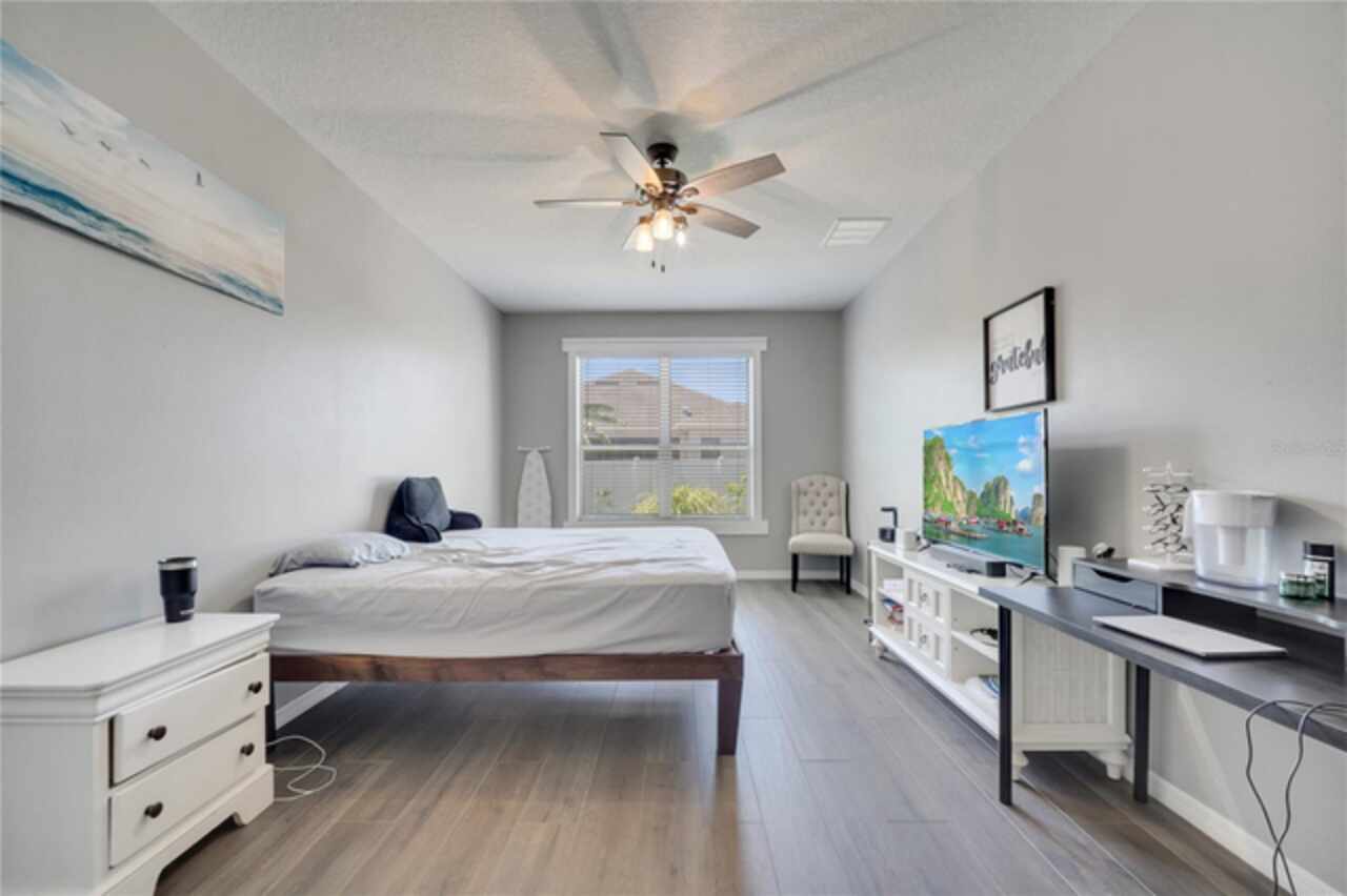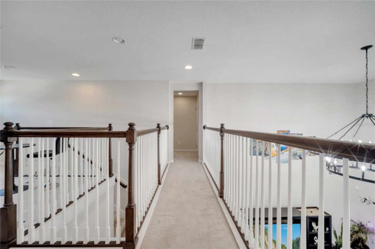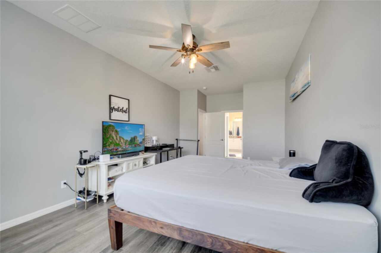 Why wait for new construction when this beautifully upgraded home, built in 2018, is ready for you now? Ideally located just 10 minutes from Lake Nona, less than 5 minutes from major highways, and within 30 minutes of Disney World, Universal Studios, and Downtown Orlando, this home offers a perfect blend of modern comfort, convenience, and resort-style community living. With 4 bedrooms, 3.5 bathrooms, and a thoughtfully designed layout, this home is perfect for families or anyone who loves to entertain. From the moment you arrive, the elevated exterior design stands out, setting the tone for what’s inside. At the entry, a flex space functions beautifully as a home office or formal dining area, leading into a stunning double-height living area filled with natural light from the expansive 9’ sliding glass doors. The gourmet kitchen features 42” white cabinets, stainless steel appliances, a gas stove, and generous counter space—an ideal space for cooking and hosting. The home is also pre-wired for surround sound for a truly immersive living experience. The first-floor primary suite offers privacy and luxury, with a walk-in closet, soaking tub, walk-in shower, and sleek black tile accents. Upstairs, upgraded railings lead you to a spacious loft, perfect for a second living space, playroom, or home theater. The three additional bedrooms are split, with a thoughtful layout offering comfort and separation, along with two full bathrooms. Outside, enjoy your fully fenced backyard complete with recent upgrades, including a screened-in patio ($1, 500), extended paver patio ($3, 000), gutters ($1, 000), and motorized blinds ($1, 300) on the large window. With 10 mature fruit trees, there’s plenty of space to relax, garden, or even add a pool. Additional features include rich wood flooring throughout, updated ceiling fans, smart garage door, and smart door lock. The community amenities elevate the lifestyle even more, featuring a dog park, playground, soccer field, and a resort-style community pool—all just steps from your front door. Don’t miss this opportunity to own a move-in-ready, feature-packed home in one of Orlando’s most convenient and growing areas. Schedule your private tour of 2348 Pearl Cider St today and experience the perfect mix of comfort, style, and location!