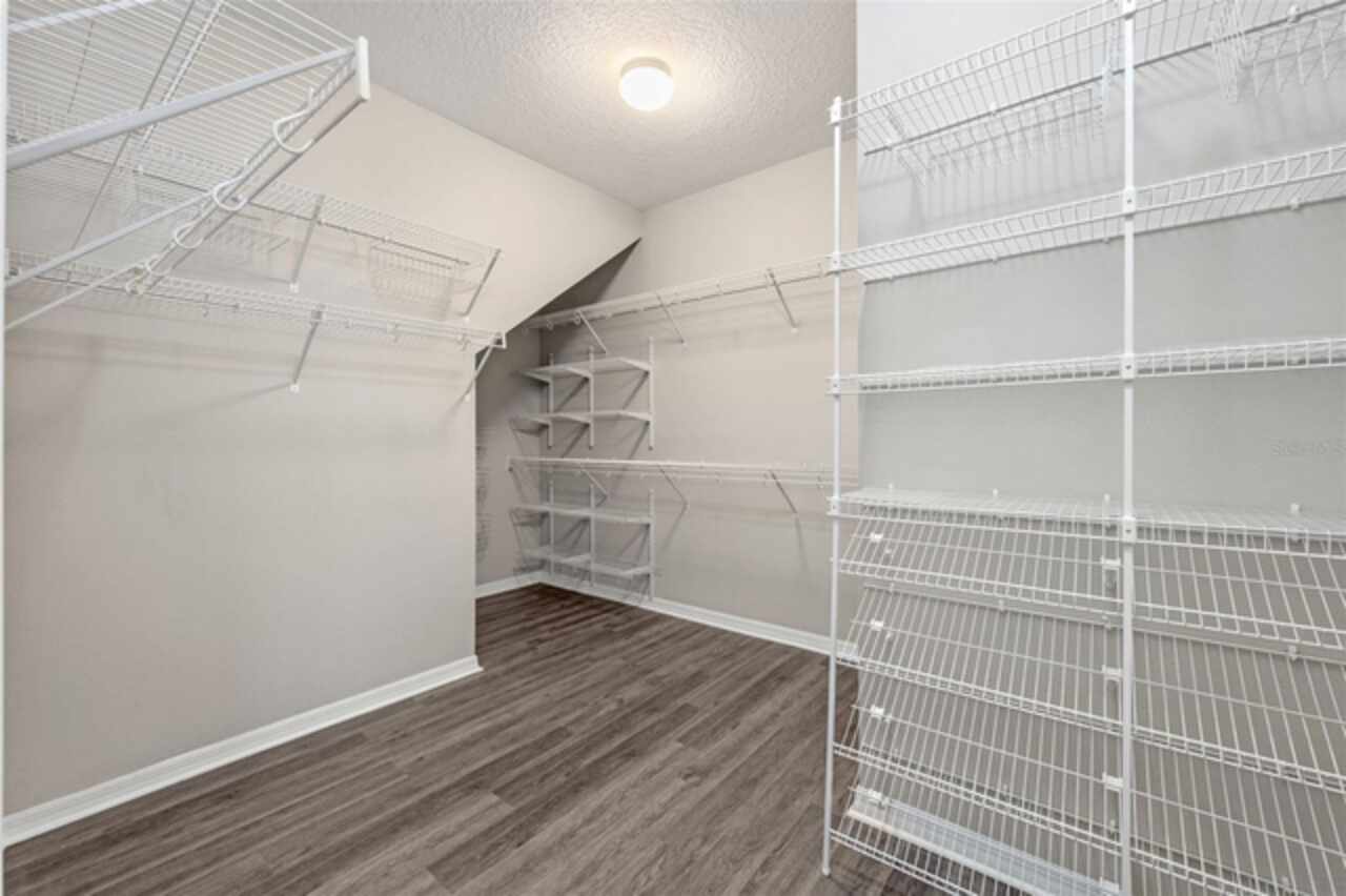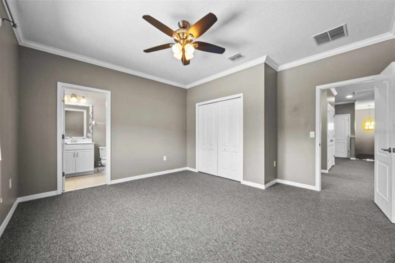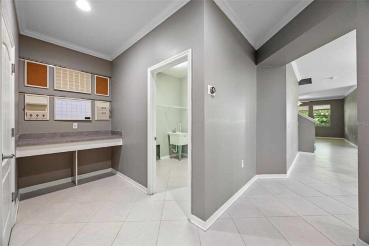 Built-in Features, Ceiling Fans(s), Crown Molding, Eat-in Kitchen, High Ceilings, Kitchen/Family Room Combo, Open Floorplan, Primary Bedroom Main Floor, Solid Wood Cabinets, Thermostat, Walk-In Closet(s)