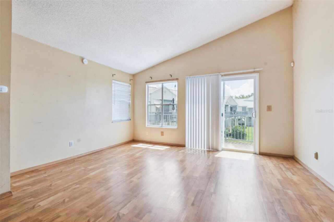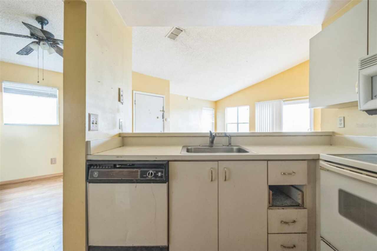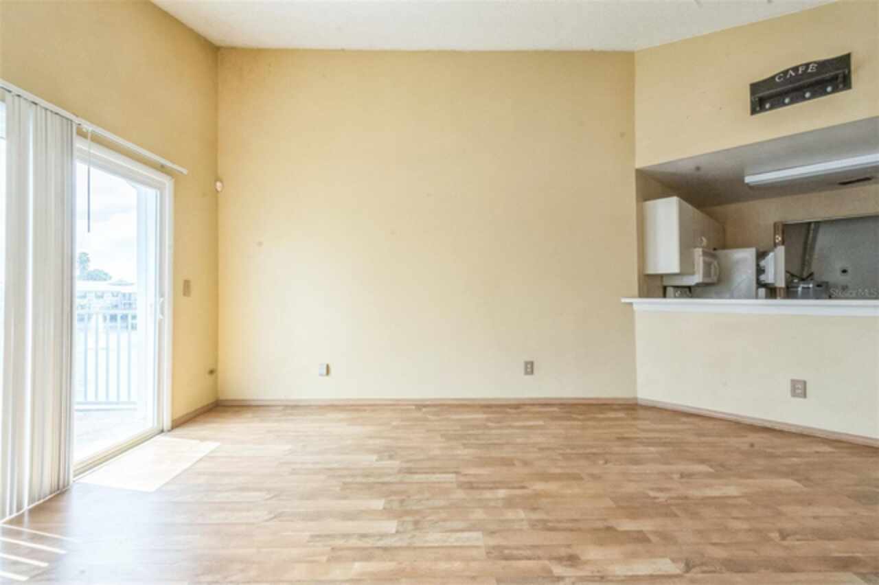 Tucked away in the Dockside Condo community, this second-floor unit offers a functional layout with an open-concept living and dining area, plus a private balcony that overlooks a peaceful water view. The kitchen includes a breakfast bar and connects easily to the main living space, making it perfect for casual meals or entertaining. Vaulted ceilings add a sense of openness, while large windows allow in plenty of natural light. The community itself features gated entry, a pool, and tennis courts, all surrounded by mature trees and serene landscaping. With convenient access to major highways, the airport, and plenty of dining and shopping options, this property offers great potential in a central location.