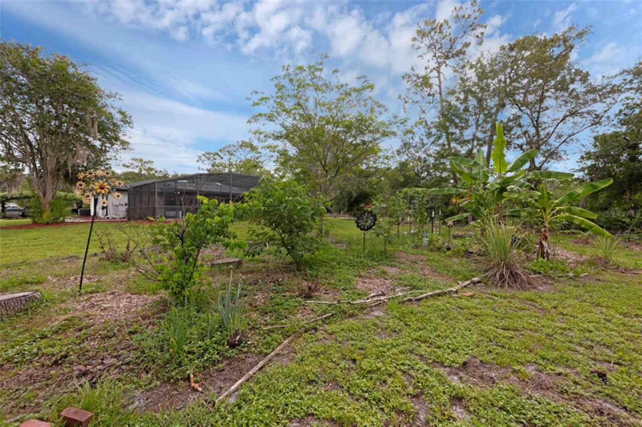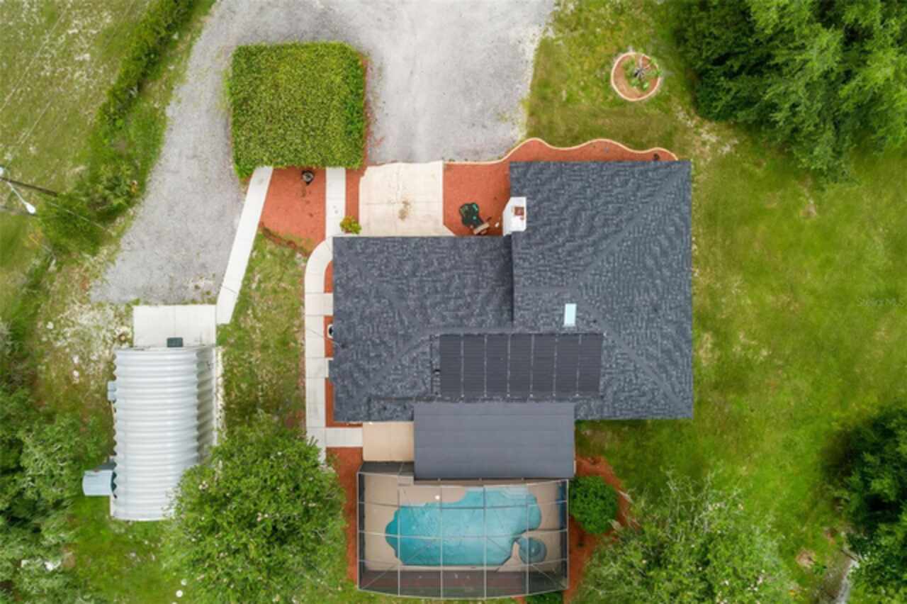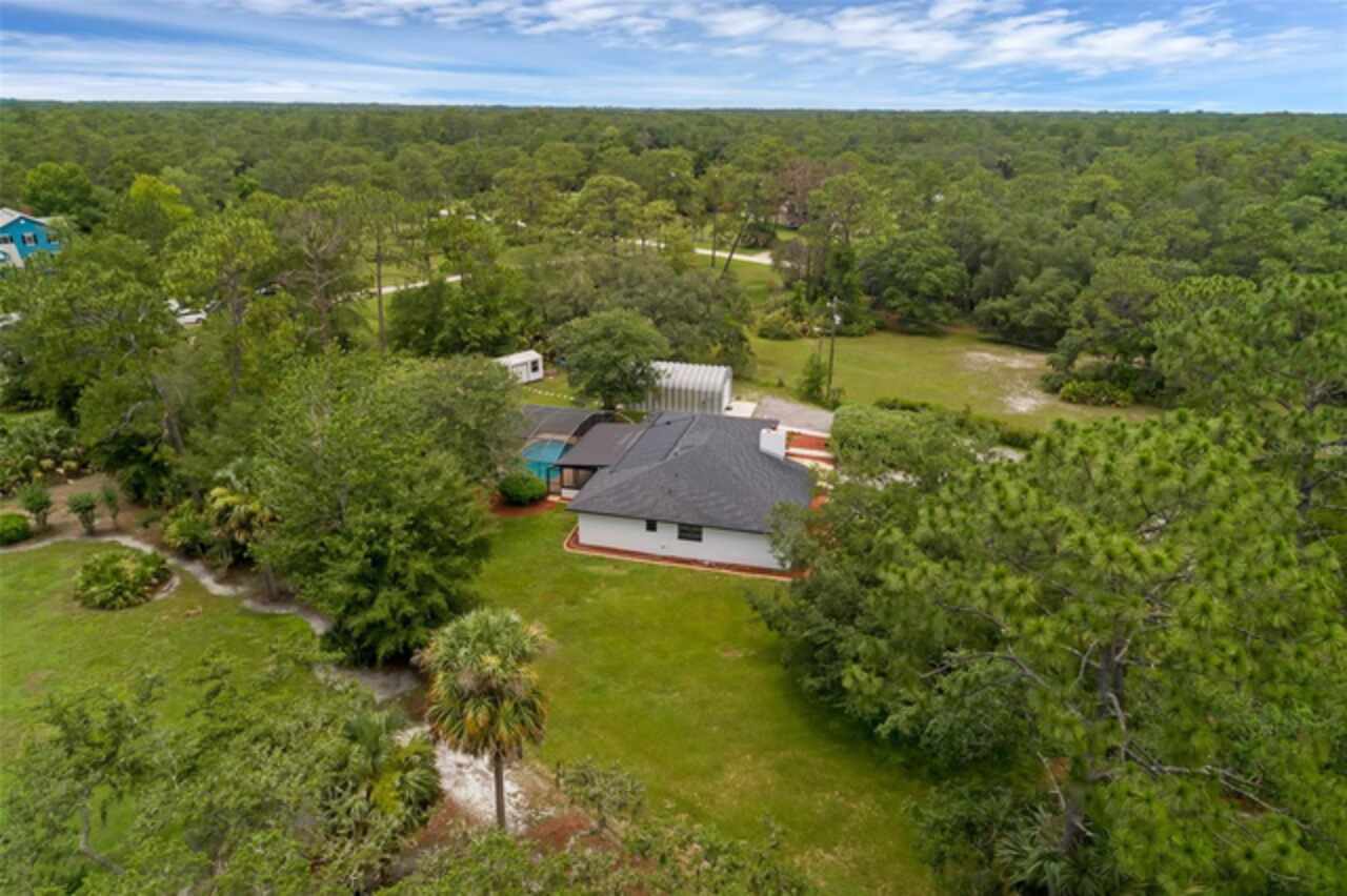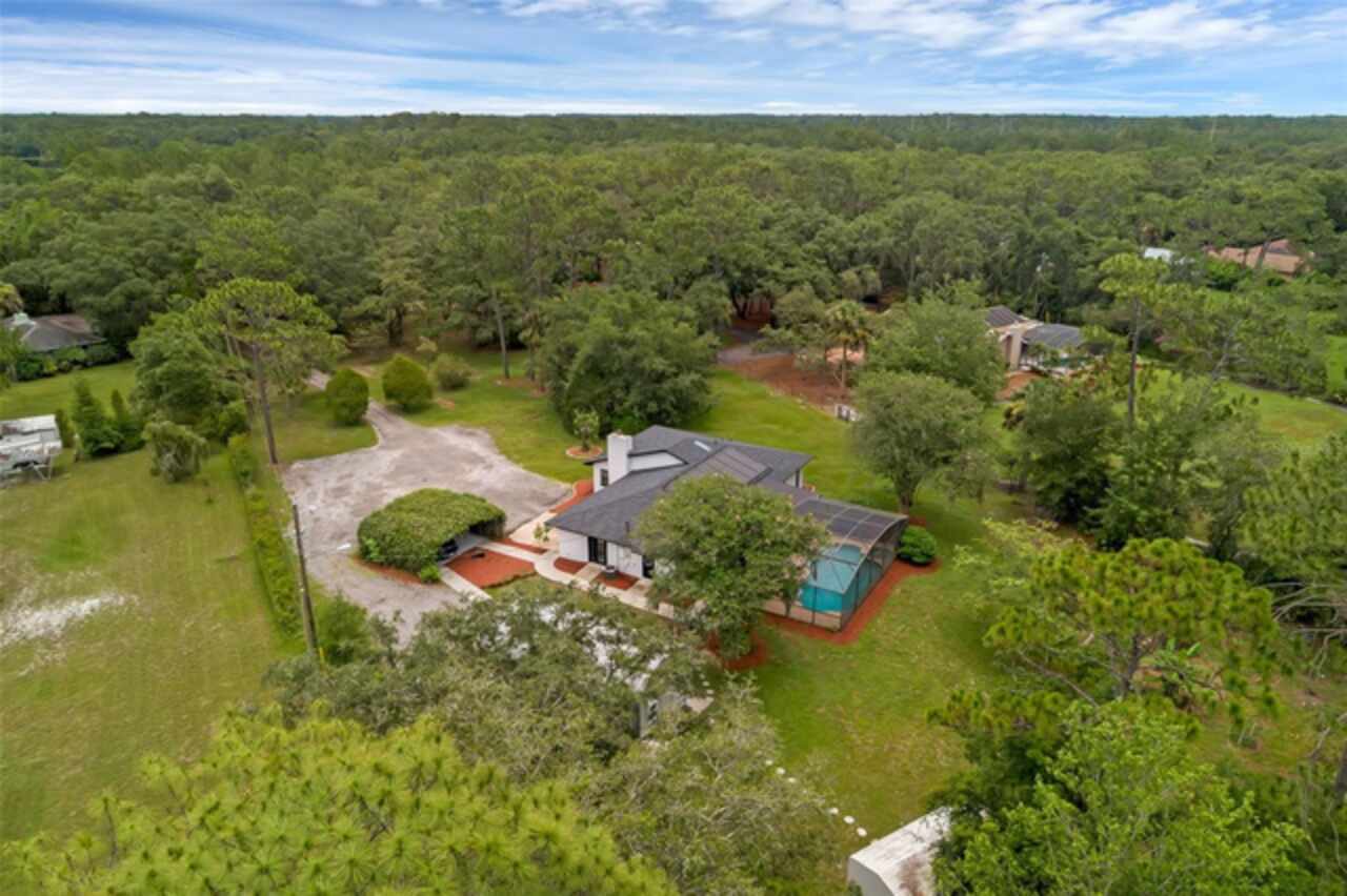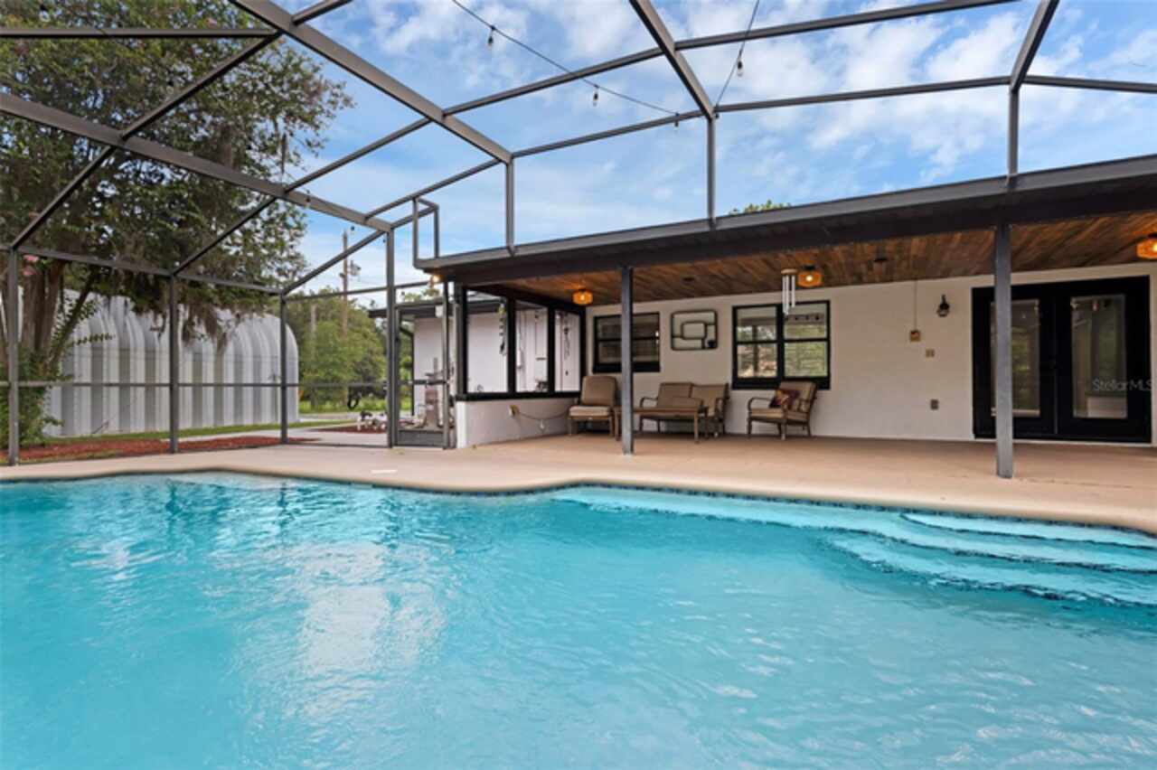 PRICE IMPROVEMENT! Escape to your private 2-acre paradise—where modern updates, lush landscaping, and total freedom come together. Enjoy the best of both worlds—just minutes from UCF and downtown Orlando, and only about 45 minutes from world-famous theme parks and Florida’s beautiful beaches with NO HOA and agricultural/residential zoning that allows for chickens, livestock, RVs, and more. Inside, this beautifully renovated 4-bed, 3-bath, 2, 240 sq ft home showcases knockdown ceilings, crown molding, plantation shutters, upgraded lighting, a cozy wood-burning fireplace, and durable oversized tile and wood laminate flooring throughout. The chef’s kitchen is equally impressive, featuring a 36" Samsung WiFi-enabled gas range, Thermador double oven, oversized built-in Thermador refrigerator, and sleek granite countertops—designed for both everyday living and entertaining. Major essential updates include a new roof (2023), spray foam insulated attic, solar pool heater (2023), a deep well (2019), and remodeled kitchen and bathrooms (2020). The screened-in pool and spa—heated by 7 solar panels—are enhanced by a newly stained and sealed wood ceiling, creating a perfect year-round retreat. Surrounding the home is a flourishing food forest featuring mango, starfruit, jujube, lime, guava, avocado, mulberry, Barbados cherry, and a dozen banana varieties. A separate in-law suite with its own private entrance, full bath, and wheelchair access offers incredible versatility—ideal for multigenerational living, hosting guests, creating a private home office, or generating rental income. Additional highlights include a 2-car carport with lighting and electric, a 15’x30’ steel garage with a 2-ton A/C unit, and a powered 9’x19’ garden shed ideal for hobbies or homesteading. This one-of-a-kind property delivers privacy, versatility, and a lifestyle you won’t find in cookie-cutter communities.
