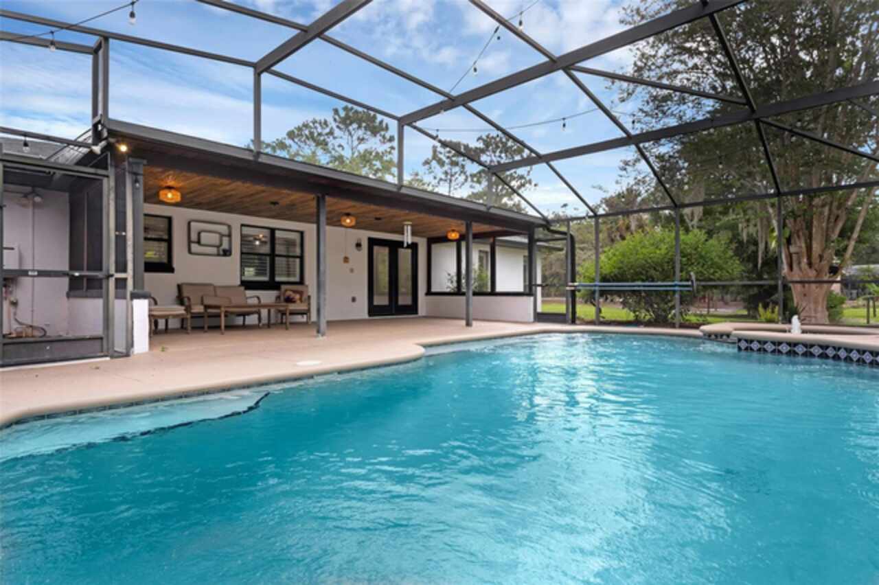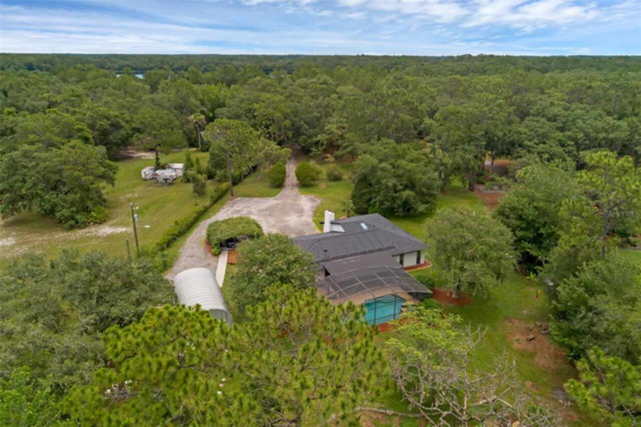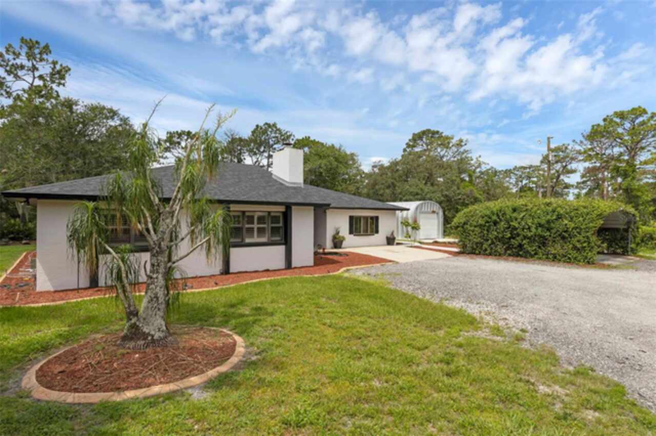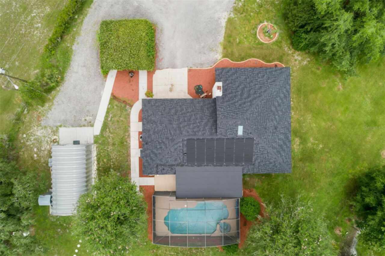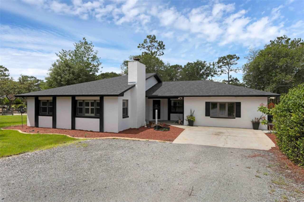 PRICE IMPROVEMENT! Escape to your private 2-acre paradise—where modern updates, lush landscaping, and total freedom come together. Enjoy the best of both worlds—just minutes from UCF and downtown Orlando, and only about 45 minutes from world-famous theme parks and Florida’s beautiful beaches with NO HOA and agricultural/residential zoning that allows for chickens, livestock, RVs, and more. Inside, this beautifully renovated 4-bed, 3-bath, 2, 240 sq ft home showcases knockdown ceilings, crown molding, plantation shutters, upgraded lighting, a cozy wood-burning fireplace, and durable oversized tile and wood laminate flooring throughout. The chef’s kitchen is equally impressive, featuring a 36" Samsung WiFi-enabled gas range, Thermador double oven, oversized built-in Thermador refrigerator, and sleek granite countertops—designed for both everyday living and entertaining. Major essential updates include a new roof (2023), spray foam insulated attic, solar pool heater (2023), a deep well (2019), and remodeled kitchen and bathrooms (2020). The screened-in pool and spa—heated by 7 solar panels—are enhanced by a newly stained and sealed wood ceiling, creating a perfect year-round retreat. Surrounding the home is a flourishing food forest featuring mango, starfruit, jujube, lime, guava, avocado, mulberry, Barbados cherry, and a dozen banana varieties. A separate in-law suite with its own private entrance, full bath, and wheelchair access offers incredible versatility—ideal for multigenerational living, hosting guests, creating a private home office, or generating rental income. Additional highlights include a 2-car carport with lighting and electric, a 15’x30’ steel garage with a 2-ton A/C unit, and a powered 9’x19’ garden shed ideal for hobbies or homesteading. This one-of-a-kind property delivers privacy, versatility, and a lifestyle you won’t find in cookie-cutter communities.