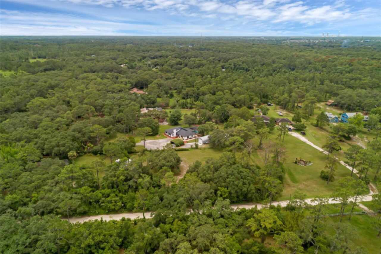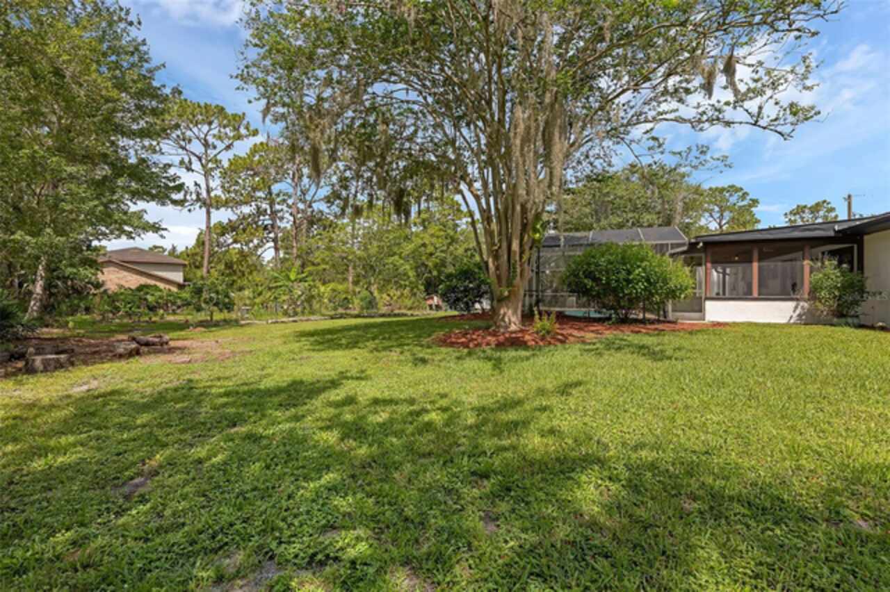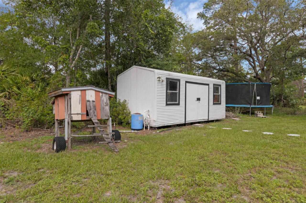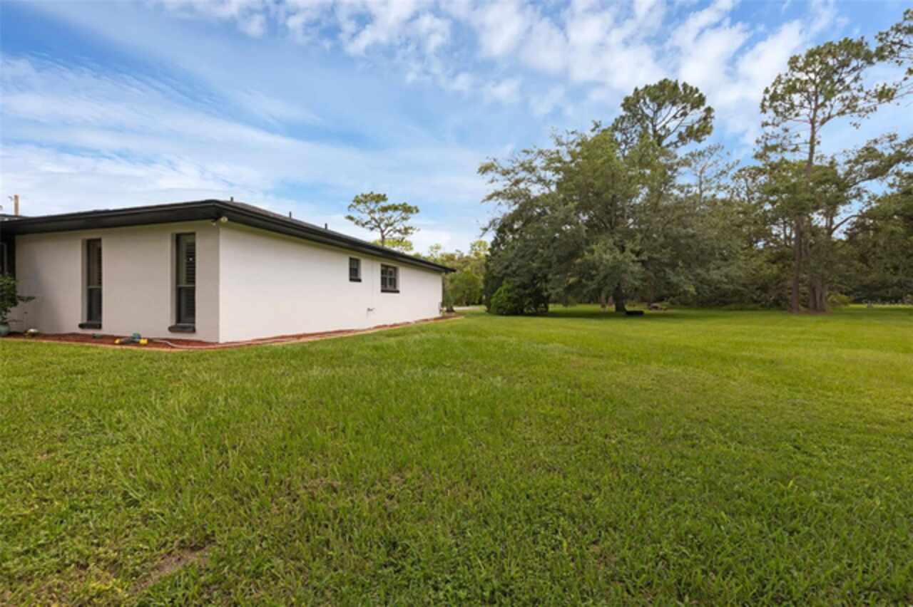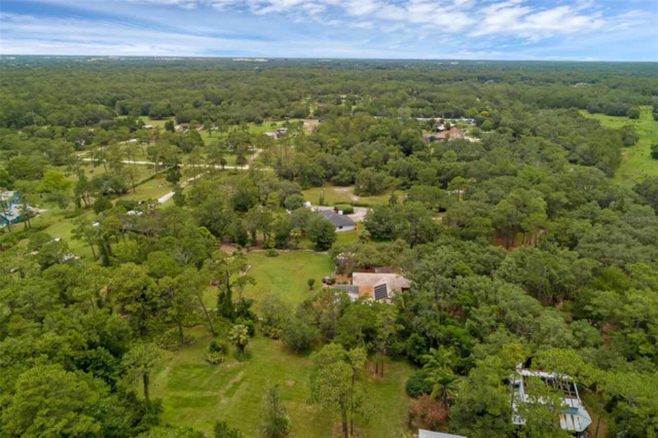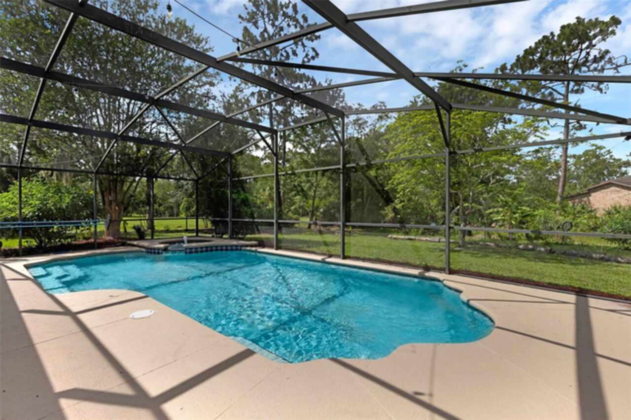PRICE IMPROVEMENT! Escape to your private 2-acre paradise—where modern updates, lush landscaping, and total freedom come together. Enjoy the best of both worlds—just minutes from UCF and downtown Orlando, and only about 45 minutes from world-famous theme parks and Florida’s beautiful beaches with NO HOA and agricultural/residential zoning that allows for chickens, livestock, RVs, and more. Inside, this beautifully renovated 4-bed, 3-bath, 2, 240 sq ft home showcases knockdown ceilings, crown molding, plantation shutters, upgraded lighting, a cozy wood-burning fireplace, and durable oversized tile and wood laminate flooring throughout. The chef’s kitchen is equally impressive, featuring a 36" Samsung WiFi-enabled gas range, Thermador double oven, oversized built-in Thermador refrigerator, and sleek granite countertops—designed for both everyday living and entertaining. Major essential updates include a new roof (2023), spray foam insulated attic, solar pool heater (2023), a deep well (2019), and remodeled kitchen and bathrooms (2020). The screened-in pool and spa—heated by 7 solar panels—are enhanced by a newly stained and sealed wood ceiling, creating a perfect year-round retreat. Surrounding the home is a flourishing food forest featuring mango, starfruit, jujube, lime, guava, avocado, mulberry, Barbados cherry, and a dozen banana varieties. A separate in-law suite with its own private entrance, full bath, and wheelchair access offers incredible versatility—ideal for multigenerational living, hosting guests, creating a private home office, or generating rental income. Additional highlights include a 2-car carport with lighting and electric, a 15’x30’ steel garage with a 2-ton A/C unit, and a powered 9’x19’ garden shed ideal for hobbies or homesteading. This one-of-a-kind property delivers privacy, versatility, and a lifestyle you won’t find in cookie-cutter communities.
