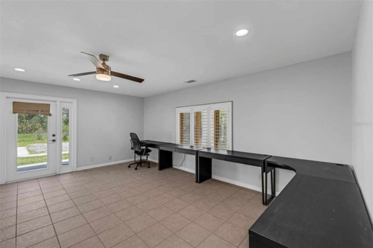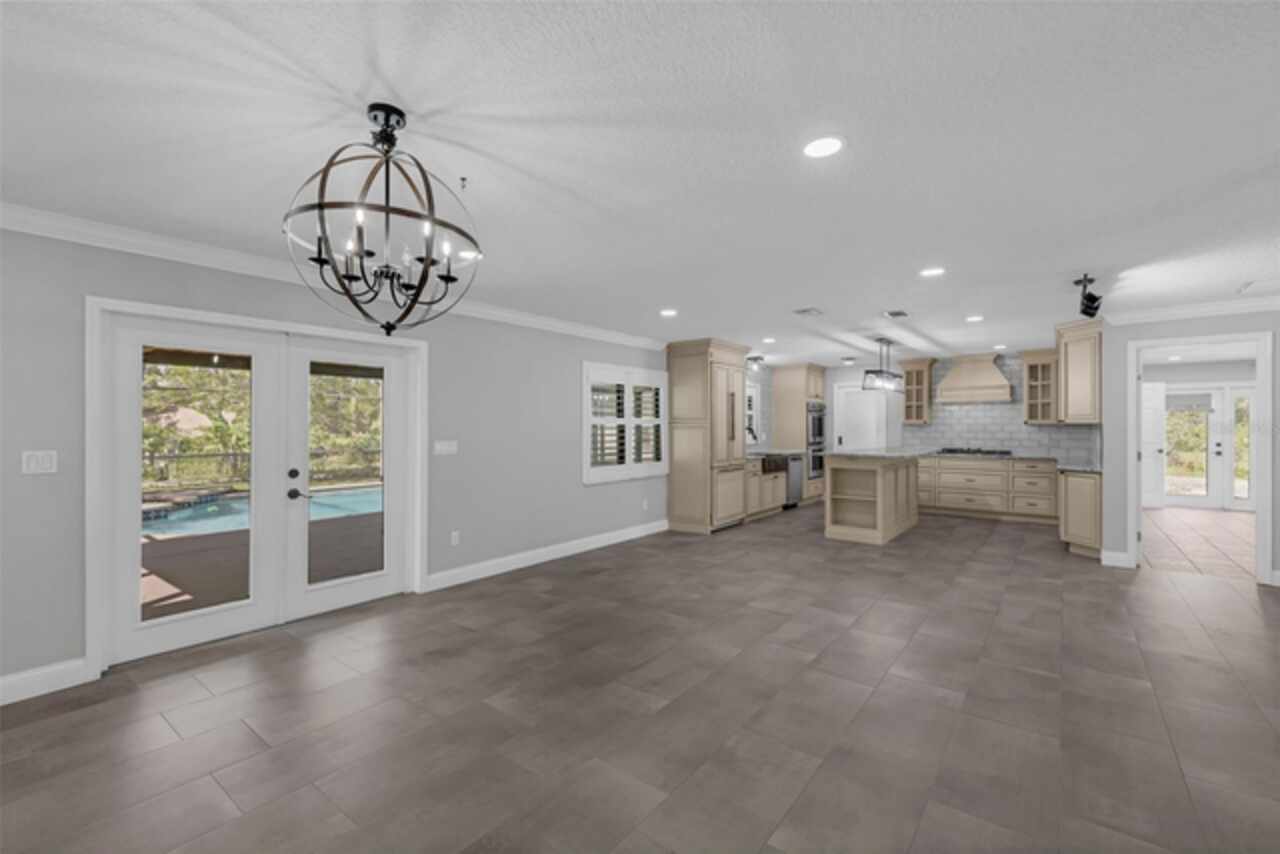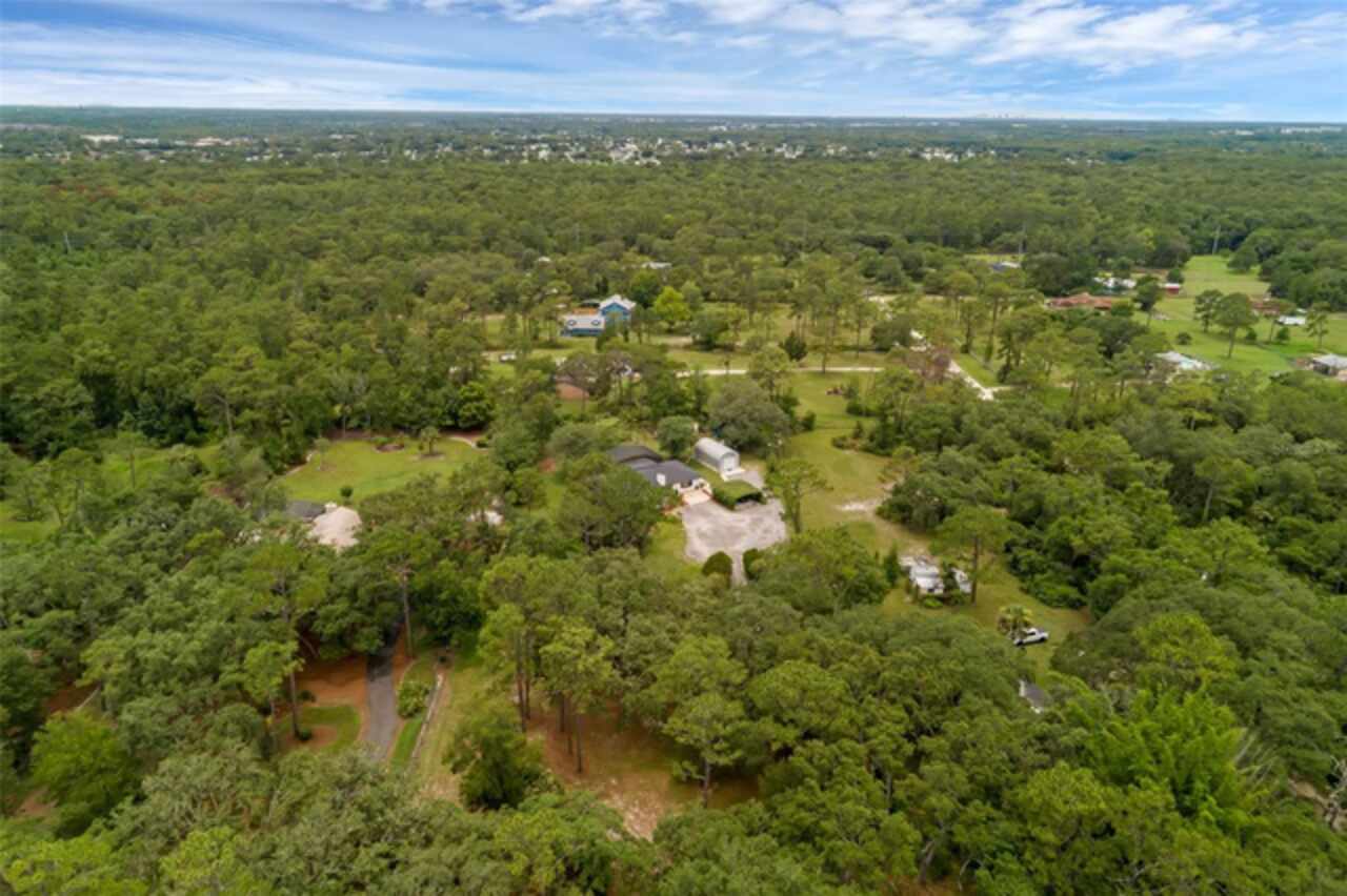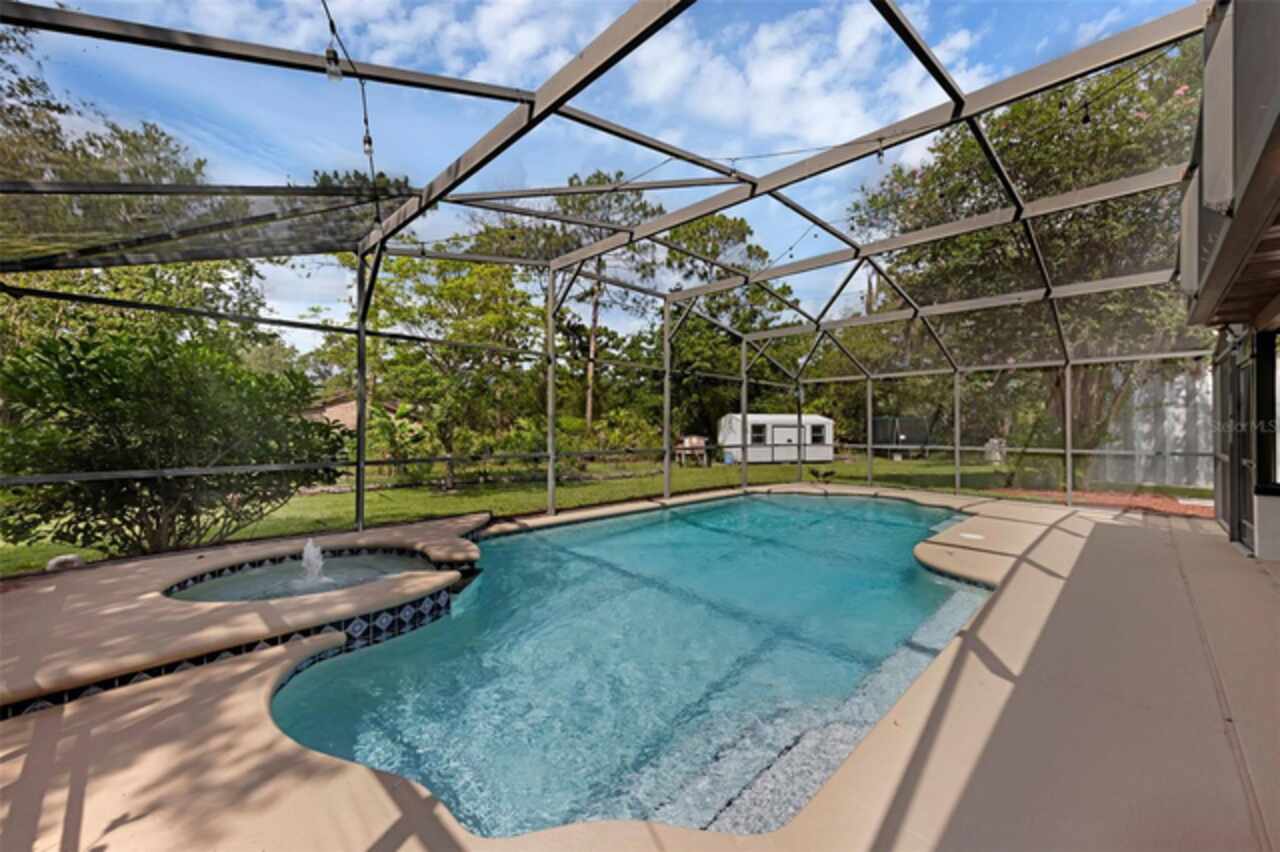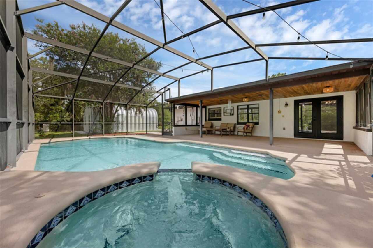PRICE IMPROVEMENT! Escape to your private 2-acre paradise—where modern updates, lush landscaping, and total freedom come together. Enjoy the best of both worlds—just minutes from UCF and downtown Orlando, and only about 45 minutes from world-famous theme parks and Florida’s beautiful beaches with NO HOA and agricultural/residential zoning that allows for chickens, livestock, RVs, and more. Inside, this beautifully renovated 4-bed, 3-bath, 2, 240 sq ft home showcases knockdown ceilings, crown molding, plantation shutters, upgraded lighting, a cozy wood-burning fireplace, and durable oversized tile and wood laminate flooring throughout. The chef’s kitchen is equally impressive, featuring a 36" Samsung WiFi-enabled gas range, Thermador double oven, oversized built-in Thermador refrigerator, and sleek granite countertops—designed for both everyday living and entertaining. Major essential updates include a new roof (2023), spray foam insulated attic, solar pool heater (2023), a deep well (2019), and remodeled kitchen and bathrooms (2020). The screened-in pool and spa—heated by 7 solar panels—are enhanced by a newly stained and sealed wood ceiling, creating a perfect year-round retreat. Surrounding the home is a flourishing food forest featuring mango, starfruit, jujube, lime, guava, avocado, mulberry, Barbados cherry, and a dozen banana varieties. A separate in-law suite with its own private entrance, full bath, and wheelchair access offers incredible versatility—ideal for multigenerational living, hosting guests, creating a private home office, or generating rental income. Additional highlights include a 2-car carport with lighting and electric, a 15’x30’ steel garage with a 2-ton A/C unit, and a powered 9’x19’ garden shed ideal for hobbies or homesteading. This one-of-a-kind property delivers privacy, versatility, and a lifestyle you won’t find in cookie-cutter communities.