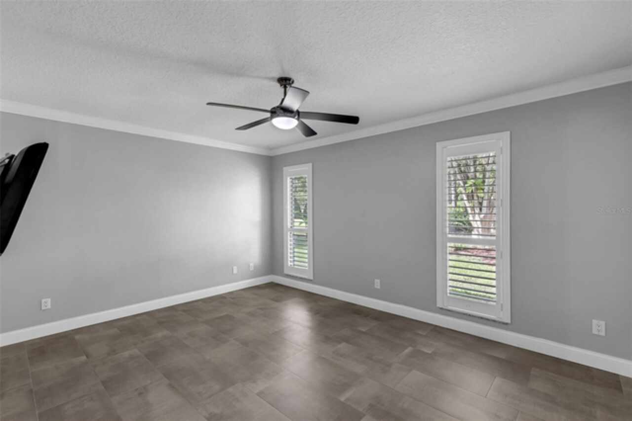 Ceiling Fans(s), Primary Bedroom Main Floor, Solid Surface Counters, Split Bedroom, Window Treatments