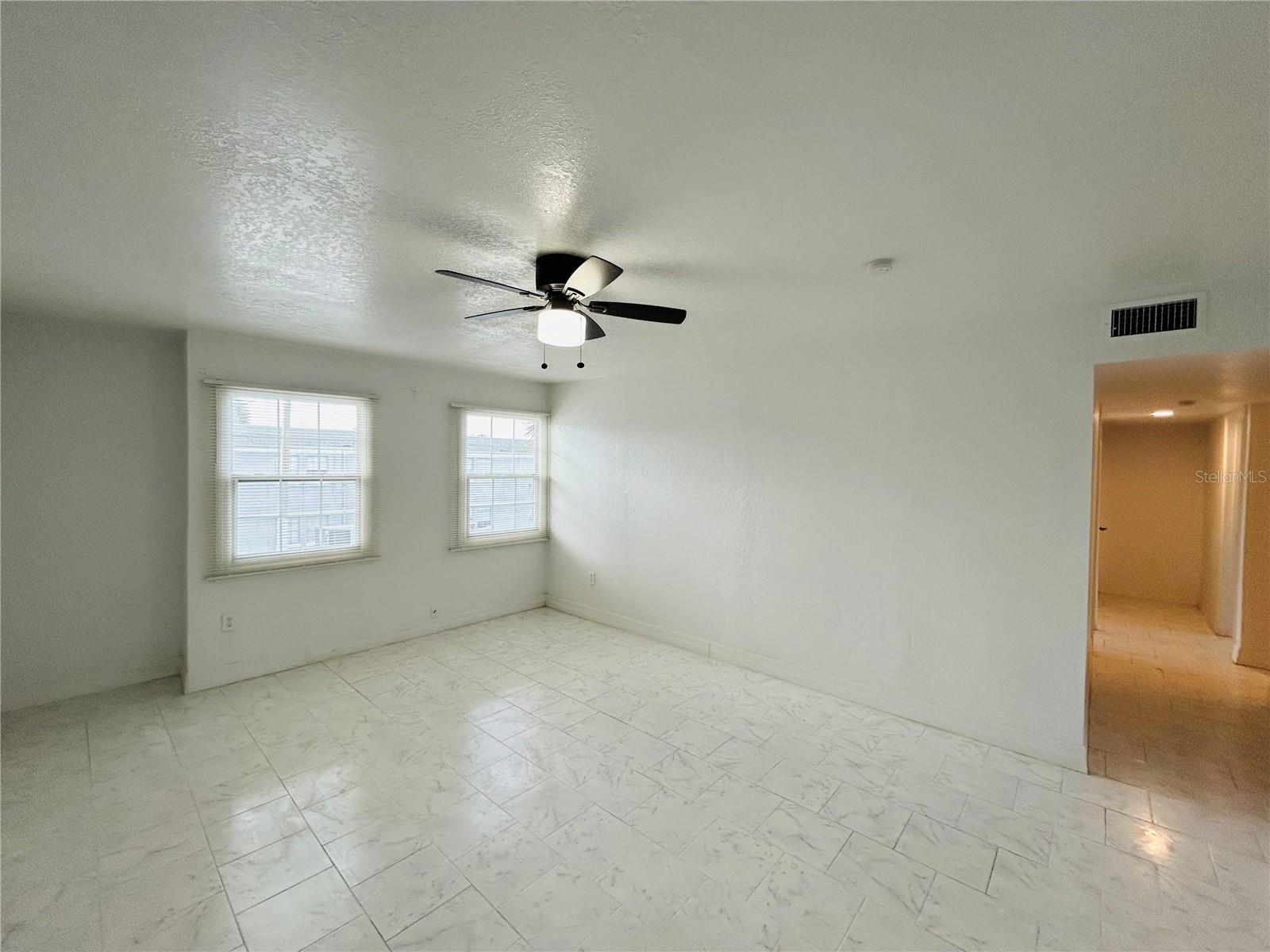 Ceiling Fans(s), Solid Surface Counters, Solid Wood Cabinets, Stone Counters, Thermostat, Walk-In Closet(s), Window Treatments