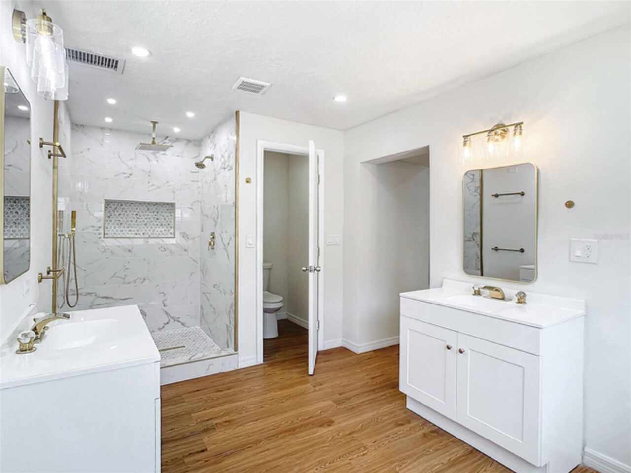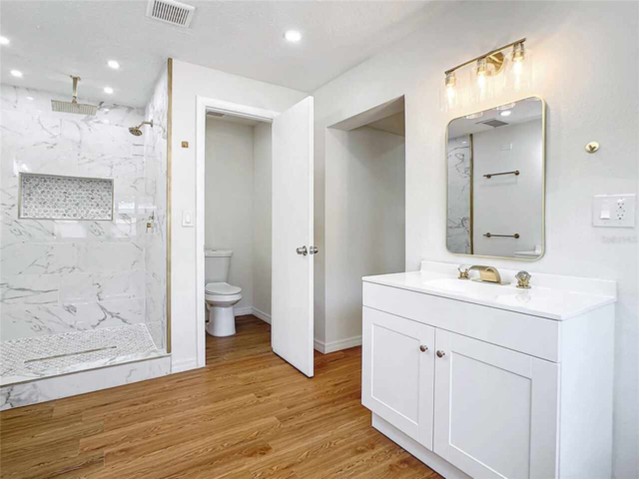 Renovated residence in the desirable SODO and Hourglass District. Situated on a 1/4-acre lot in South Downtown Orlando, this 4-bedroom, 2.5-bath single-family home has been fully updated with a brand-new roof, windows, laminate flooring, luxury kitchen and bathroom cabinets, granite countertops, stainless steel appliances, a new AC unit, an updated electrical panel, water heater, and plumbing. The home features a split-bedroom layout offering privacy for the owner, with a spacious primary suite that includes double closets, dual vanities, and a beautifully tiled shower. A private door in the primary bathroom leads to the side yard, utility area, and backyard. The second bedroom includes a convenient half bath, perfect for guests or in-laws. The living room features a cozy wood-burning fireplace and ample space for a large entertainment setup. Additional features include ample closet and storage space, an exterior utility room, and a large front yard with private parking for more than four vehicles. The oversized backyard is ideal for a future pool, storing a boat or RV, or simply enjoying afternoons on the rear patio, which is also equipped with an outdoor outlet ready for a jacuzzi or hot tub. Located minutes from Downtown Orlando, Orlando International Airport, hospitals, supermarkets, dining, schools, and major highways, including Interstate 4, HWY 417, HWY 408, and Semoran Blvd. This property is zoned for Boone High School and sits in a great school district. With no HOA, no CDD, low property taxes, and not in a flood zone, this move-in-ready home is a rare find—schedule your showing today. One or more photos have been virtually staged.