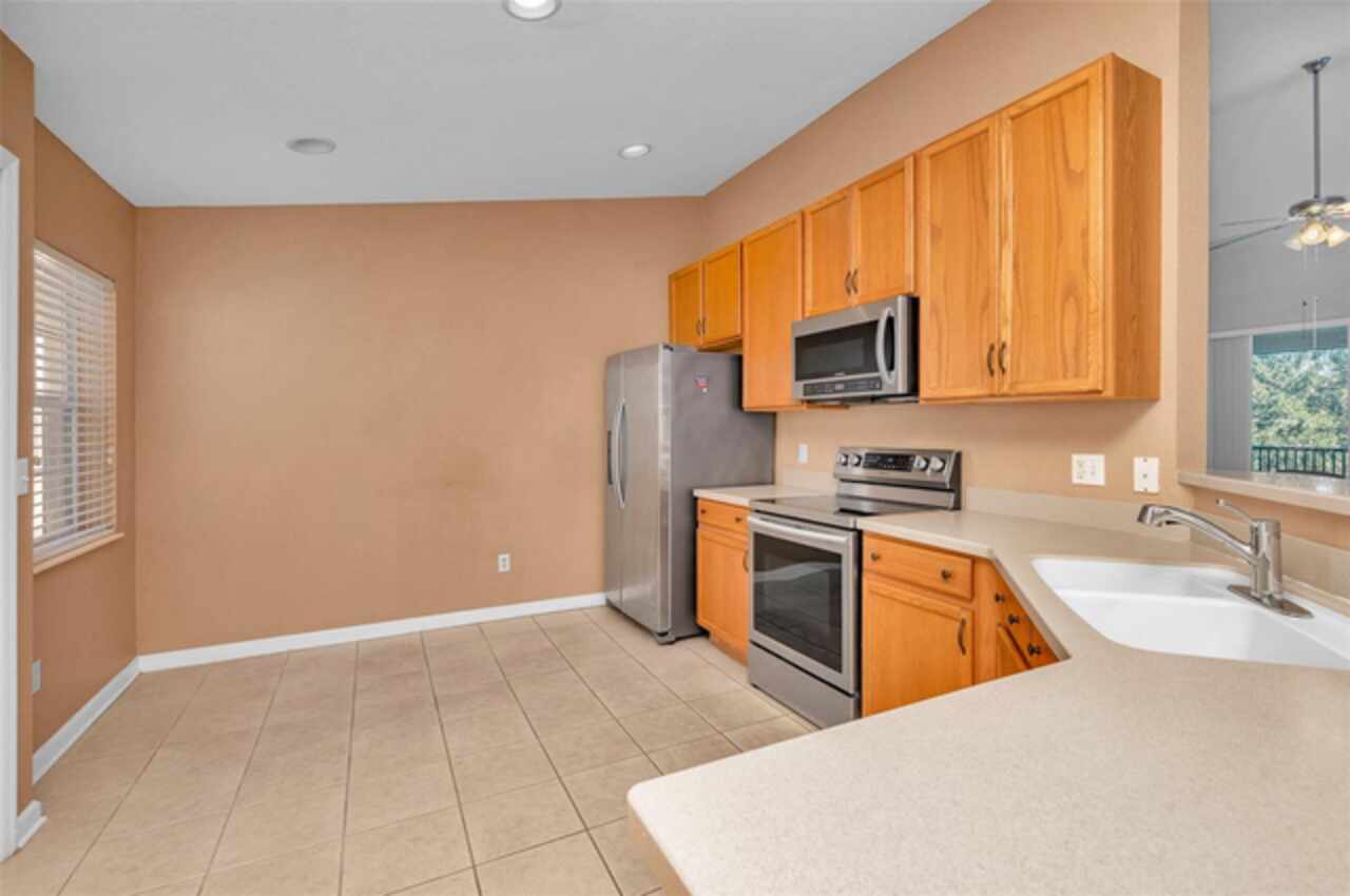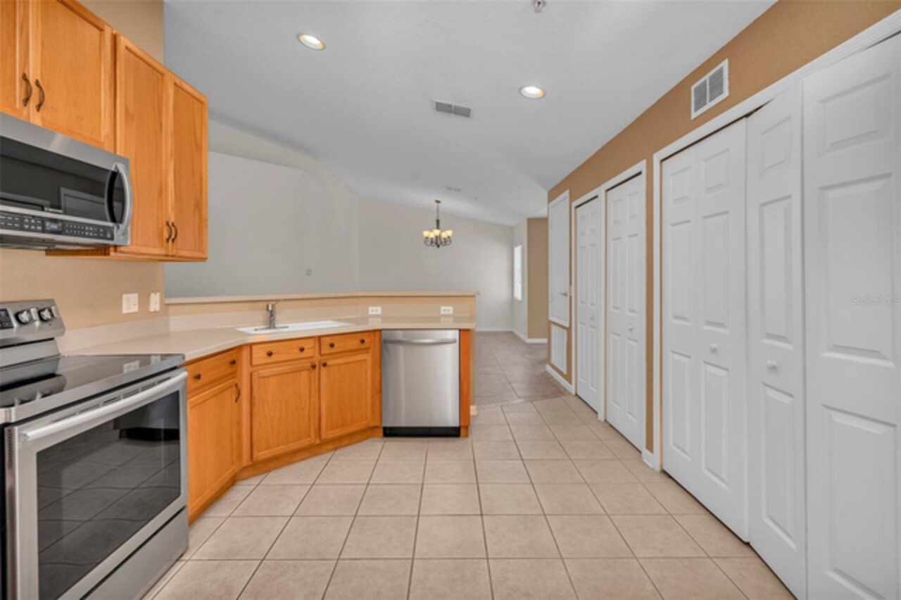 This beautifully kept 3-bedroom, 2-bath condo in the desirable Carriage Homes community is just three doors away from the resort-style clubhouse pool and amenities. It offers a wonderful combination of comfort, convenience, and peaceful living. Upon entering, you'll be welcomed by an open, airy floor plan with high ceilings that create a sense of space and brightness. Large windows throughout allow natural light in, creating an inviting atmosphere. The split-bedroom layout provides privacy for everyone, with the spacious primary bedroom featuring large windows that let in plenty of sunshine and showcase peaceful views of the tree-lined pond, these views can also be enjoyed from the screened and covered balcony. The adjoining bathroom includes a generous walk-in closet and double vanity sinks for added comfort. The main living areas, including the primary bedroom, are beautifully tiled in neutral colors, offering both elegance and easy maintenance. The kitchen is roomy and functional, with real wood cabinetry, ample counter space, and a large breakfast bar that opens into the formal dining area and Great Room, perfect for entertaining. Vaulted ceilings throughout the condo further enhance the sense of openness, making the home feel even more spacious. The one-car garage offers additional storage or a place to park your car, adding convenience to everyday life. Step outside, and just a few steps from the community's resort-style amenities. The clubhouse, expansive pool, and fully equipped fitness center, offering plenty of options for relaxation and recreation. The gated entrance adds extra peace of mind, ensuring security and privacy. This home is ideally located just minutes from shopping, dining, and major highways, Orlando, making it the perfect spot for those seeking a balance of peaceful living and easy access to everything you need. The condo has been meticulously cared for by the current owners, who have kept the home smoke-free and pet-free. It’s in excellent, move-in-ready condition, waiting for your personal touch. Priced to sell, this condo offers fantastic value in a highly desirable community. Don't miss out—schedule your showing today!
