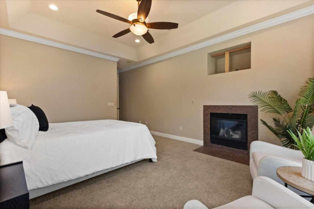 Ceiling Fans(s), Central Vaccum, Crown Molding, Eat-in Kitchen, High Ceilings, Kitchen/Family Room Combo, Open Floorplan, Primary Bedroom Main Floor, Split Bedroom, Stone Counters, Walk-In Closet(s)