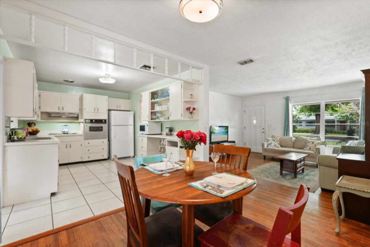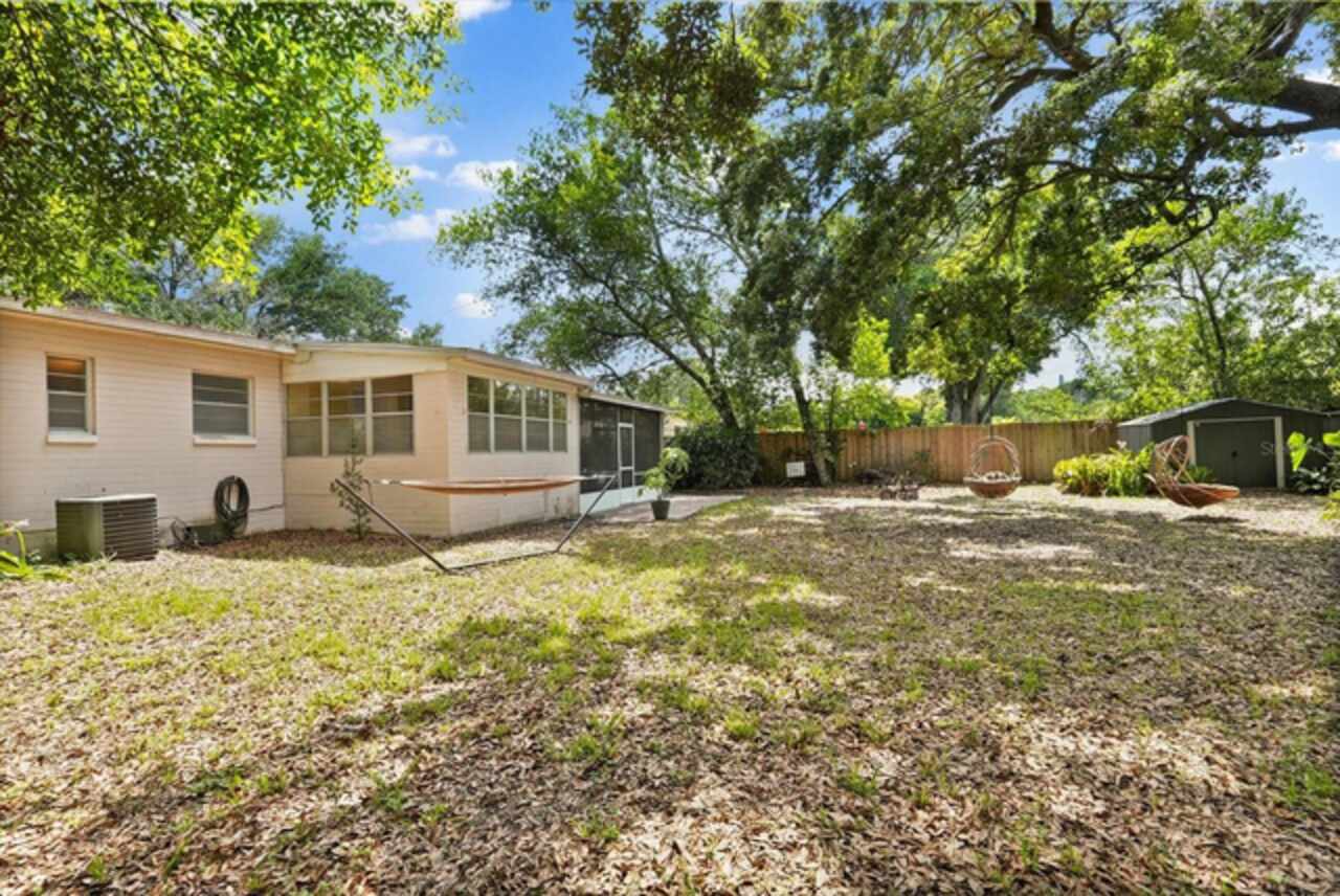 Under contract-accepting backup offers. Welcome to this charming Mid-Century Ranch-style home in the highly sought-after Lake Como neighborhood, just minutes from Downtown Orlando. Offering 3 bedrooms, 2 full bathrooms, and a spacious bonus room, this home combines comfort, character, and an unbeatable location. From the moment you arrive, you’ll notice the inviting curb appeal, complete with a welcoming covered front porch. Step inside to an open living and dining area with original hardwood floors that add warmth and character. The kitchen is centrally located with a window overlooking the bonus room and expansive backyard. The kitchen features wood cabinetry with architectural details such as glass front cabinets and a built-in desk area. Just off the kitchen, the light-filled bonus room offers endless flexibility—ideal for a home office, playroom, or creative studio. Step outside to a new screened in paver patio (2023), a perfect spot to unwind or entertain, surrounded by a shady backyard that offers ample room to play, garden, expand, or even add a pool. Inside the bedrooms share a hallway, with the primary suite located on the backside of the home with an attached bathroom with a walk-in shower. Two secondary bedrooms share a full hall bath with a tub/shower combo and linen closet. Additional highlights include a spacious laundry room off the carport with plenty of storage space, plus backyard storage sheds for all your lawn and garden needs. Bonus – The covered carport is perfect for bringing groceries in on a rainy summer day! Located in one of Orlando’s most desirable neighborhoods, you’ll enjoy easy access to the 408 and I-4, as well as close proximity to the vibrant amenities of the Hourglass District, Milk District, and Downtown Orlando. Plus, Lake Como K-8 is just down the street! Add your personal touches and make this your dream home.