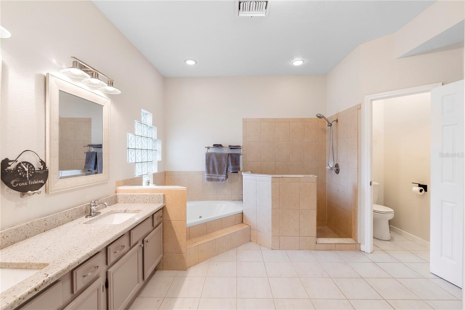 Ceiling Fans(s), Eat-in Kitchen, High Ceilings, Kitchen/Family Room Combo, Open Floorplan, Primary Bedroom Main Floor, Stone Counters, Thermostat, Walk-In Closet(s)