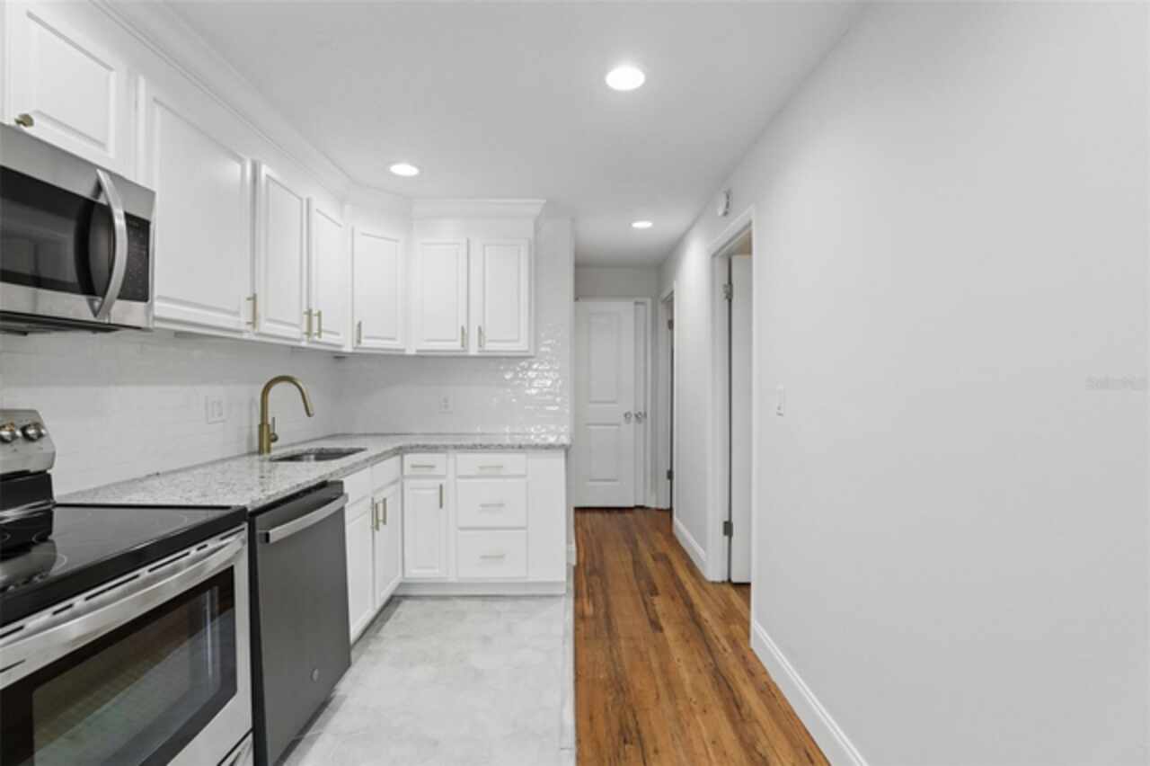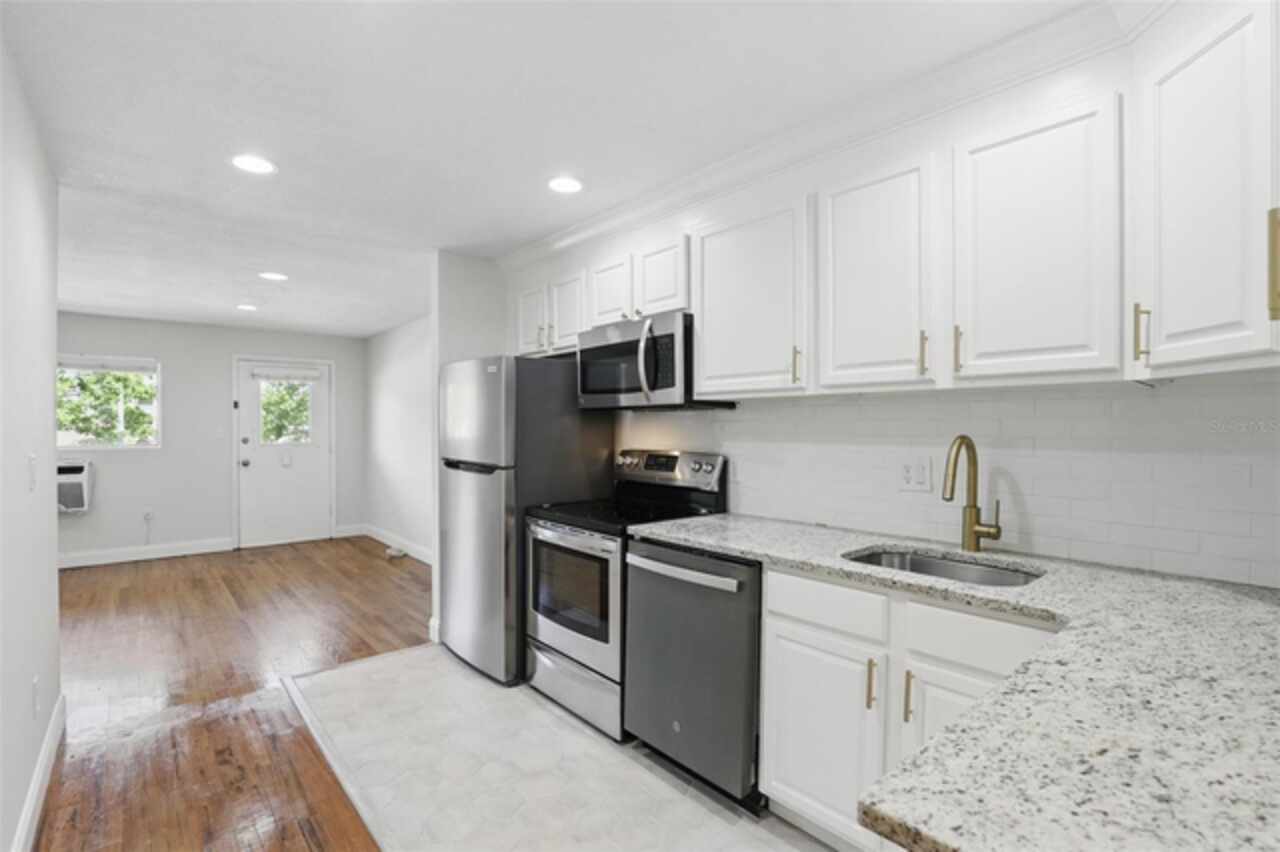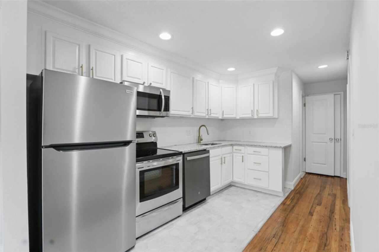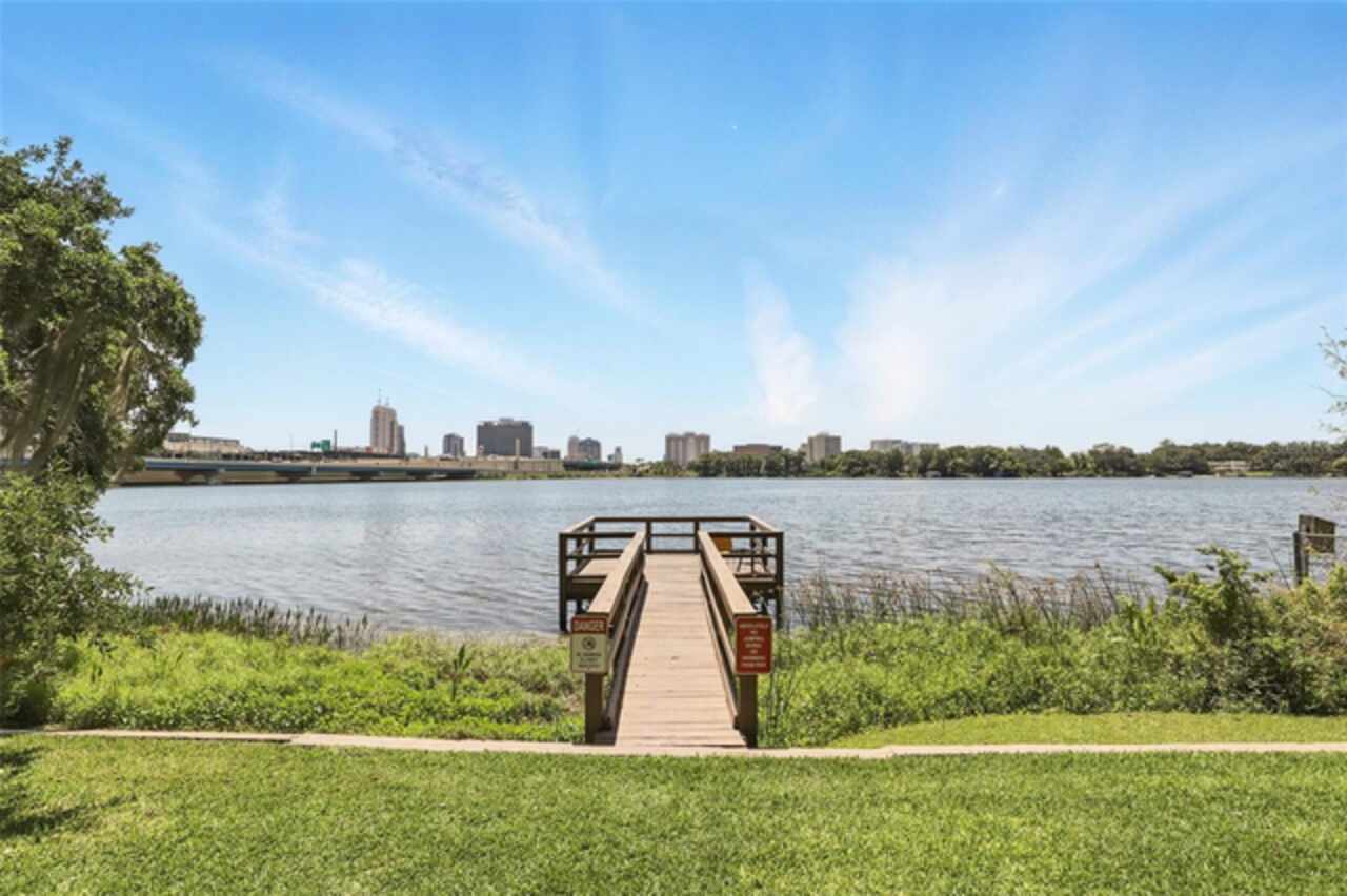 One or more photo(s) has been virtually staged. LOCATION, LOCATION, LOCATION! Here is your chance to own this incredibly charming 1 bedroom, 1 bathroom condo in the heart of College Park! One of the major bonuses of living here is you can enjoy lake life with a private community dock leading out to Lake Concord. You can be sure to enjoy picturesque sunrises, sunsets, and the downtown fireworks as well as paddleboarding or a picnic overlooking the lake. This unit is located on the second floor and was renovated in 2024. It boasts beautiful, refinished original hardwood floors, a stunning upgraded kitchen with granite countertops, new stainless-steel appliances, subway backsplash, new ceramic tile flooring, and new cabinets with upgraded hardware. The bathroom has also been redone with new wall backsplash, new vanity, plumbing fixtures, and new tub with shower. The kitchen/living room combo is perfect for entertaining. It also has a new 2024 wall unit AC and has been freshly painted as of April 2025. The condo also offers 3 closets- one in the primary bedroom, an extra-large walk-in closet adjacent to the primary, along with a separate linen/pantry closet for extra storage. Residents can enjoy a variety of amenities including a screened-in swimming pool, outdoor grill with picnic tables, a spacious laundry facility, and a private dock overlooking downtown Orlando. You are minutes away from fabulous restaurants, shops, and entertainment including the Kia Center to enjoy concerts, Solar Bears games, Orlando Magic games, Dr Phillips Performing Arts Center with many famous Broadway shows, Orlando City Soccer and so much more. You are also conveniently located minutes to I-4 so getting around town is super convenient. The grounds are very well maintained and the HOA includes both water and trash. The building construction is block and the exterior of all buildings were freshly painted in 2023 and a new elevator was installed in 2024. The unit also includes one designated parking space for the owner. Come view this today!