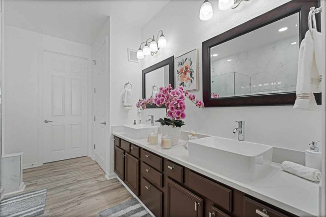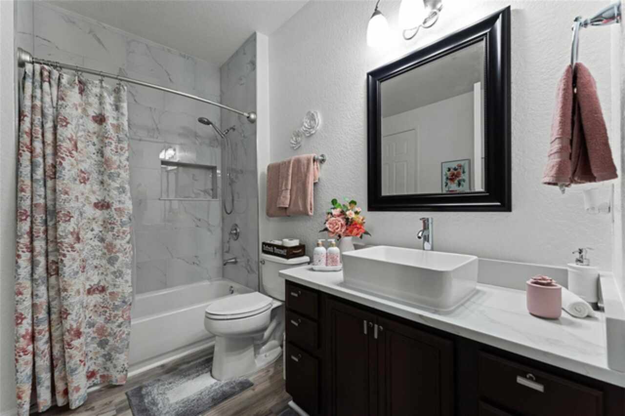 Immaculate 2/2 first-floor unit at coveted Stonebridge Reserve. 1962 sqft of spacious open floorplan. Newer 2022 installed water heater and air conditioner units. Completely painted and remodeled in 2023. Newly added features include luxury waterproof vinyl plank throughout the home, quartz bathroom countertops, ceramic vessel bathroom sinks, porcelain tile bathroom walls, new toilets, new bathtub, new light fixtures throughout the home, kitchen backsplash, wood pallet kitchen countertop, porcelain tiled balcony floor. Most of the appliances are also new/newer. 2024 washer and dryer, microwave and garbage disposal, 2022 range. Furniture is available for purchase if of interest, and it is also in like new condition. You're basically getting a brand-new unit. Centrally located, close to downtown Orlando, The Mall at Millenia, International Drive Outlet, IKEA, Valencia College, and all major restaurants and attractions. Universal Studios is just next door. Come see for yourself, you won't be disappointed! Schedule your showing today and make this your new home!