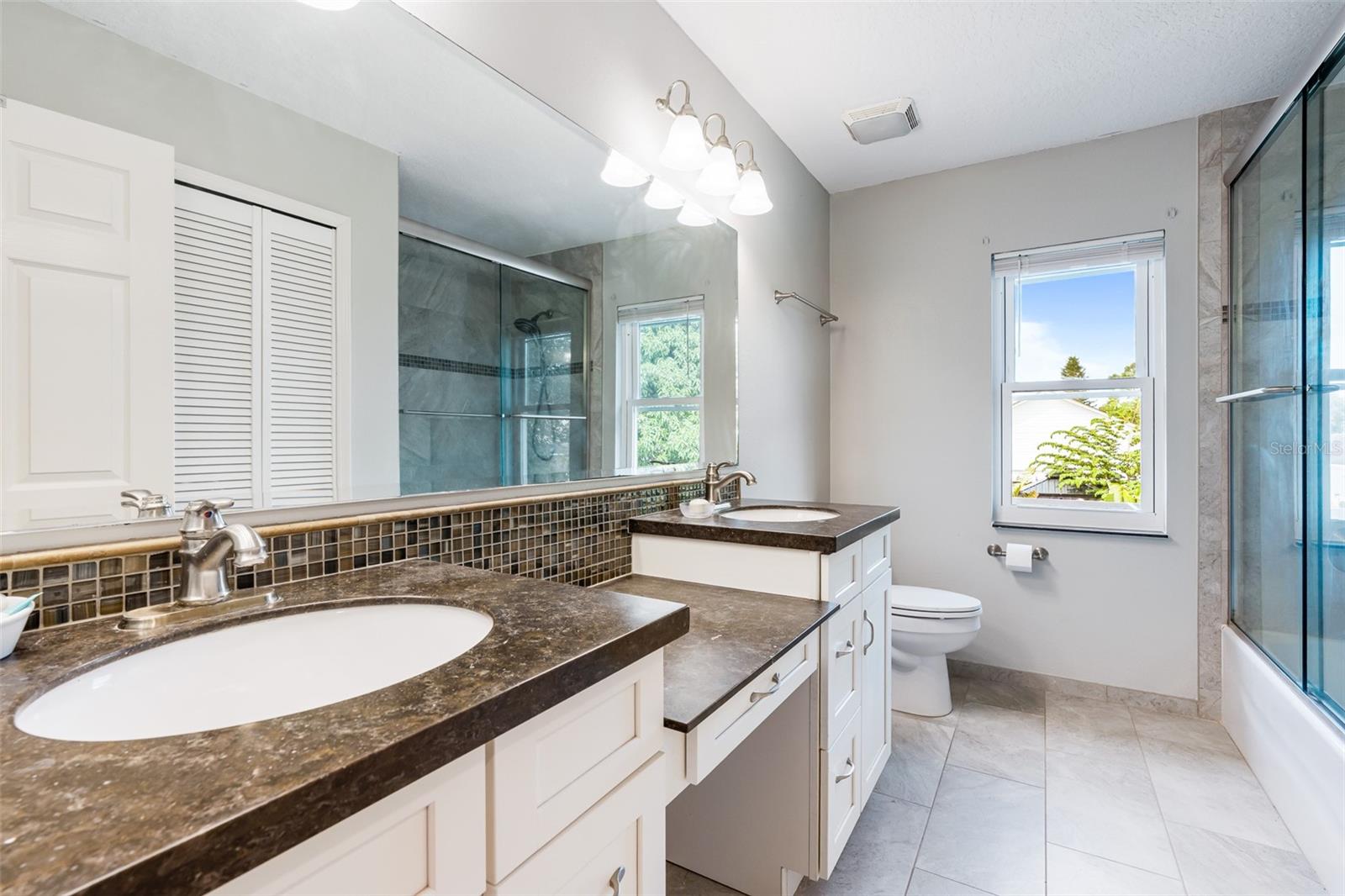 Beautiful 5-Bedroom Pool Home with 3-Car Garage in Eastwood! Welcome to this stunning 5-bedroom, 2.5-bathroom pool home with over 2, 700 sq ft of living space, located in the desirable Villages at Eastwood. This home features a 2018 roof, brand new A/C units (2024), and has been completely re-piped for peace of mind. As you enter the foyer, you’re greeted by a bright formal living room area filled with natural light. The kitchen has been upgraded and features modern finishes and opens seamlessly to the spacious family room, which leads to the covered pool deck via glass sliders—perfect for entertaining. Upstairs, the primary suite welcomes you with double-door entry, a large walk-in closet, and a beautifully appointed bathroom with dual vanities, a frameless glass shower, and a luxurious garden tub. Four additional bedrooms are located upstairs, split into two on each end, offering space and privacy. An updated full bathroom serves them, designed with both style and convenience. Step outside to your solar-heated screened-in pool, surrounded by a generous deck area and a fully fenced backyard with vinyl fencing—ideal for families and pets. Located in one of East Orlando’s most highly desirable communities, Eastwood offers top-rated schools and exceptional amenities including parks, playgrounds, sports courts, recreational facilities, and the added bonus of internet included in the HOA fees. This upgraded and well-maintained home is ready for its next family — schedule your private tour today!