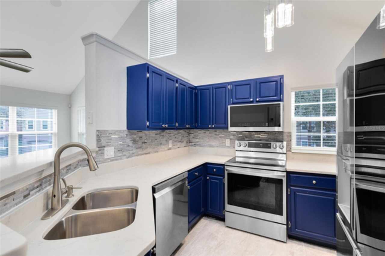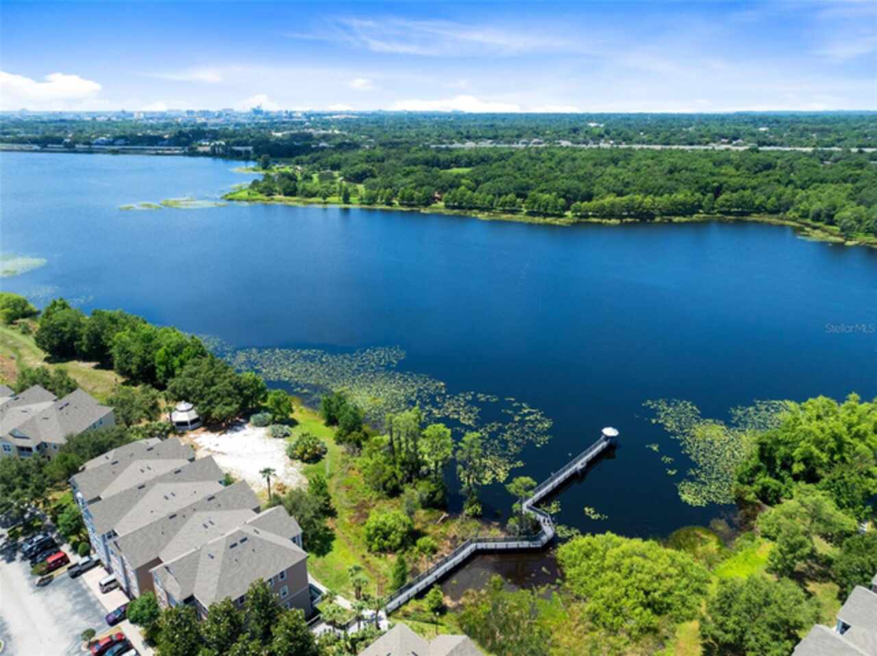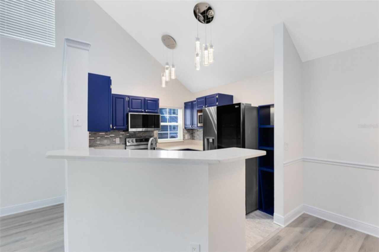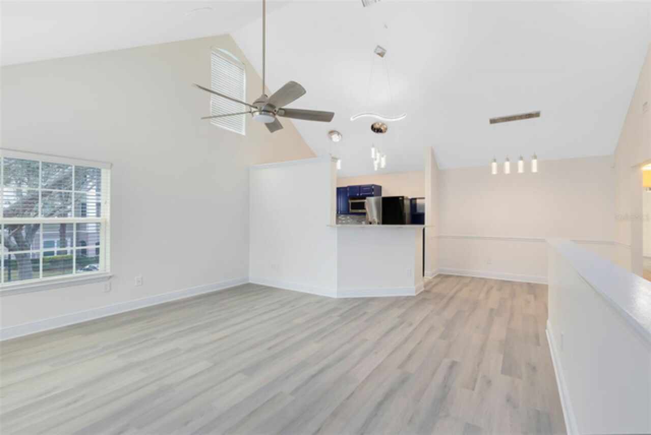 One or more photo(s) has been virtually staged. Major price reduction for a limited time! SELLER FINANCING options available! Welcome to this beautifully renovated 3 bedroom condo nestled within the sought-after Hamptons community. This second-floor walkup offers a private and serene living experience with elegant vaulted ceilings and no upstairs neighbors. The condo features all-new luxury vinyl plank and tile flooring and elegantly tall baseboards, creating a seamless blend of modern style and durability throughout the space. The kitchen boasts sleek quartz countertops, stainless steel LG appliances, cabinetry with a bold contemporary look, and a breakfast bar that opens to the spacious living area, perfect for both entertaining and casual dining. Natural light floods the condo through large, elevated windows, enhancing the bright and inviting atmosphere. Both bathrooms shine with their updated tile flooring, vanities, fixtures, hardware, and LED smart mirrors. A ring doorbell is included for added peace of mind. Freshly painted throughout. Residents of the Hamptons community enjoy a wealth of amenities, including a 24-hour guard, two swimming pools, a fitness center with a basketball court, scenic walking trails around the lake, several gazebos, and a pier. Centrally located, this condo is close to Universal Studios and the Mall at Millenia, providing easy access to premier entertainment, shopping, and dining options. This beautifully modernized condo invites you to experience the luxurious Hamptons lifestyle. Don't miss the opportunity to make this exceptional condominium home yours!