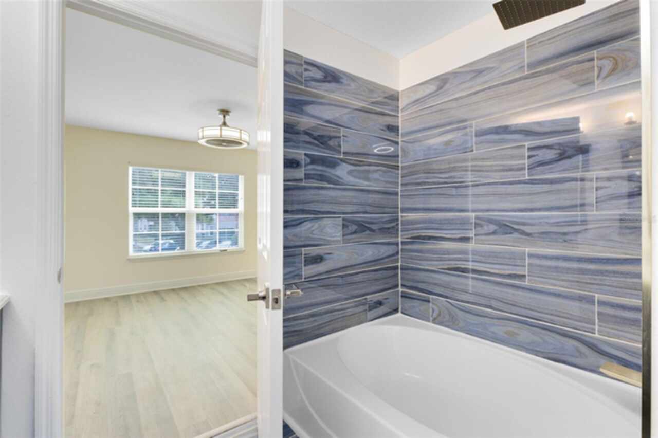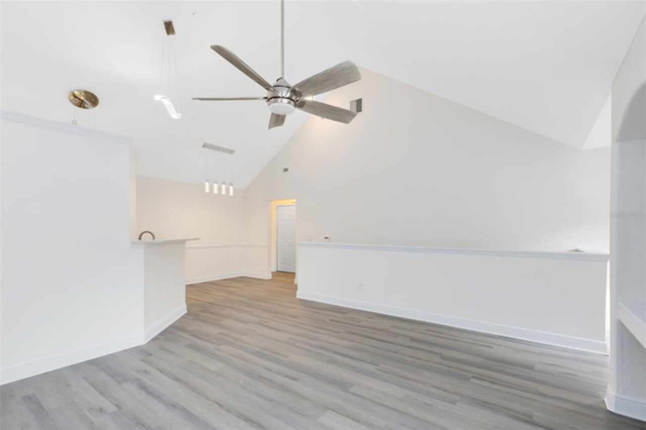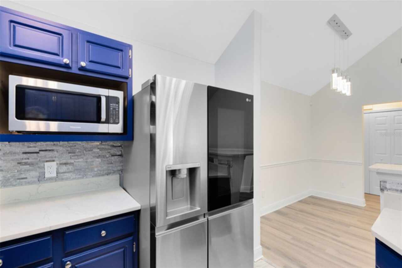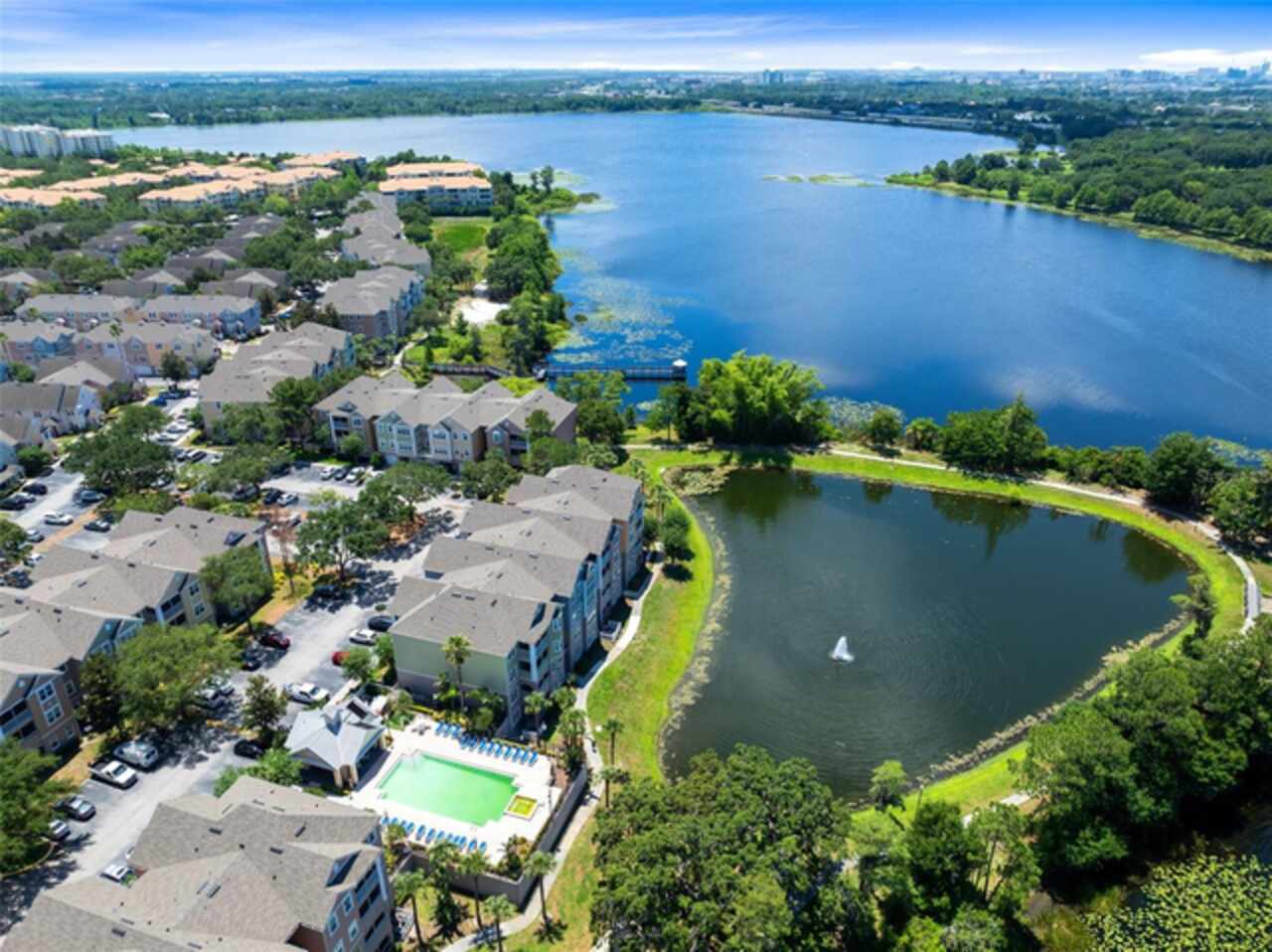 One or more photo(s) has been virtually staged. Major price reduction for a limited time! SELLER FINANCING options available! Welcome to this beautifully renovated 3 bedroom condo nestled within the sought-after Hamptons community. This second-floor walkup offers a private and serene living experience with elegant vaulted ceilings and no upstairs neighbors. The condo features all-new luxury vinyl plank and tile flooring and elegantly tall baseboards, creating a seamless blend of modern style and durability throughout the space. The kitchen boasts sleek quartz countertops, stainless steel LG appliances, cabinetry with a bold contemporary look, and a breakfast bar that opens to the spacious living area, perfect for both entertaining and casual dining. Natural light floods the condo through large, elevated windows, enhancing the bright and inviting atmosphere. Both bathrooms shine with their updated tile flooring, vanities, fixtures, hardware, and LED smart mirrors. A ring doorbell is included for added peace of mind. Freshly painted throughout. Residents of the Hamptons community enjoy a wealth of amenities, including a 24-hour guard, two swimming pools, a fitness center with a basketball court, scenic walking trails around the lake, several gazebos, and a pier. Centrally located, this condo is close to Universal Studios and the Mall at Millenia, providing easy access to premier entertainment, shopping, and dining options. This beautifully modernized condo invites you to experience the luxurious Hamptons lifestyle. Don't miss the opportunity to make this exceptional condominium home yours!