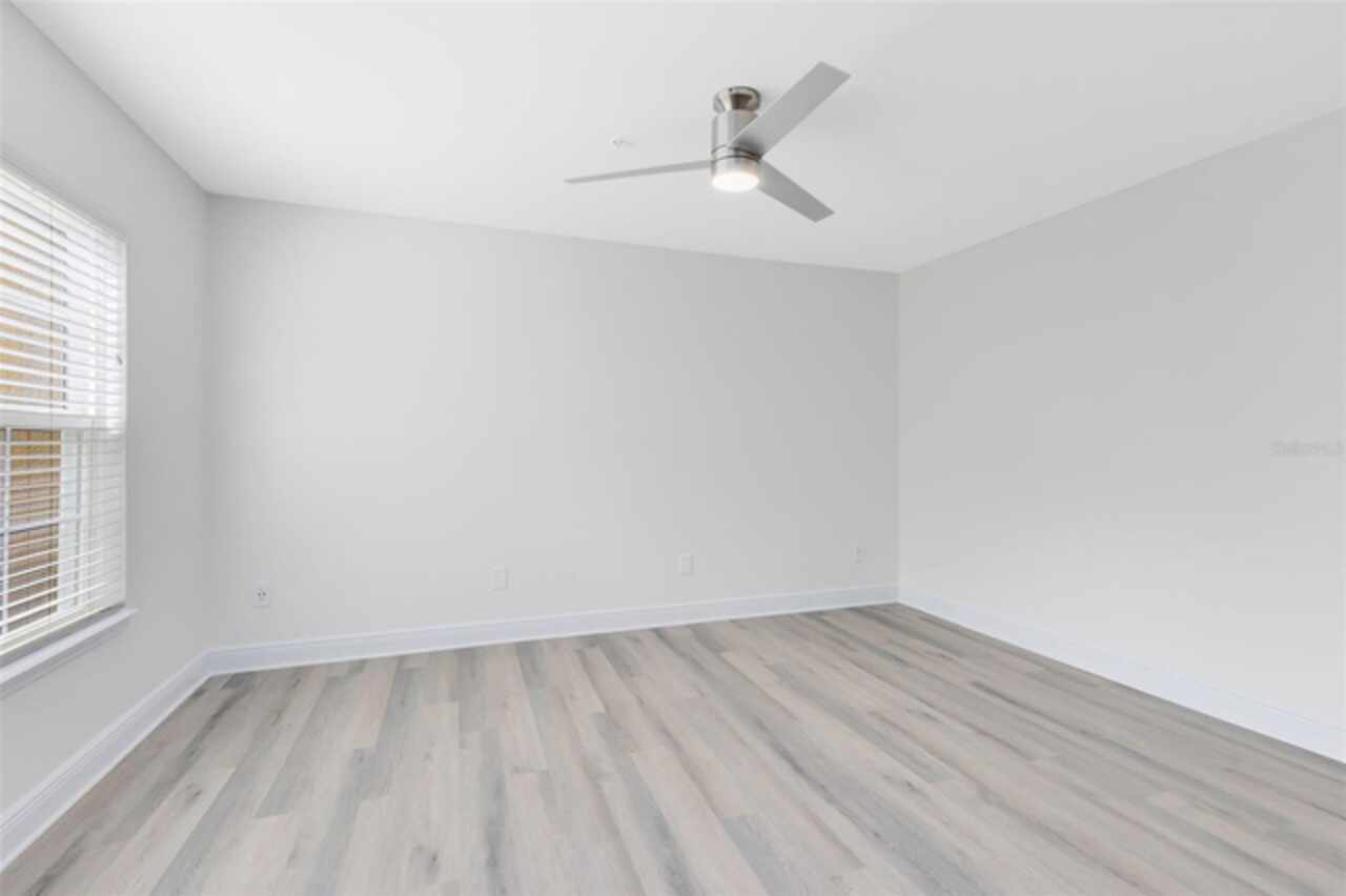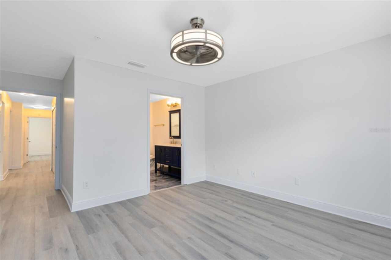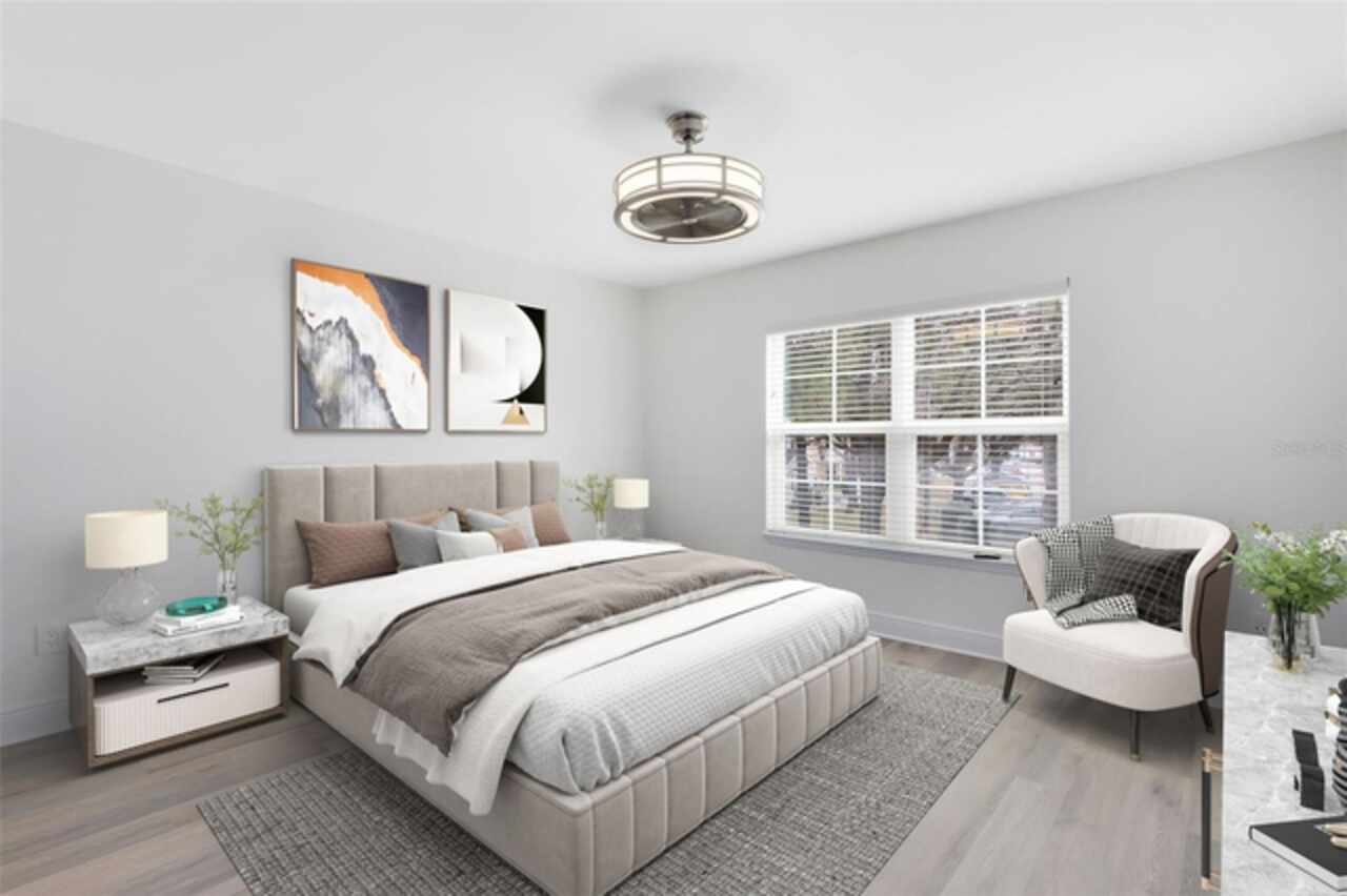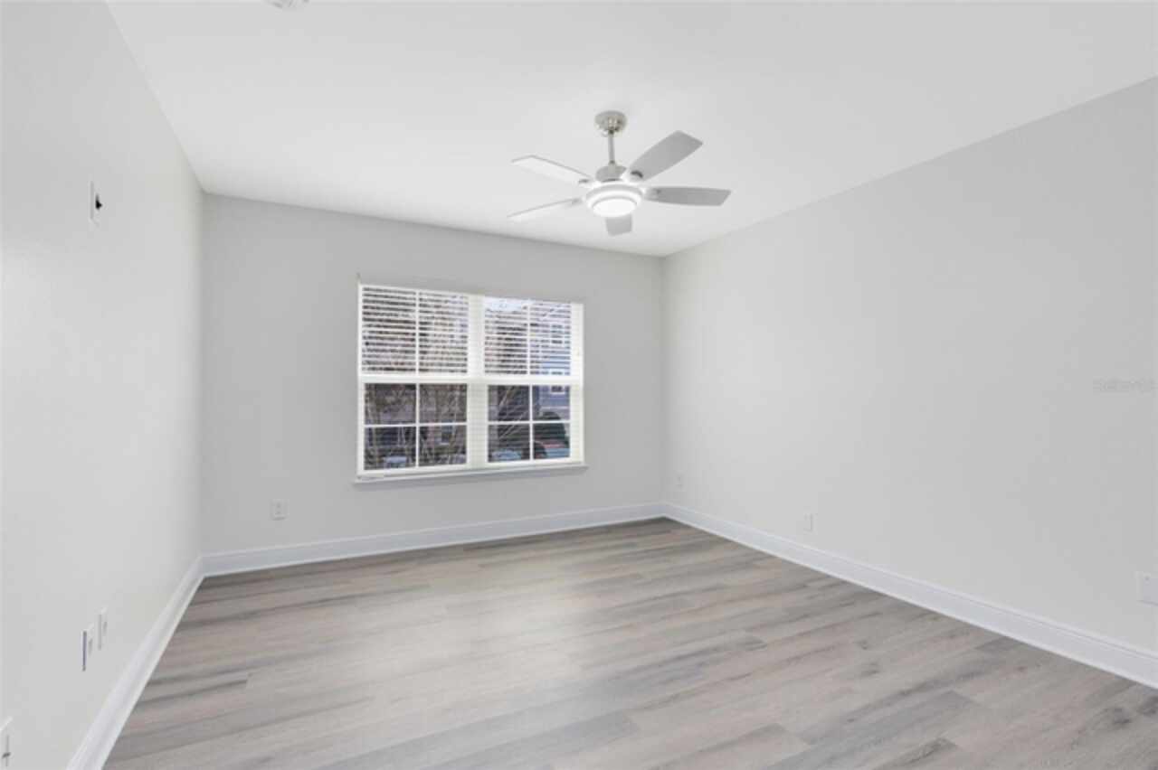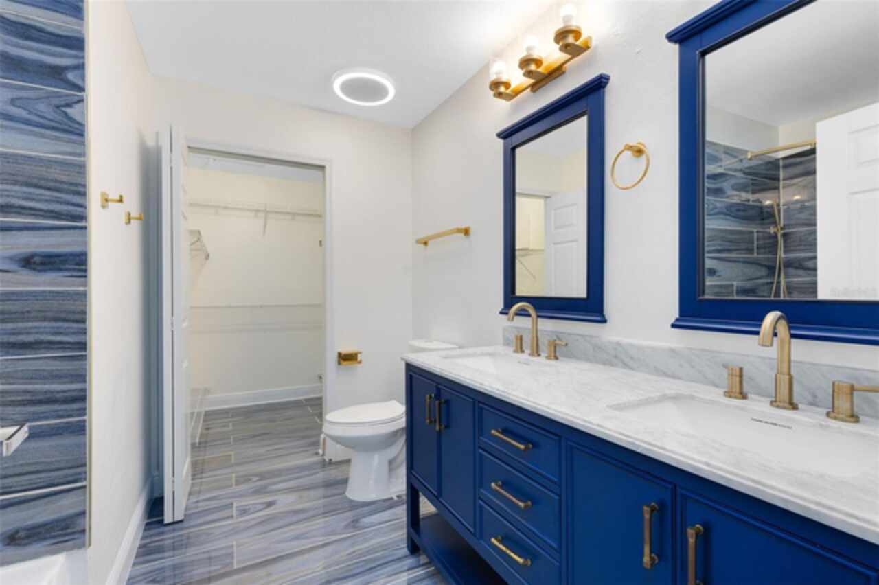 One or more photo(s) has been virtually staged. Major price reduction for a limited time! SELLER FINANCING options available! Welcome to this beautifully renovated 3 bedroom condo nestled within the sought-after Hamptons community. This second-floor walkup offers a private and serene living experience with elegant vaulted ceilings and no upstairs neighbors. The condo features all-new luxury vinyl plank and tile flooring and elegantly tall baseboards, creating a seamless blend of modern style and durability throughout the space. The kitchen boasts sleek quartz countertops, stainless steel LG appliances, cabinetry with a bold contemporary look, and a breakfast bar that opens to the spacious living area, perfect for both entertaining and casual dining. Natural light floods the condo through large, elevated windows, enhancing the bright and inviting atmosphere. Both bathrooms shine with their updated tile flooring, vanities, fixtures, hardware, and LED smart mirrors. A ring doorbell is included for added peace of mind. Freshly painted throughout. Residents of the Hamptons community enjoy a wealth of amenities, including a 24-hour guard, two swimming pools, a fitness center with a basketball court, scenic walking trails around the lake, several gazebos, and a pier. Centrally located, this condo is close to Universal Studios and the Mall at Millenia, providing easy access to premier entertainment, shopping, and dining options. This beautifully modernized condo invites you to experience the luxurious Hamptons lifestyle. Don't miss the opportunity to make this exceptional condominium home yours!