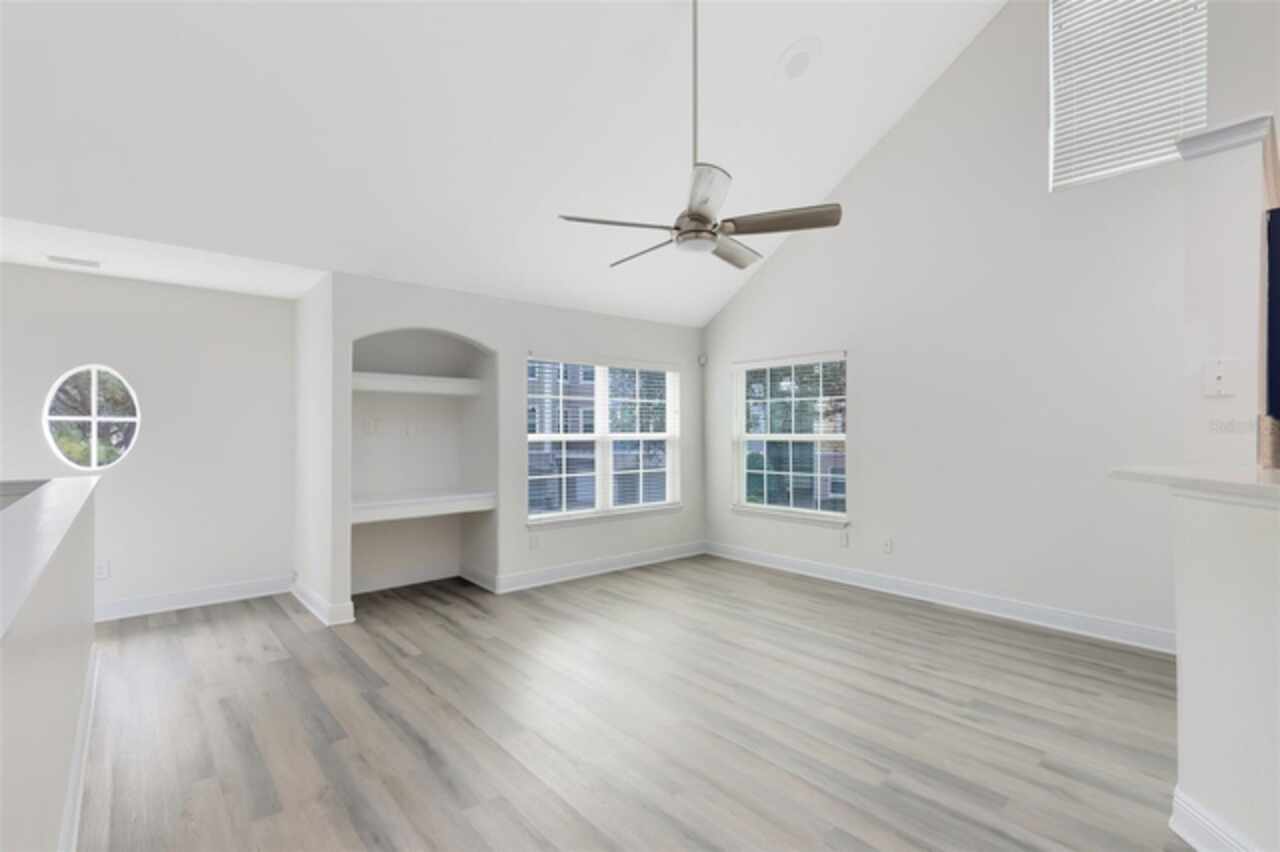Built-in Features, Ceiling Fans(s), Eat-in Kitchen, High Ceilings, Living Room/Dining Room Combo, Open Floorplan, Solid Surface Counters, Split Bedroom, Vaulted Ceiling(s)