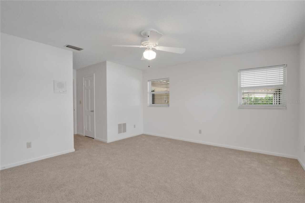 Ceiling Fans(s), Crown Molding, Eat-in Kitchen, Living Room/Dining Room Combo, Open Floorplan, Primary Bedroom Main Floor, Solid Surface Counters, Solid Wood Cabinets, Thermostat, Walk-In Closet(s)