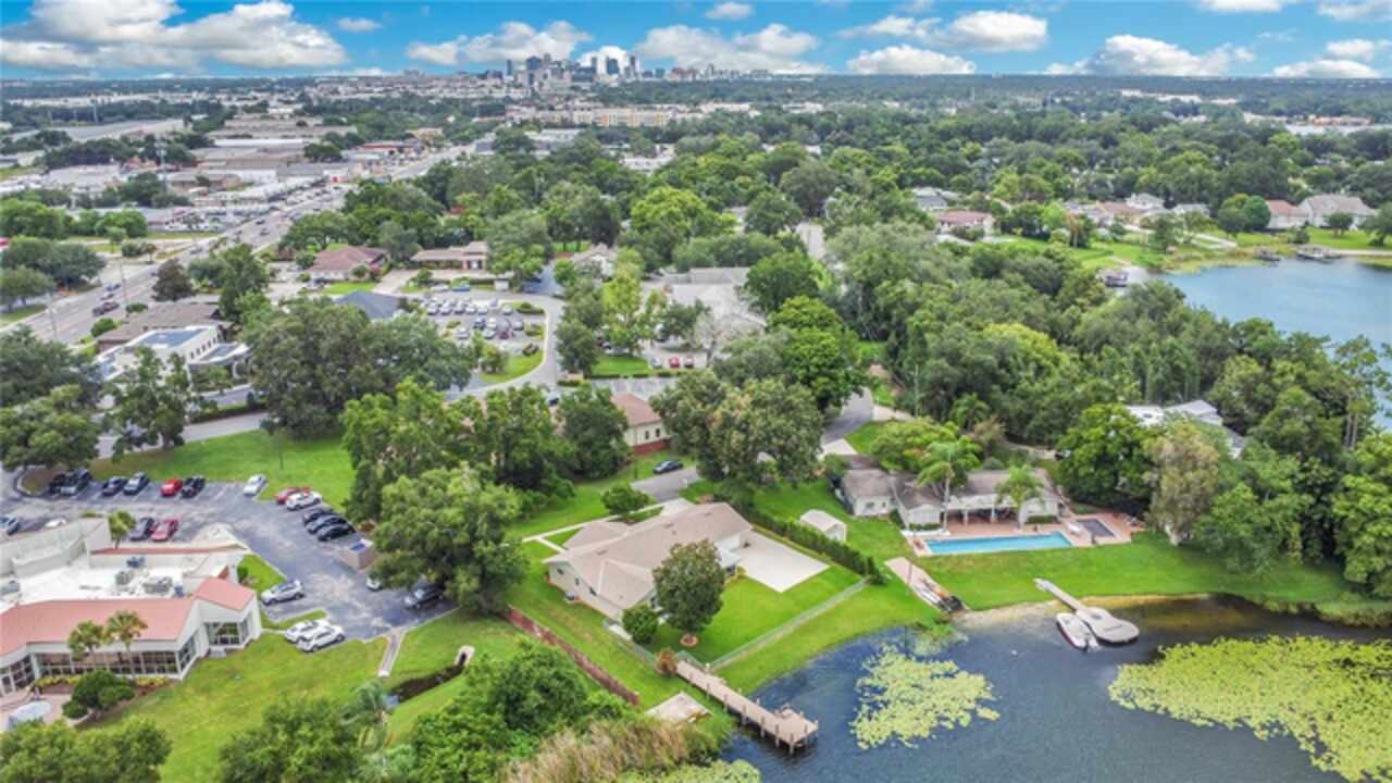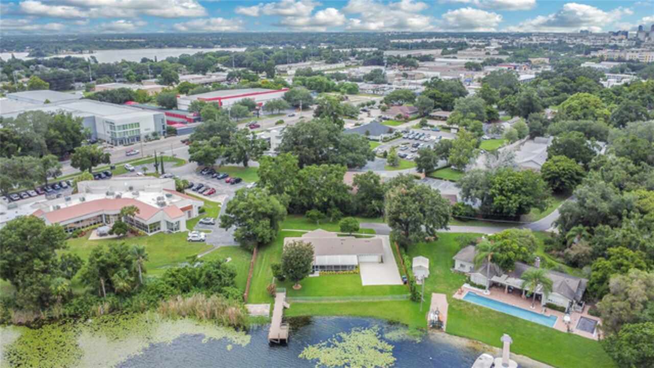 Tucked away at the end of a quiet street, along the quiet shoreline of private Lake Jennie Jewel, this 3-bedroom, 2-bath lakefront home offers the rare combination of peaceful waterfront living just minutes from the heart of downtown Orlando. Set on over a quarter acre, with 100 ft. of direct water frontage, the property feels like a quiet retreat the moment you arrive, with sweeping water views, mature trees, and a private dock just steps from your back door. Inside, the home seamlessly blends classic mid-century architecture with solid bones and a layout that offers generous living spaces, taking full advantage of the lakefront setting. A large, screened-in patio spans the back of the home, providing a breezy extension of the indoor living area and the perfect vantage point for sunrise coffee or evenings by the water. The kitchen and living room sit at the center of the home, with separate dining and family rooms offering flexibility for gatherings, quiet moments, or work-from-home needs. The bedrooms are split for privacy, with the primary suite tucked at the back, offering dual walk-in closets (including one cedar-lined), water views, and direct access to the screened-in porch. The oversized driveway and rear-entry garage provide plenty of parking for guests or extra vehicles, and there’s ample yard space for gardening, entertaining, or simply enjoying the lake breeze under the shade of a mature magnolia tree. Noteworthy updates include: new roof (2018), new electrical panel (2023), and septic system (2022), giving you peace of mind from day one. Zoned for the highly rated Blankner K-8 and Boone High School (Go Braves!). Located just south of downtown Orlando, with quick access to SoDo, the Hourglass District, and Orlando Health, this home offers private lakefront living without sacrificing convenience. Paddle across to The Waterfront for dinner, enjoy easy proximity to Vanbarry’s and The Porch, or be downtown in minutes. Lake Jennie Jewel is one of Orlando’s best-kept secrets—and opportunities like this don’t come around often.