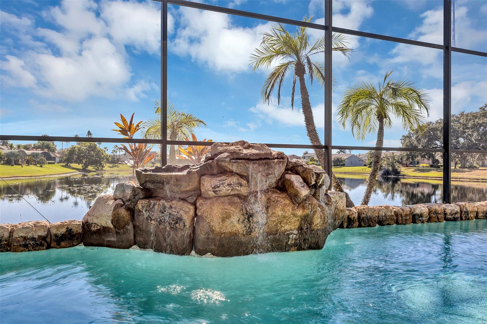 One or more photo(s) has been virtually staged. WATERFRONT BEAUTY! GORGEOUS VIEWS AND SETTINGS FROM MULTIPLE ROOMS! Privacy, quality, the best of Florida living! 1/3 acre of Gated elegance! Hunters Isle is the preferred destination in Hunters Creek! Spacious 1-story, over 3, 300 sq. ft of living! Split plan 4bed, 3.5 bath plus a spacious office, ideal for remote employment! Plantation shutters in Office and Dining Rooms! Waterview from multiple rooms in home! Sparkling Saltwater pool, with decorative and functioning fountain, ideal centerpiece for aesthetics and relaxation. Huge lanai that is ideal for family gatherings and festive entertainment occasions! Additionally, ALL FOUR bedrooms have walk-in closets. NEW ROOF(2024), NEW PLUMBING TOTALLY REPIPED(2025). HOME both INTERIOR AND EXTERIOR totally repainted October, 2025 plus entire garage and flooring was repainted! Primary bath updated and renovated. All NEW light fixtures throughout property! New door hardware and miscellaneous lights and switch plates all brand NEW! NEW pool light, renovated kitchen cabinets and more! Take advantage of the HUNTERS CREEK lifestyle! Award winning community as recognized by CNN Money Magazine! Awesome park system throughout community. Sports and recreation galore include multiple playgrounds, tot lots, basketball courts, baseball fields, pickleball courts, racquetball, tennis courts, nature trails and multiple holiday activities! Sought after schools, Elementary and Middle Schools are physically located in Hunters Creek! Put this property on your MUST SEE LIST! Click on Virtual Tour line for 360 tour and floor plan!