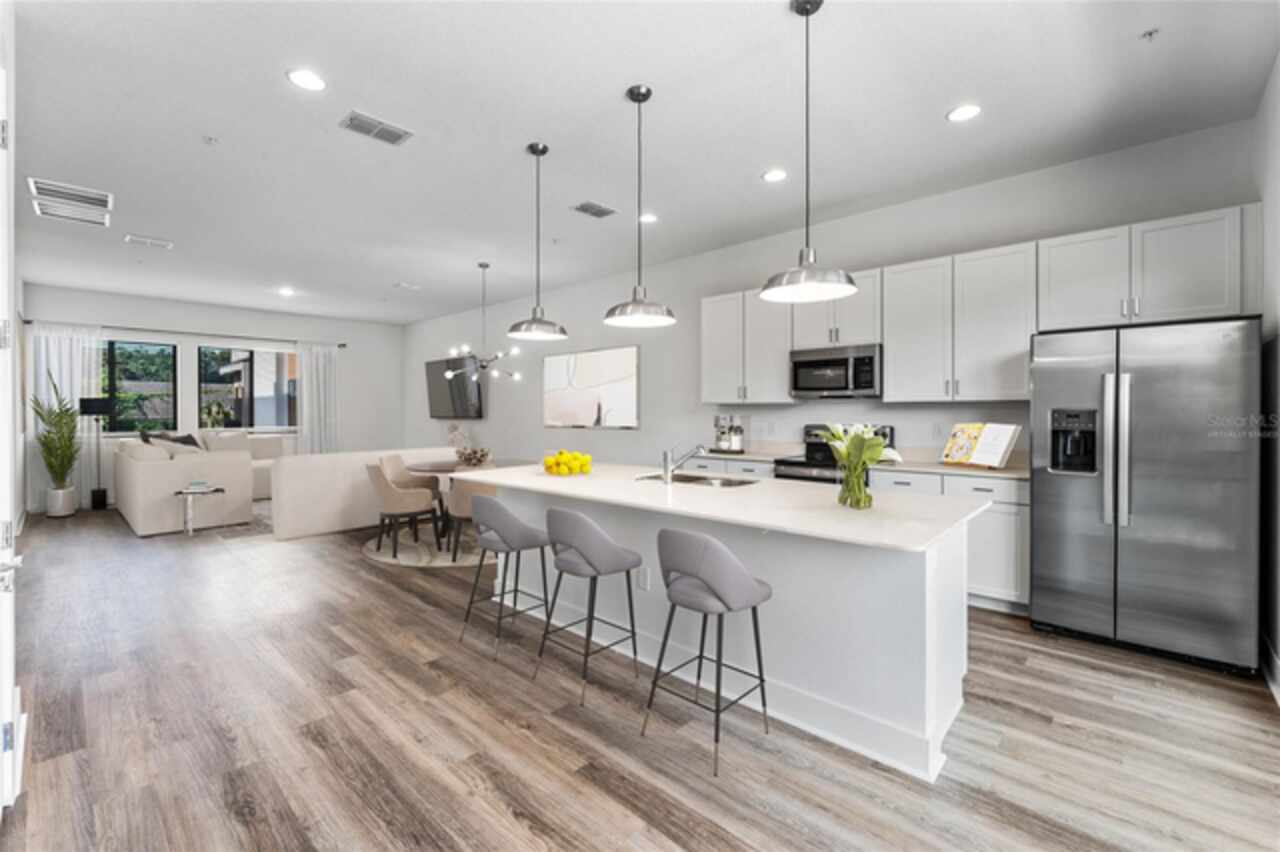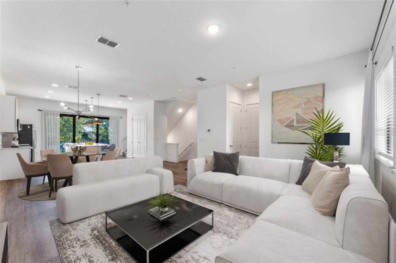 One or more photo(s) has been virtually staged. The newly built SoDo House is a contemporary 23-unit townhouse development in the heart of Orlando. As you enter this unit, you'll find a versatile bedroom with a full bathroom, perfect for use as an office or guest suite. The first floor also includes a private patio accessed through sliding doors and an entrance to the attached 2-car garage. The second floor is designed for modern living with an open-concept layout that combines the living room, kitchen, dining area, and a half bath. High 10-foot ceilings and oversized windows flood the space with natural light and give access to a private balcony. The third floor is your private space, housing the primary suite, two additional bedrooms, a full bathroom, and a laundry nook. The HOA ensures maintenance-free living as exterior and grounds maintenance, along with pest control are included in the HOA fee. Located in a vibrant area, SoDo House is just steps away from the SoDo Shopping Center, featuring Super Target, Gators Dockside, The Smoothie Room, and TJ Maxx, among other well-known businesses. You’ll also enjoy proximity to Walmart, Orlando Health Hospital, and major highways such as I-4 and Highway 408, Downtown Orlando, the Kia Center, Exploria Stadium, Lake Eola, and the Dr. Phillips Center for the Performing Arts. A variety of restaurants and fine dining options are just minutes away. Secure your spot in this exclusive 23-unit development and embrace the best of urban living. Builder upgrade packages are available! Schedule your private showing today! Disclosure: Photos shown are of the model unit and are for illustrative purposes only. Actual unit features, finishes, and layout may vary.
