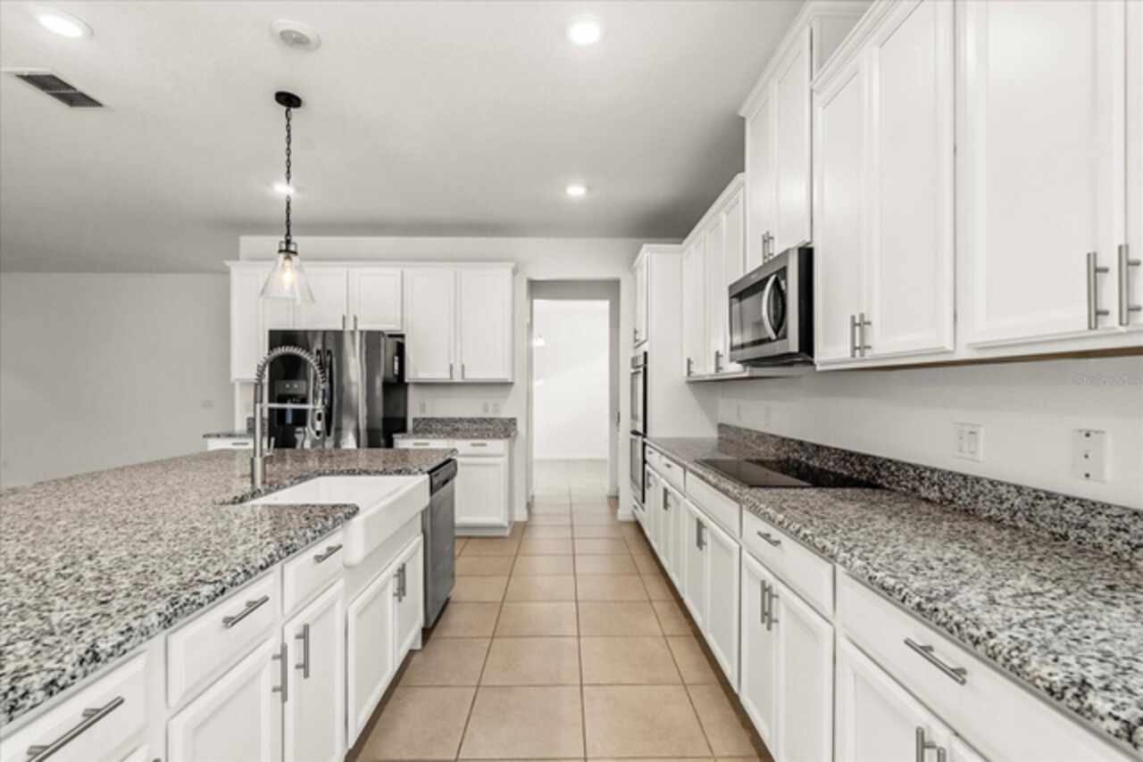 LOCATION, LOCATION, LOCATION. Welcome to this gorgeous open concept 4-bedroom, 3-bathroom home. Spacious floor plan to accommodate many different family styles with a bonus flex room that could be used as an office space, play area, formal dining room and more. Freshly painted, easy to use sliding glass doors that takes you to the large screen room paver back patio, which is great for friends to play or relax outside without the concerns of bugs or weather. Community pool and playground available. Very conveniently, only 10 minutes far from Orlando international airport, walking distance to elementary school and then 30 minutes from all of the theme parks. Schedule your showing today!
